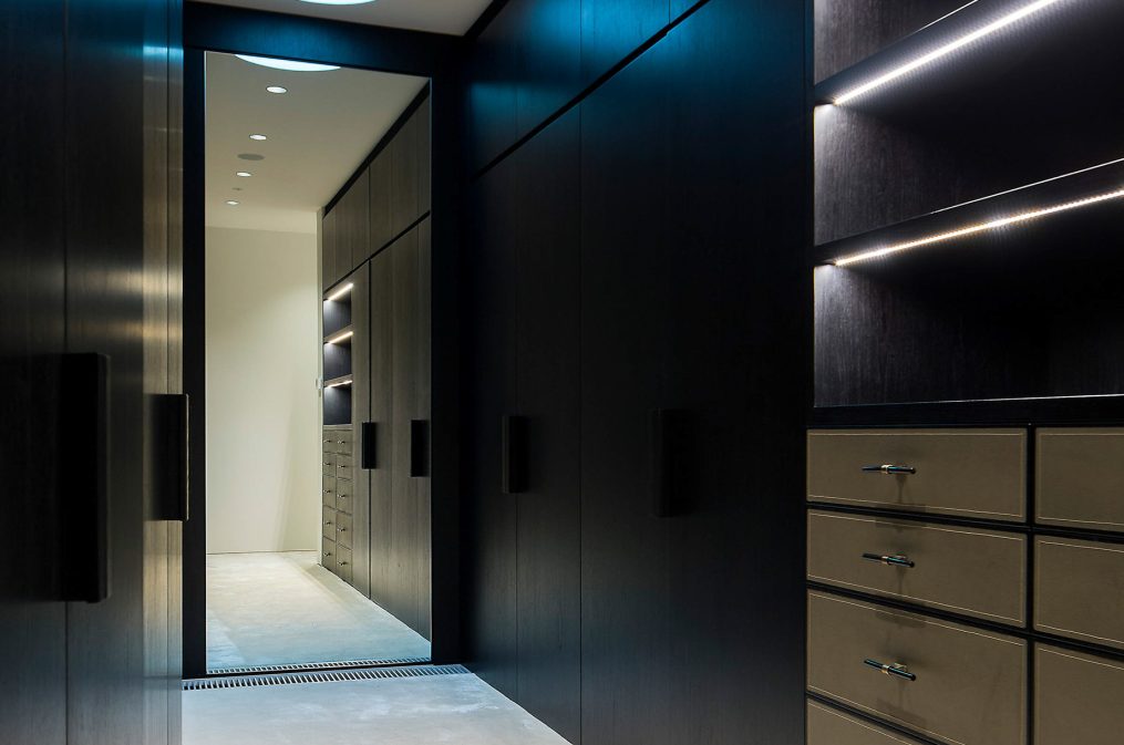 Inside, the home is equally captivating. A double-height entry corridor, accessed via a winding path through concrete walls and informal gardens, offers a dramatic prelude to the light-filled interior beyond. The north-facing living spaces embrace floor-to-ceiling glazing, framing verdant garden views, including a 150-year-old plane tree at the heart of the design. Key features include a sunken lounge with a built-in fireplace, a circular fernery, and Dinesen timber floors, all meticulously crafted to balance warmth with modern sophistication. The upper-level hosts four ensuite bedrooms, a gym, and private rooftop terraces, while the lower levels house an underground gallery, wine cellar, cigar room, and parking for six cars, all equipped with state-of-the-art smart home technology.