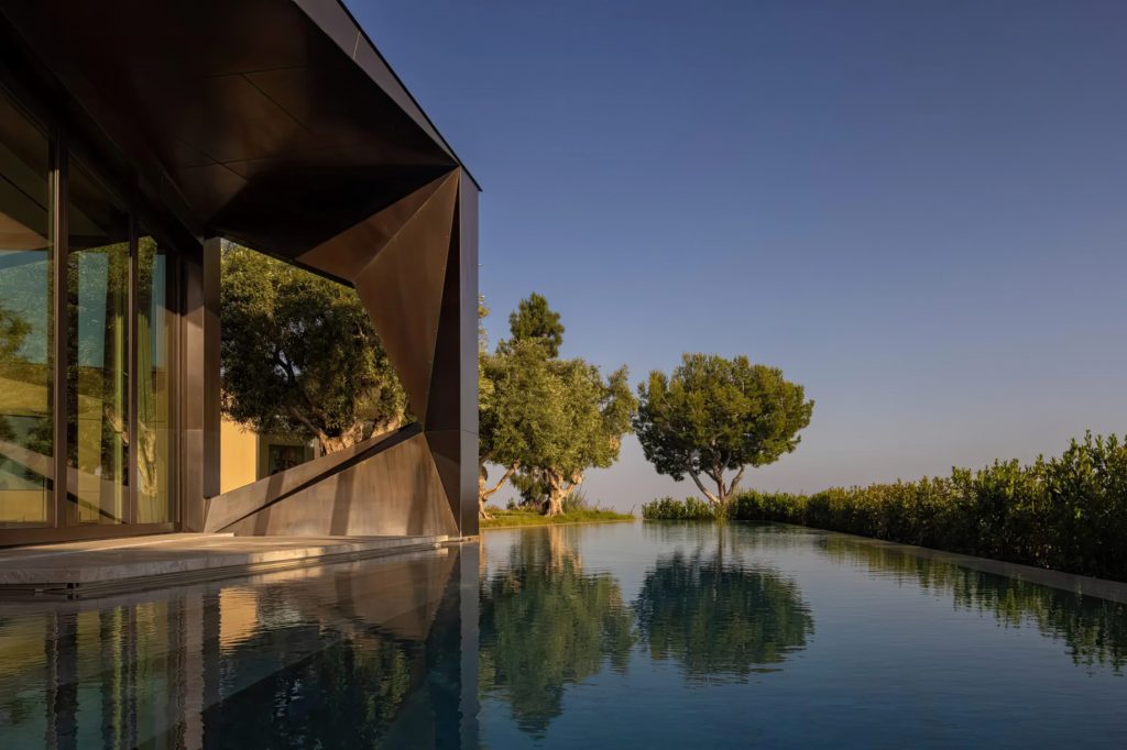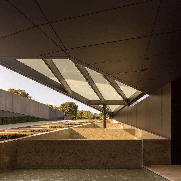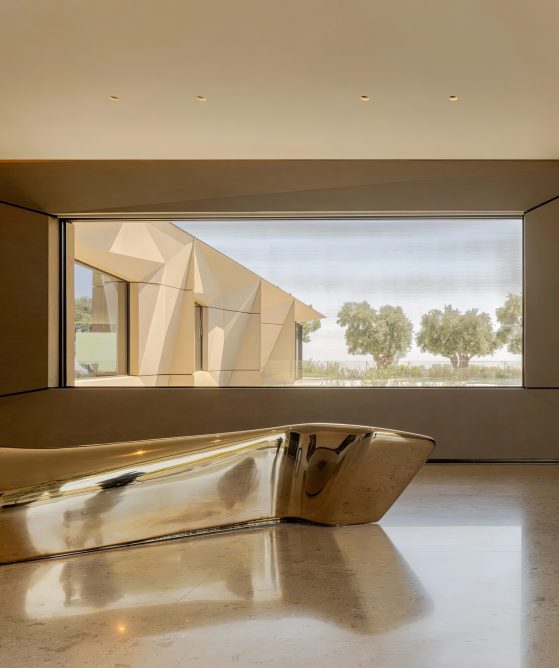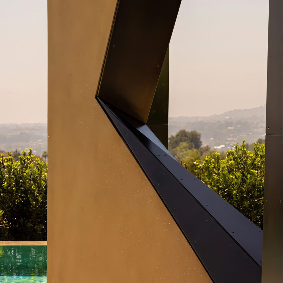 Trousdale Residence, by Donaldson+Partners, masterfully blends mid-century aesthetic with cutting-edge design, elevating the concept of stealth luxury in Beverly Hills’ iconic Trousdale Estates. The home redefines modernism through architectural precision and conceptual depth, using a bold fractal form, sculptural bronze-toned cladding, and immersive spatial flow to create a residence that functions as both private retreat and cultural platform, complete with embedded raw gemstones, panoramic views, and a subterranean level designed for cinematic and intellectual experiences, all shaped by a nearly decade-long collaboration between architect Robin Donaldson and a design-forward investor with a passion for science, art, and material exploration.