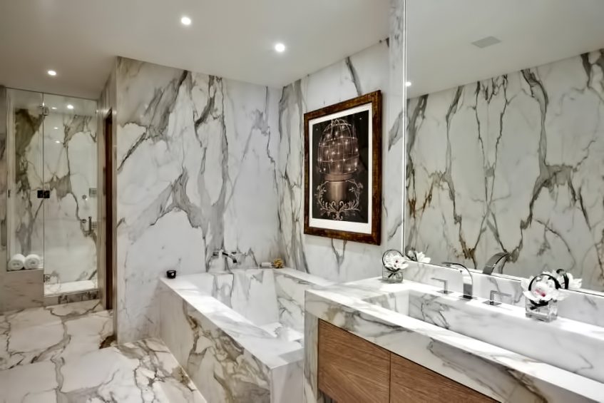 Built to last for generations, the extreme attention to quality and detail expressed in this residence is rare in this era, from hand-crafted bronze and leather banisters, Italian marble facade imported from Italy, and honed mill work panels, to the precisely refined coffered ceilings, this home exemplifies grand luxury. The buildingโs hand-carved Italian limestone faรงade unites undeniably luxurious meticulously designed interiors with breathtaking outdoor spaces. While the faรงade and portico are classic neo-Roman, ornamental Doric columns and pediments cut from solid blocks of cream-colored limestone, the interiors are incredibly modern and no less stunning. Grand and distinct, the interior features a bisazza mosaic tile-lined swimming pool and spa, wine cellar, state-of-the-art kitchen, ten-foot ceilings, and a striking amount of space for entertaining guests, all bathed in an abundance of natural light.