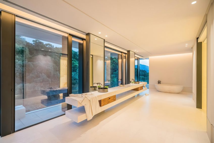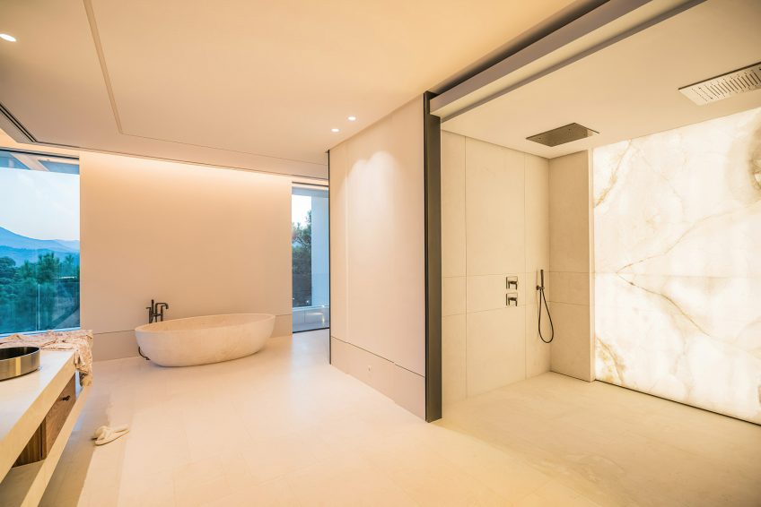 The interior of Villa Cullinan is a symphony of luxury and sophistication, boasting spacious living areas adorned with exquisite finishes and bespoke furnishings. The grand foyer welcomes guests with a soaring ceiling, leading into a series of elegantly appointed rooms. Large windows flood the spaces with natural light, highlighting the carefully curated art and decor. The gourmet kitchen is a culinary enthusiast’s dream, equipped with state-of-the-art appliances and a generous island for entertaining. The villa features multiple bedrooms and suites, each offering sumptuous comfort, lavish en-suite bathrooms, and private terraces to relish the breathtaking views.