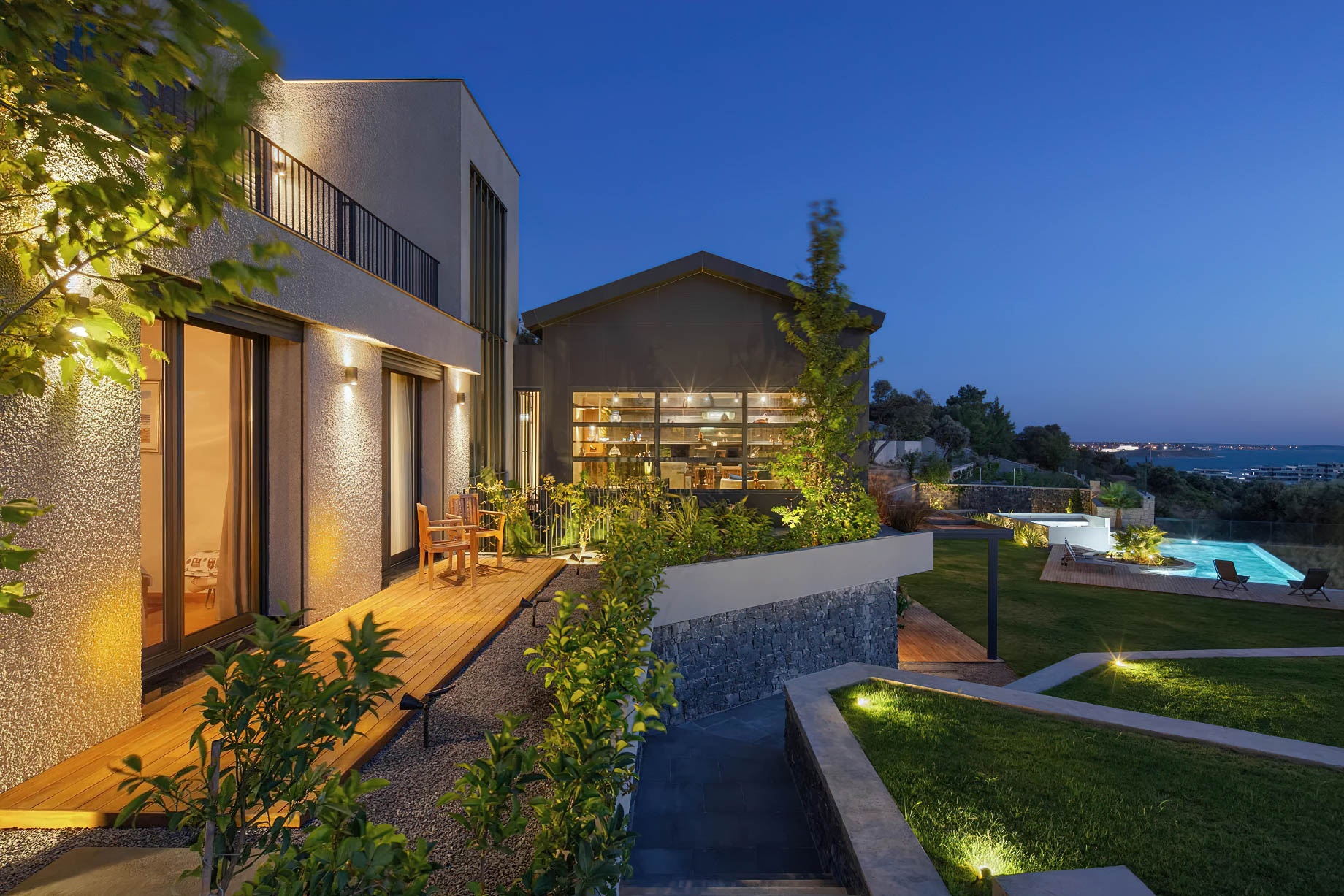 Villa Juss Modern Mediterranean Residence – Izmir, Turkey – Exterior Pool View Night The Pinnacle List Source Shuffle Attached to: Villa Juss Modern Mediterranean Residence – Izmir, Türkiye 🇹🇷