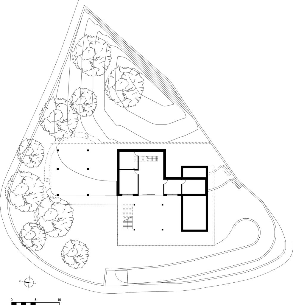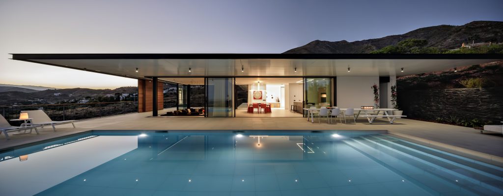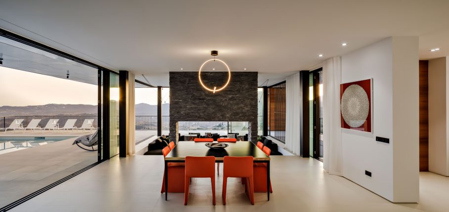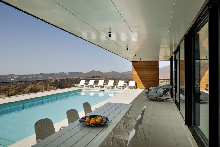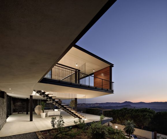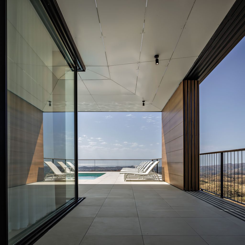 Villa K is situated high in the hills above Mijas, Spain. The house itself is organised around a raised viewing platform which is slightly pushed into the top of a hill. The design of the house is a response to both the plot and the amazing surrounding views. The plot is very steep, oriented to the south and to the west, with views of the sea and the Ronda mountain range. A lovely pine tree wood occupies a part of the site.