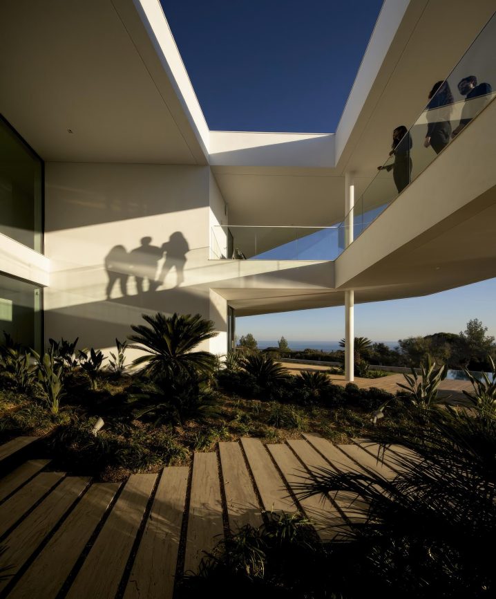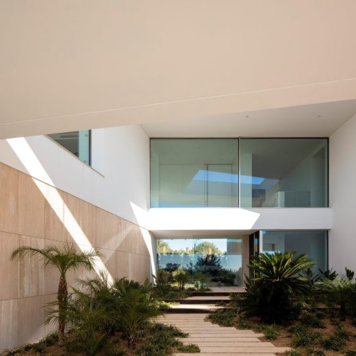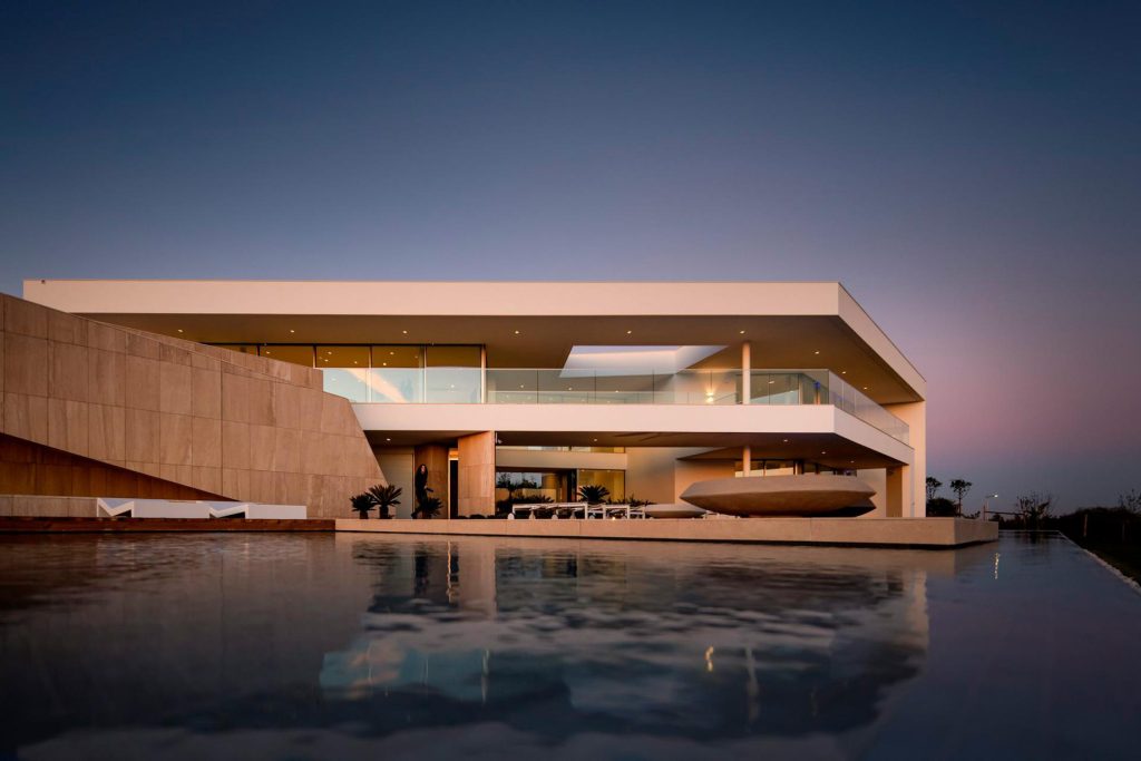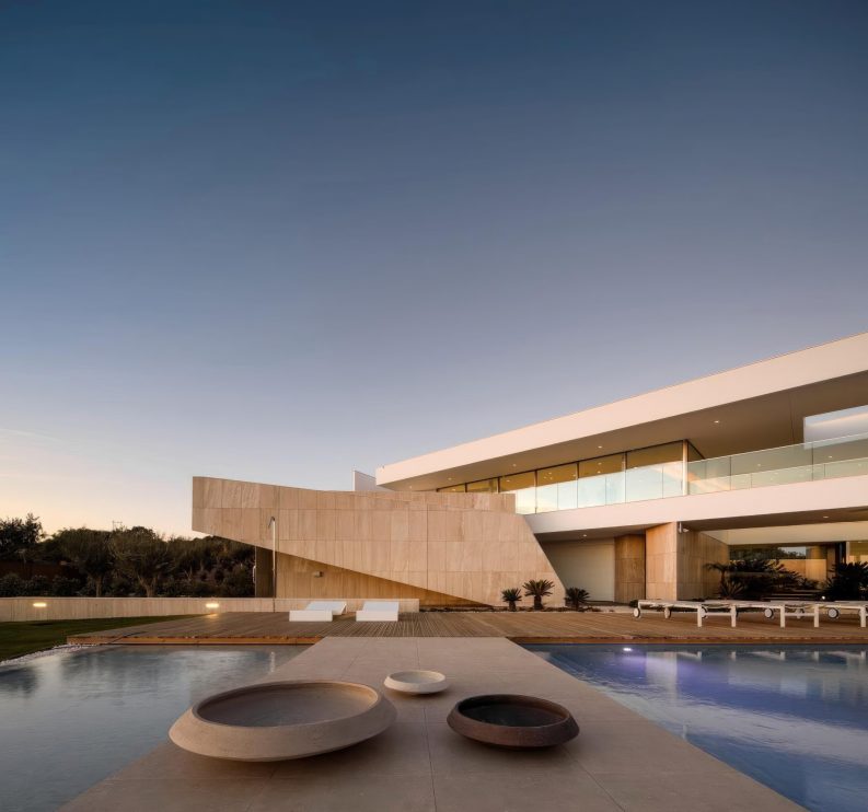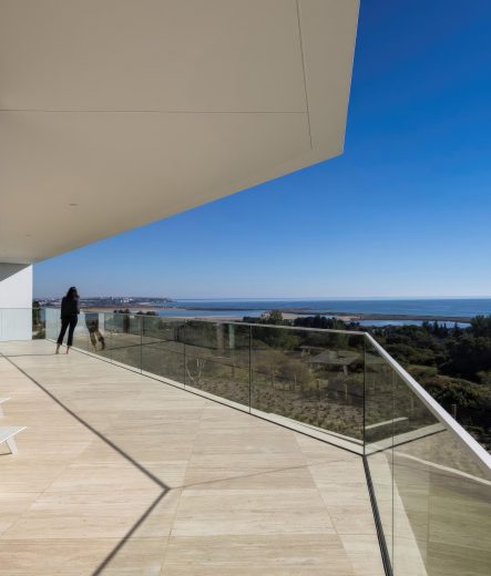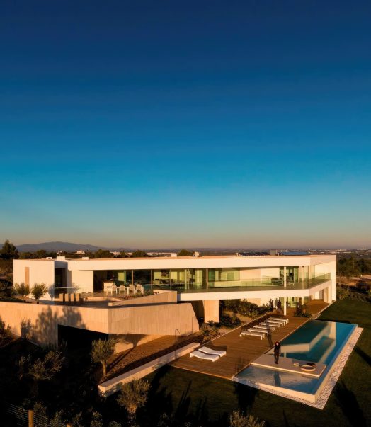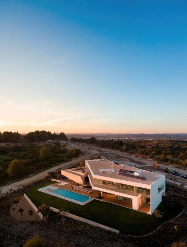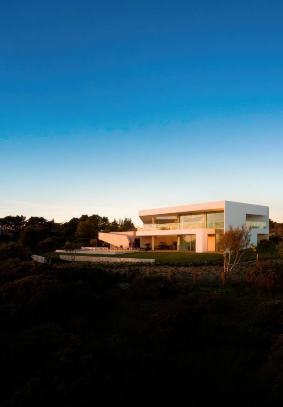 Villa Perno, by Mario Martins Atelier, commands panoramic views across the verdant landscape, the sweeping bay of Lagos, and the shifting tides of the Alvor estuary. Designed in response to both the topography and the client’s desire for a home integrated with its environment, the architecture is shaped by a sense of flow, scale, and connection to place. The structure aligns with the east and south, capturing light and horizon while embracing the organic geometry of the land it occupies.