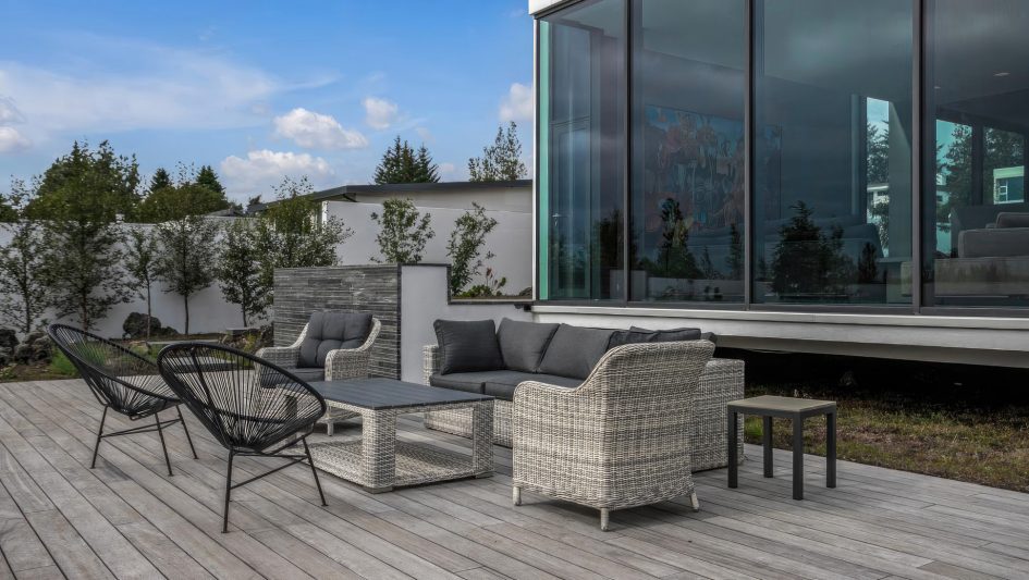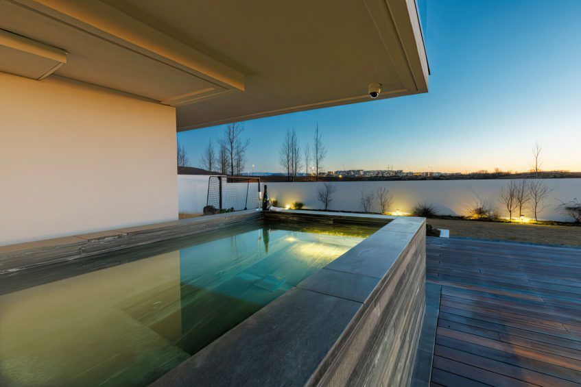 The White Villa’s exterior is as impressive as its interior, with a garden that features concrete walls ensuring privacy, a maintenance-free hardwood deck, and a concrete hot tub. The landscape harmonizes with the surrounding natural beauty, incorporating large lava rocks and native vegetation. The property is situated in Garðabær, a prestigious area known for its proximity to the Heiðmörk nature reserve and its abundance of recreational options, including three nearby golf courses. With advanced security features and ample space for both intimate and grand gatherings, this residence offers an unparalleled lifestyle in one of Iceland’s most coveted locations.