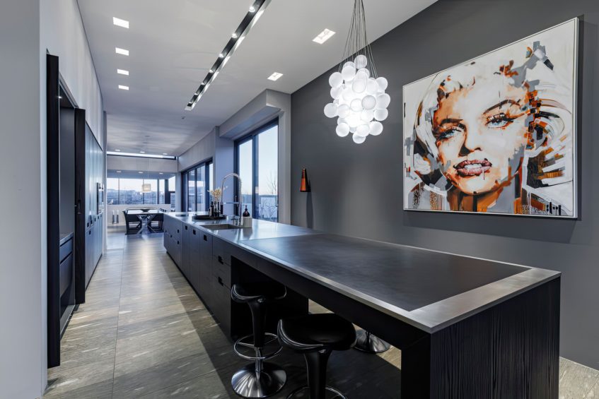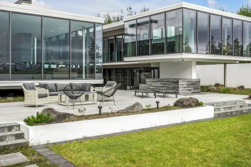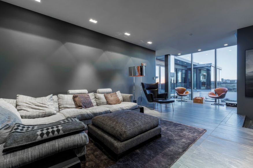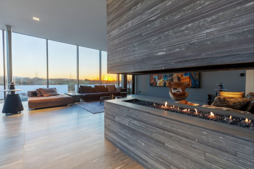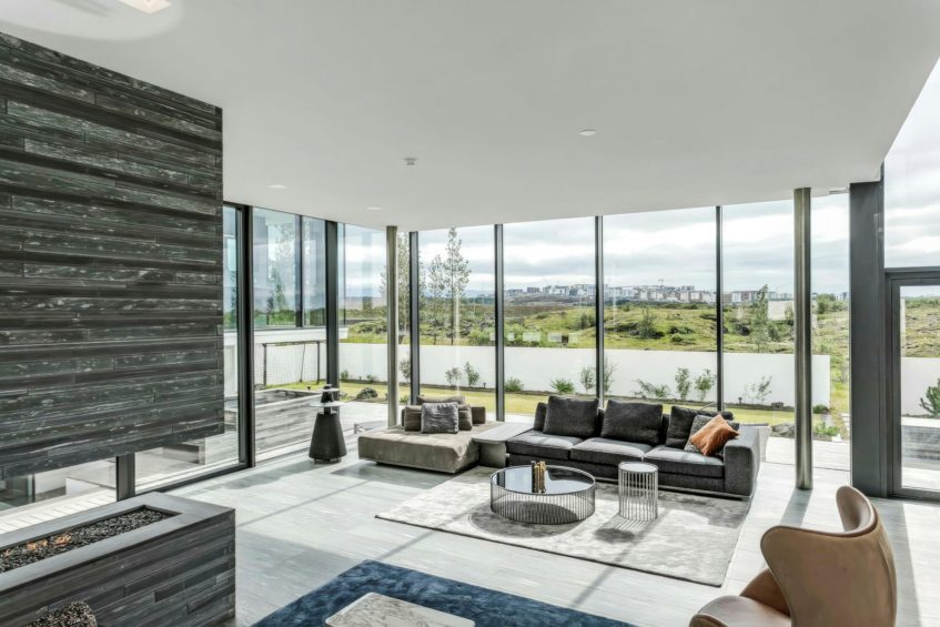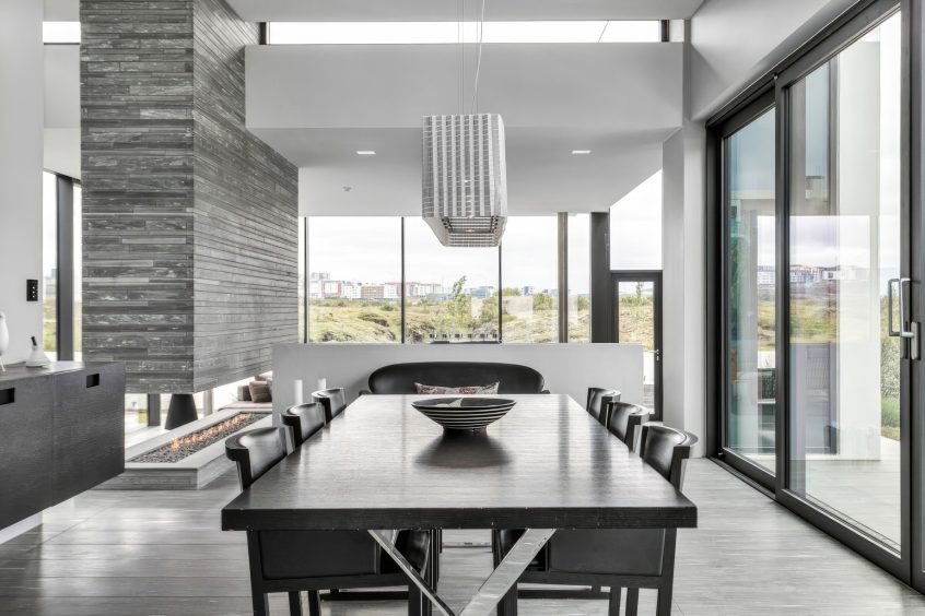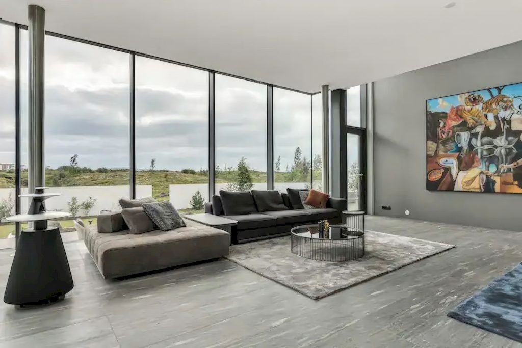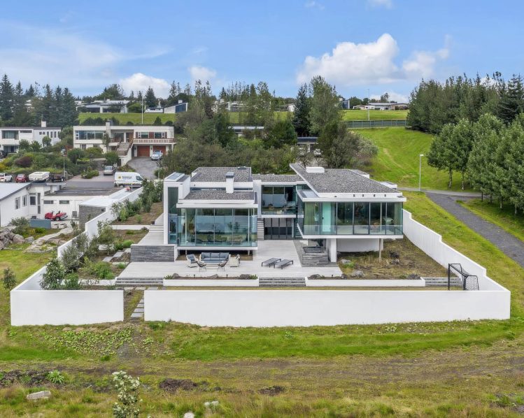 This extraordinary villa, positioned next to an ancient 8,000-year-old lava field and only 10 minutes from Reykjavik’s city center, is a paragon of contemporary Icelandic design. Originally constructed in 2008 and completed in 2016, this 932-square-meter residence was meticulously crafted by Architect Studio Gassa. The interiors showcase custom-made furniture from acclaimed Danish manufacturer Boform, featuring exquisite materials like black ash and unique, specially imported Swiss tiles. The home’s seamless connection between modern elegance and natural Icelandic beauty is exemplified by the expansive terraces, offering panoramic views of the historical lava fields.
