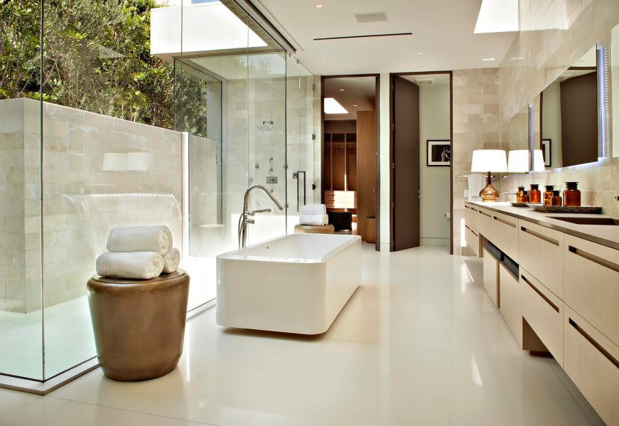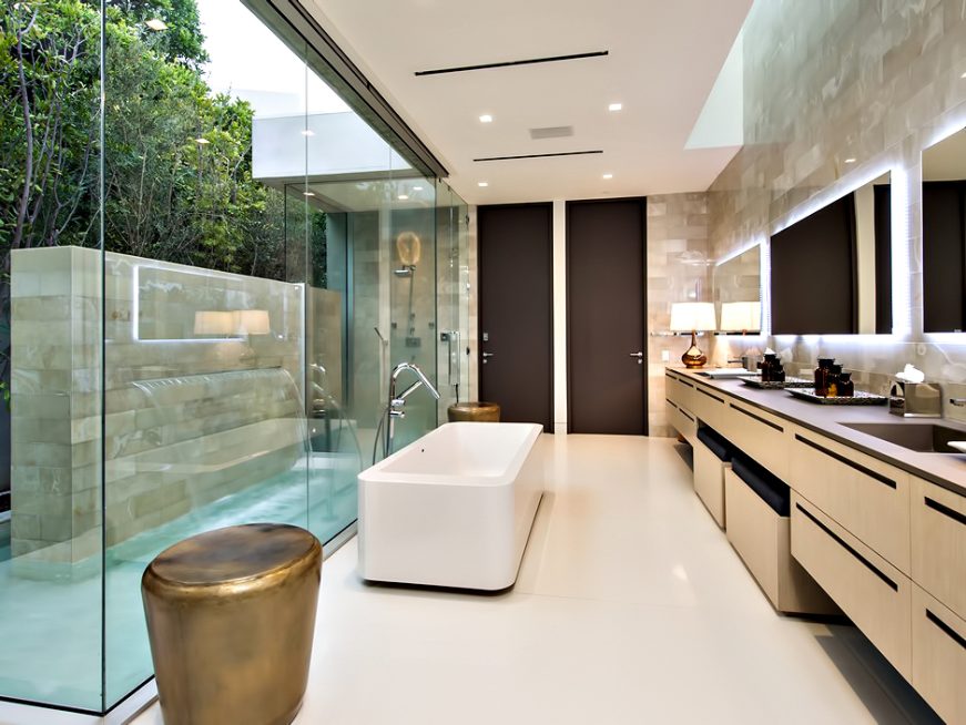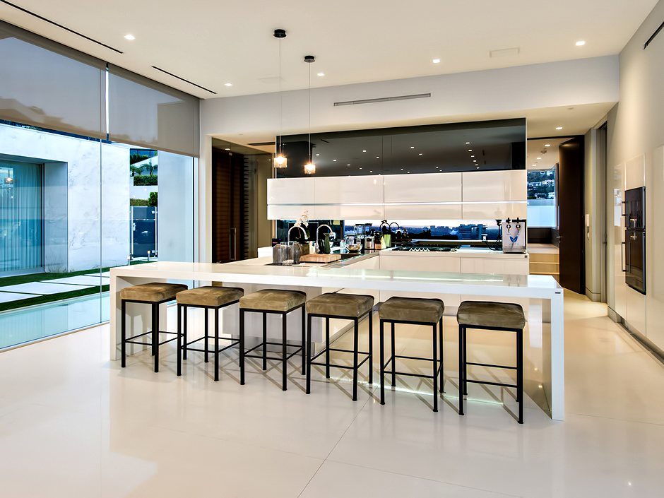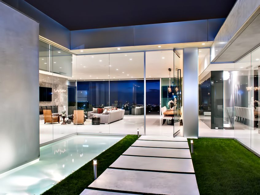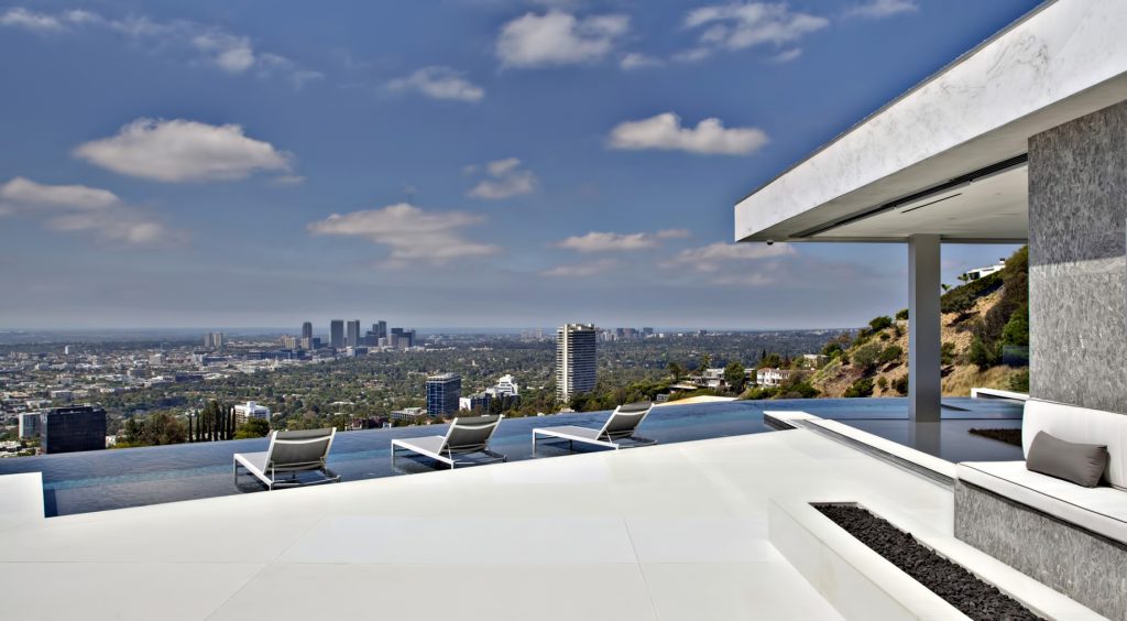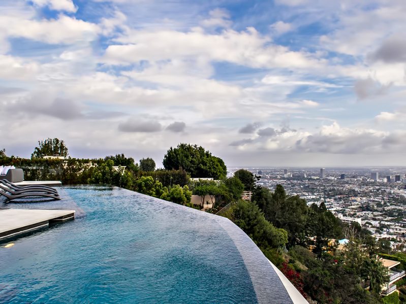 Magnificently architected, this 5-bedroom, 9-bathroom modern masterpiece is the quintessential Los Angeles trophy home. Walls of glass slide into pockets to frame unobstructed jaw-dropping views across the entire city below. Walls of glass slide into pockets to frame unobstructed views of the entire city. As you look over the knife-edge pool and spa, you will feel like you are floating in the most breathtaking of master suites. Each bedroom and bathroom boast unique, top-of-the-line finishes with no expense spared. Downstairs you will enjoy the industry standard theater, a full bar area and access to an underground parking garage for 6 vehicles.