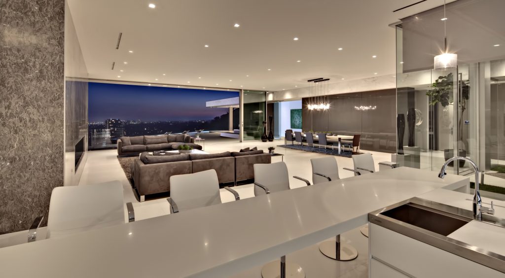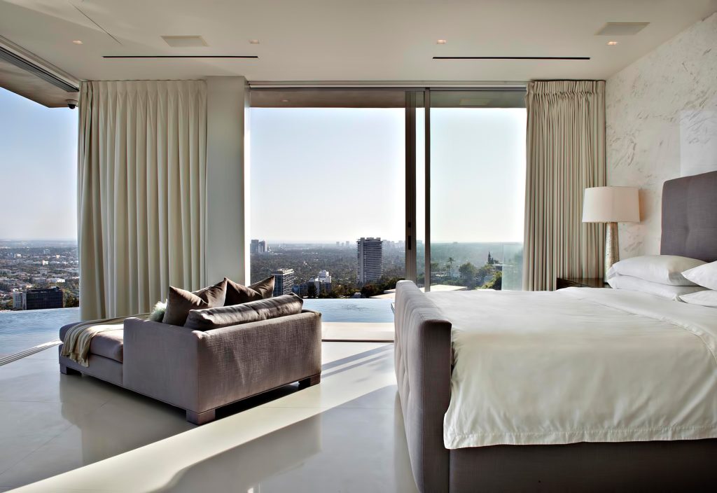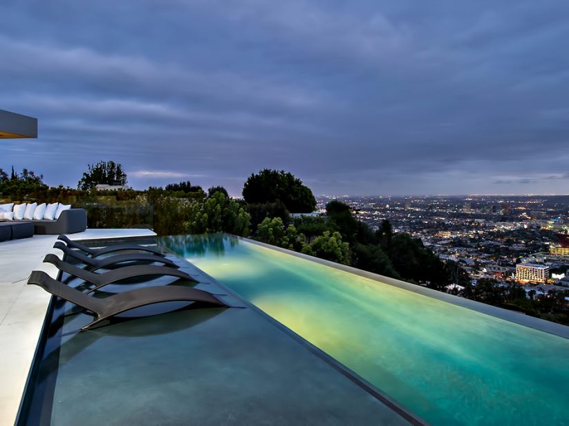Truly one of the most special homes every imagined on the Bird Streets, this extraordinary luxury residence revels in one of Los Angeles’ most exclusive and sought-after enclaves, known for its stunning “jetliner” views and extreme privacy. This contemporary trophy home offers bold modern design with seamless indoor and outdoor living spaces. Just a five-minute drive from Sunset Plaza and Beverly Hills, this architectural refuge boasts walls of glass opening to an infinity pool and lavish outdoor areas making it the quintessential Hollywood-entertaining house.