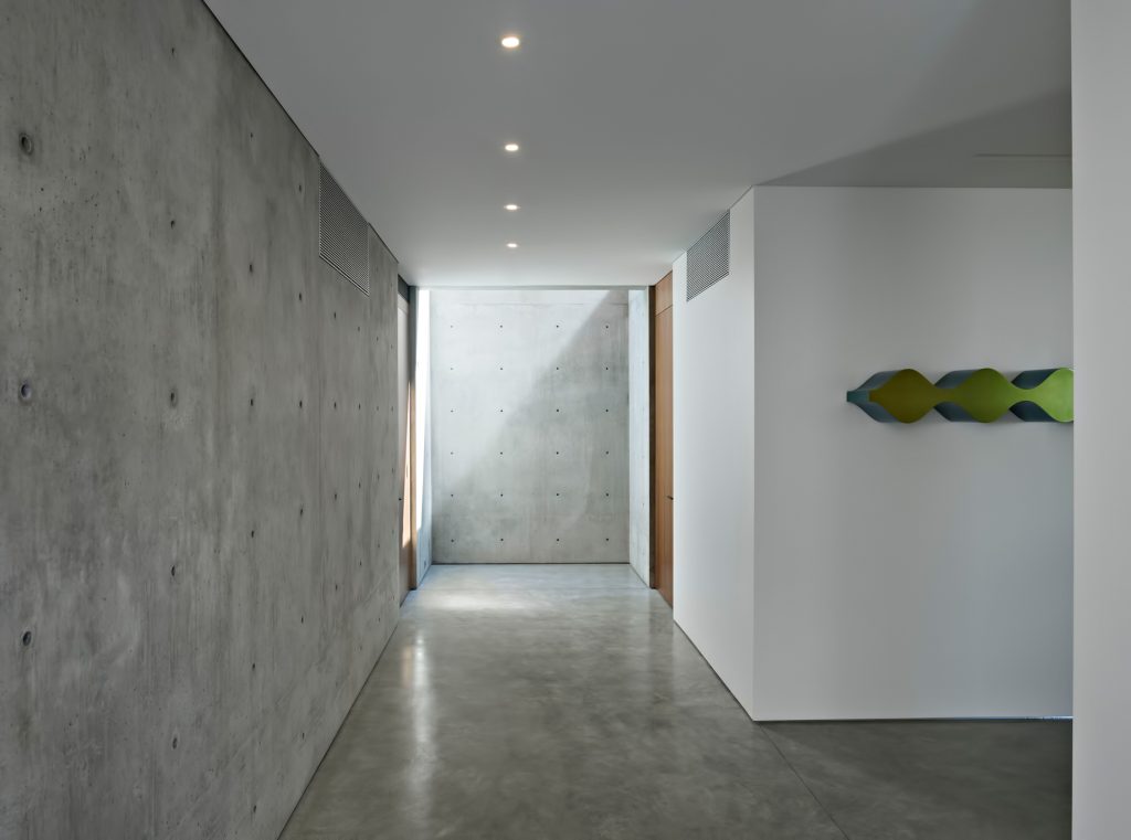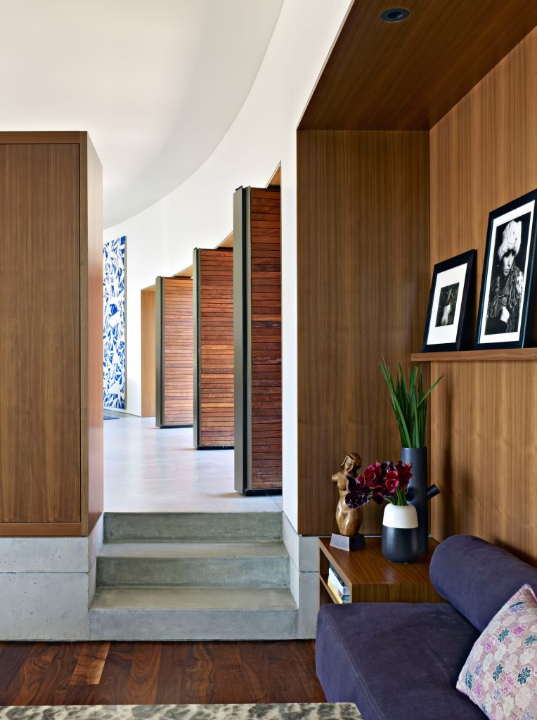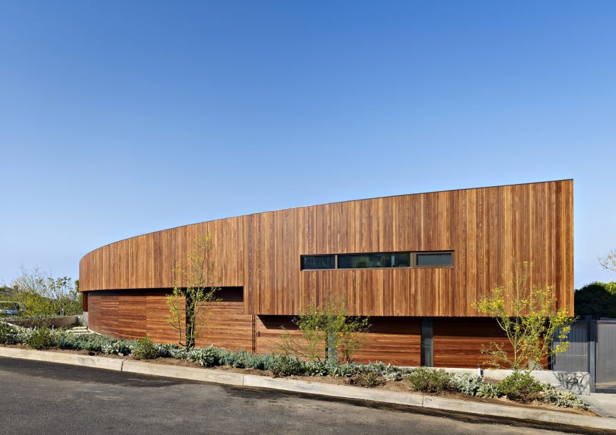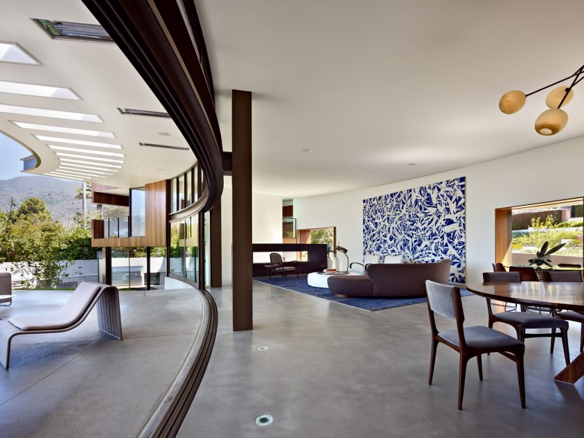 Aptly located on a sweeping corner lot of Tranquillo Road, which is Spanish for “quiet, calm and serene”, the Ziering Residence is a thoughtful exploration into the inherent counter-play between the two natural energies, emphasized by the home’s curved layout and a consistent juxtaposition of density and tone.