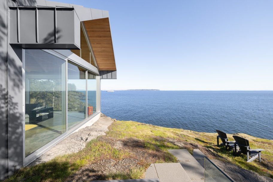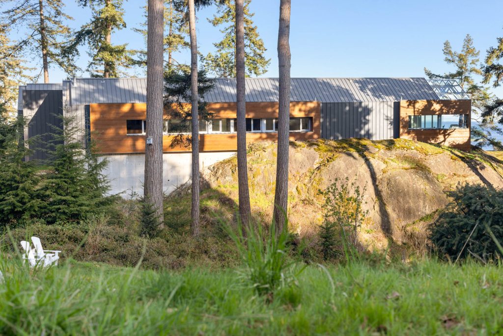This world class home designed by award-winning Burgers Architecture stands as a testament to contemporary elegance harmonizing with the untamed beauty of nature. Spanning 4900 square feet on 1.56 acres, the residence seamlessly blends clean lines and durable materials, evoking the simplicity of coastal fisherman huts while embracing modern luxury. Upon arrival, one is greeted by a steel outer skin with a galvalume coating, punctuated with warm cedar siding. Inside, the interior unfolds with grace and sophistication, boasting a gabled ceiling crafted from milled hemlock with a juxtaposition of charcoal polished concrete floors heated by geothermal energy against matte white walls. The heart of the home lies in its main living area with a cornered wall of floor-to-ceiling glazing and expansive views over Georgia Strait from Vancouver Island to the city of Vancouver. Serenity prevails on the interior with a restrained design. The contemporary kitchen is a place where culinary mastery meets panoramic views. Flowing effortlessly to a covered patio, outdoor entertaining can be enjoyed amidst a backdrop of moss-covered rocks, wildlife and sunsets. The primary bedroom serves as a sanctuary, offering private meadow views overlooking the vast expanse of the ocean. Art gallery hallways lead to additional bedrooms and an office, each thoughtfully designed to inspire and captivate. A separate 1,000 square foot accessory building hosting two ensuited bedrooms and a kitchen serve as a perfect place for larger families or guests and extended family. This is the epitome of West Coast luxury living where architectural integrity combined with natural beauty converge to create a lifestyle unlike any other.