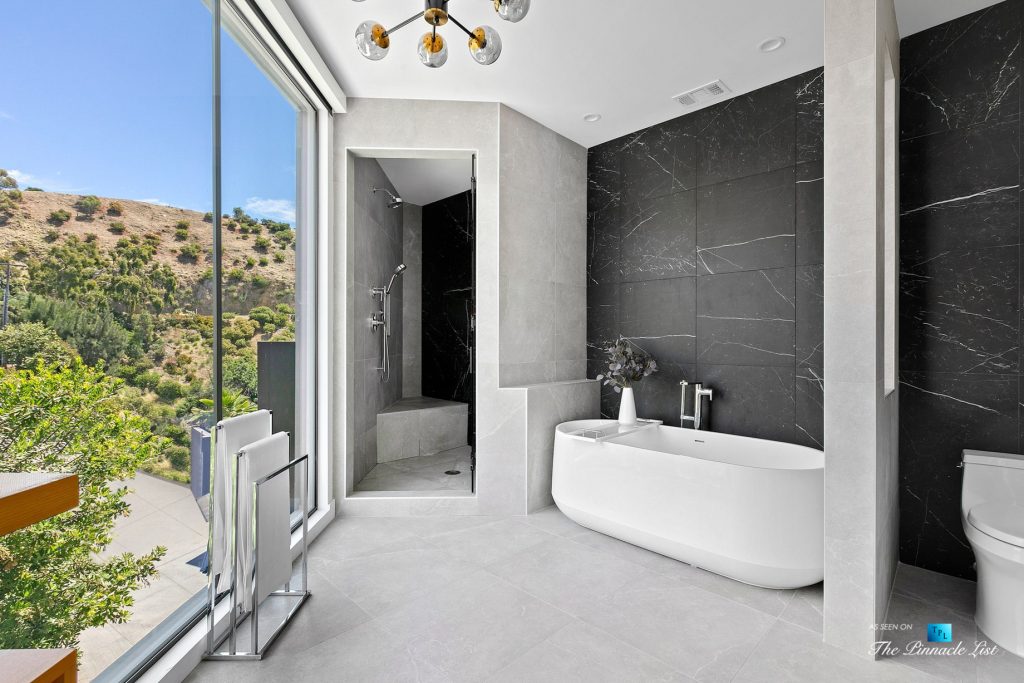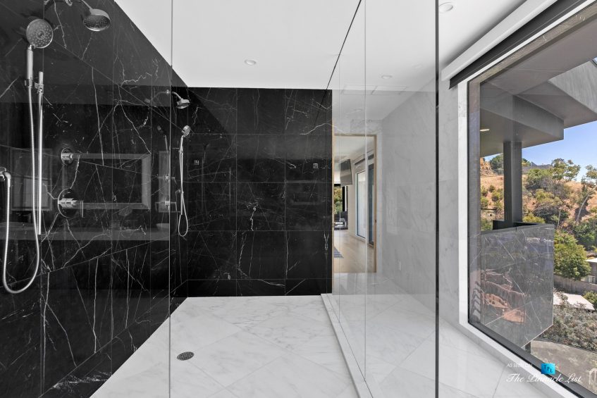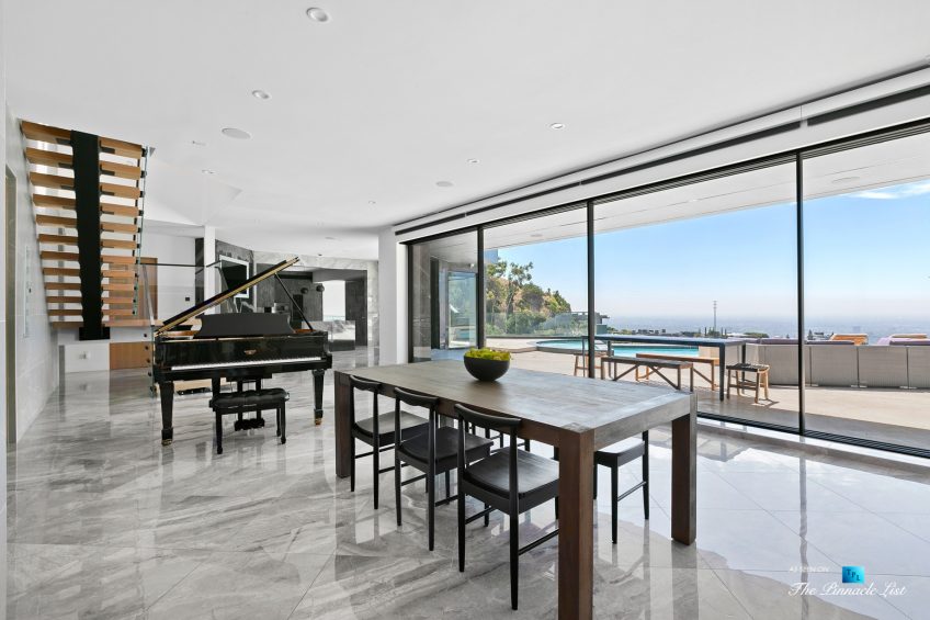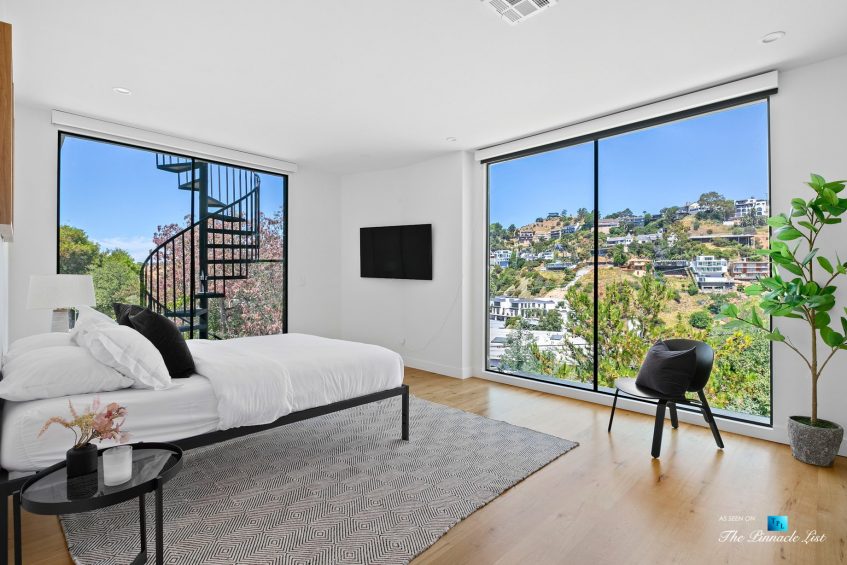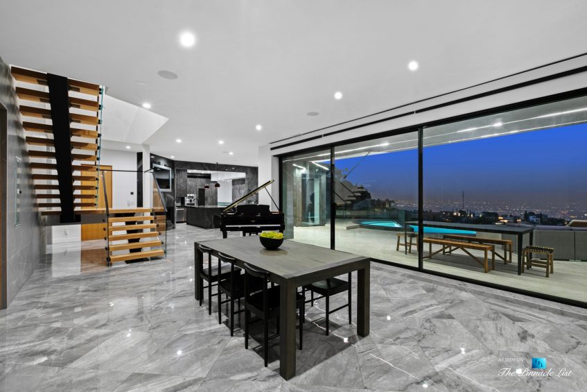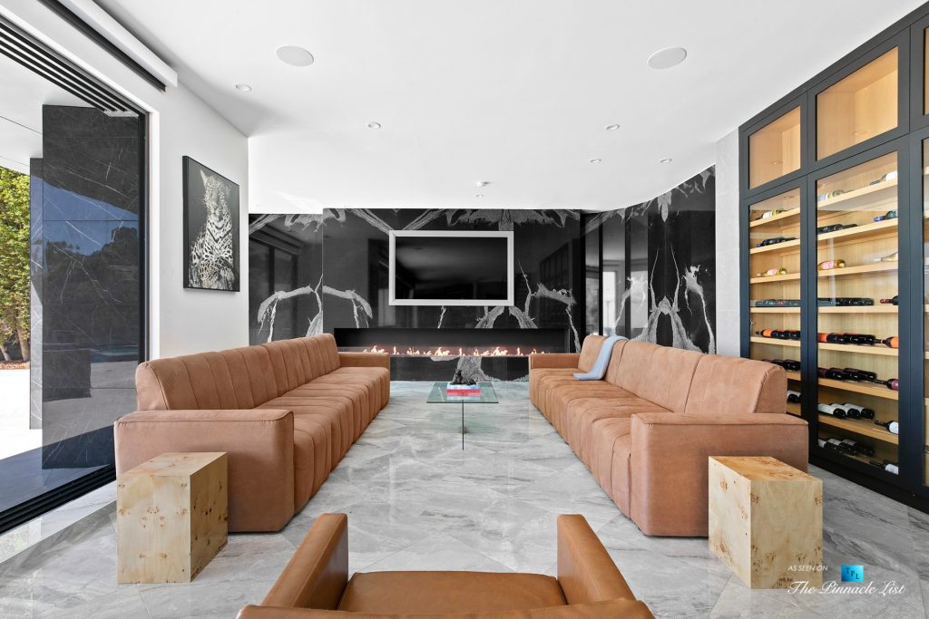 Impeccable Sunset Strip modern with unobstructed views minutes from storied LA nightlife and tucked away on a four home private drive directly off of Sunset Plaza. Enter to a grand main level with sliding walls of glass and a family room with wall length fireplace and a glass wine cabinet. Fully remodeled from the ground up with imported stone, custom appliances, and fixtures, this is an entertainer’s paradise. Four en suite bedrooms with high ceilings, five bathrooms, a chef’s kitchen, a home theater and so much more. Ascend the spiral staircase to the 1000 square foot rooftop deck with a luxurious outdoor kitchen and take in the lights of LA. A sprawling outdoor area anchors this residence complete with an oversized infinity pool and spa as well as a wet bar and outdoor TV all backdropped by jetliner views stretching from downtown LA to Catalina Island.