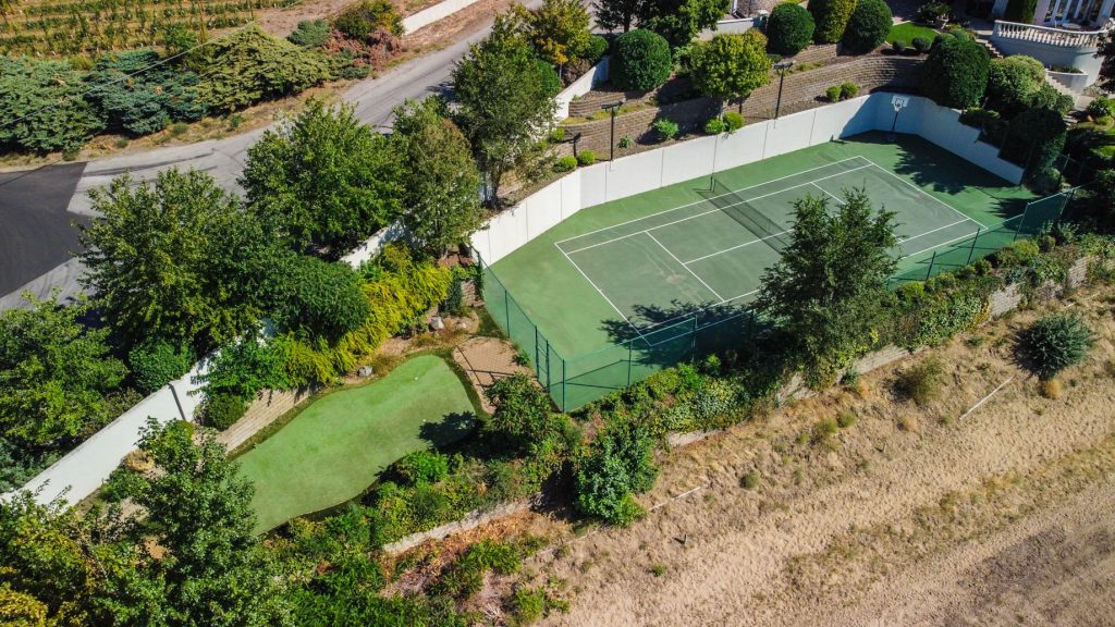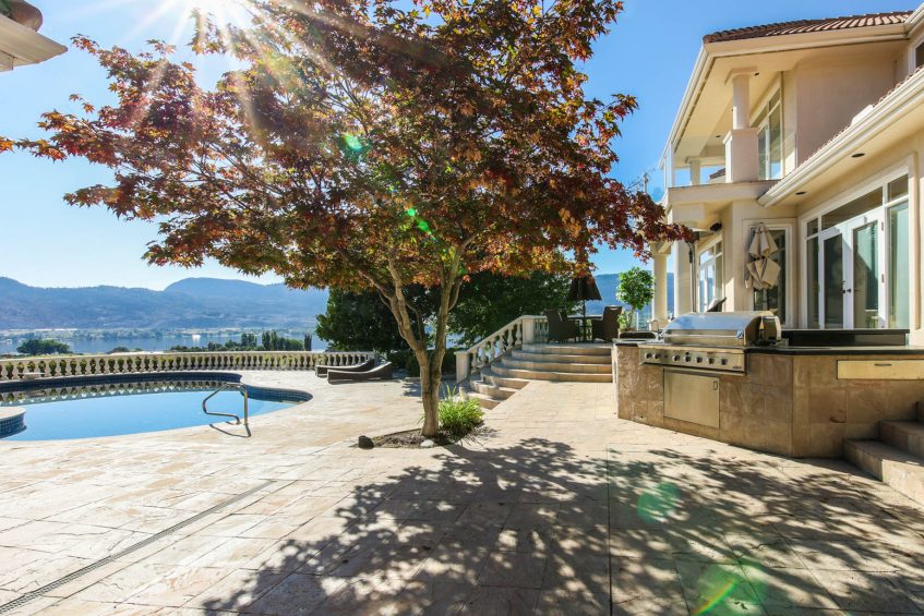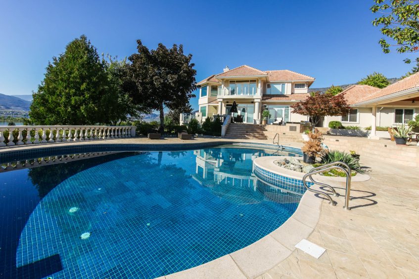 Welcome to BELLA VISTA, a truly extra-rare estate that represents the pinnacle of luxury living in Osoyoos. Nestled amidst picturesque vineyards with breathtaking views of Lake Osoyoos, this home offers unparalleled elegance and refinement. Spanning over 6,000 square feet, the award-winning interior design features lavish touches such as magnificent Swarovski Crystal Chandeliers, a 500-bottle wine cellar, and marble flooring throughout. The chef-inspired kitchen boasts stunning black granite countertops, perfect for culinary creations. A grand porte-cochere entrance and a wrought iron gate with electronic surveillance enhance the estate’s sense of exclusivity and security. For the ultimate in leisure and entertainment, this estate offers a spectacular Saltwater Pool, a Sauna, a Kleig-lite tennis court, and a putting green with a sand bunker. The 3-car heated garage ensures convenience, while thoughtful features such as instant hot water, high-efficiency air conditioning, a water softening and purification system, and radiant floor heating add a level of comfort and convenience to daily life. The estate includes 7 bathrooms and 3 luxurious bedrooms, all set within a beautifully landscaped private retreat framed by an extensive Indian Limestone Terraced wall. This is a one-of-a-kind opportunity to own an exquisite masterpiece in one of the most sought-after locations.