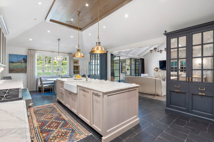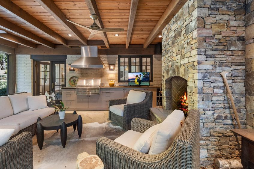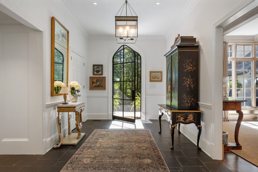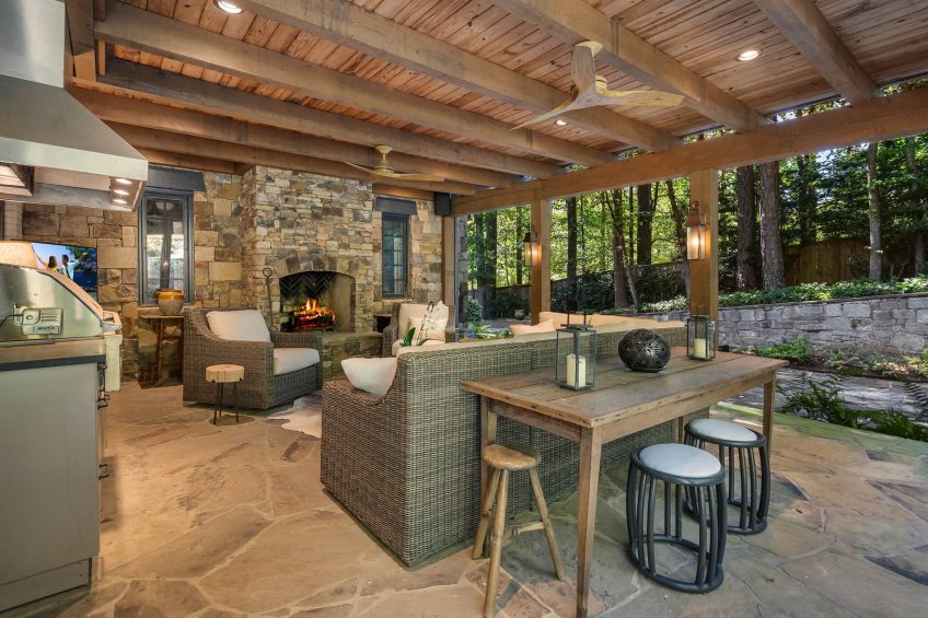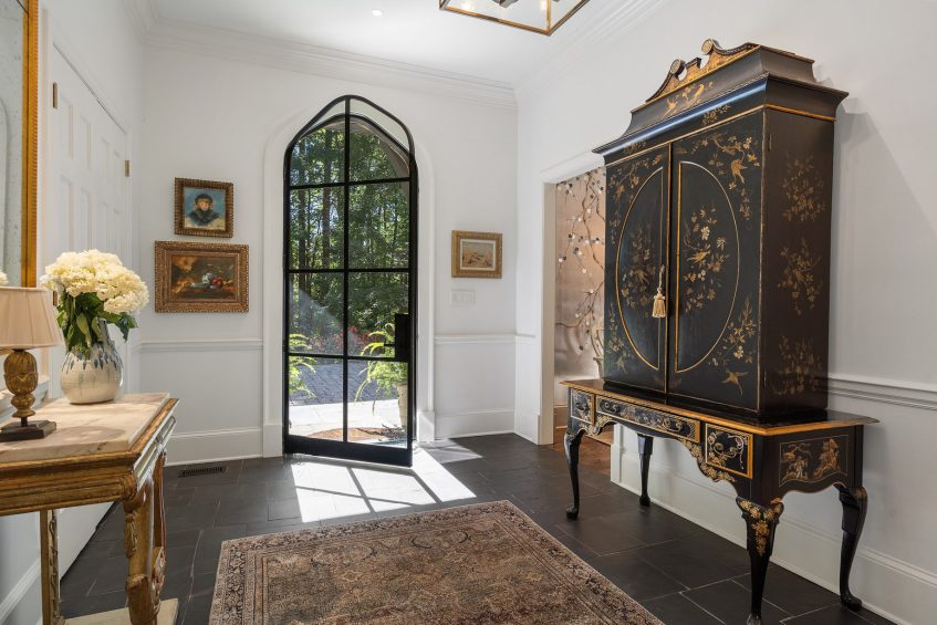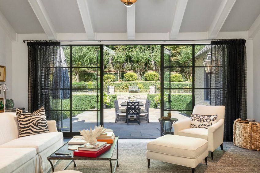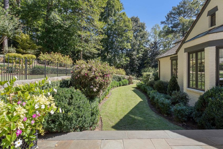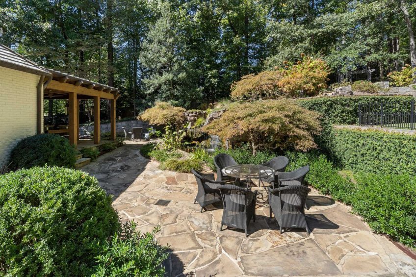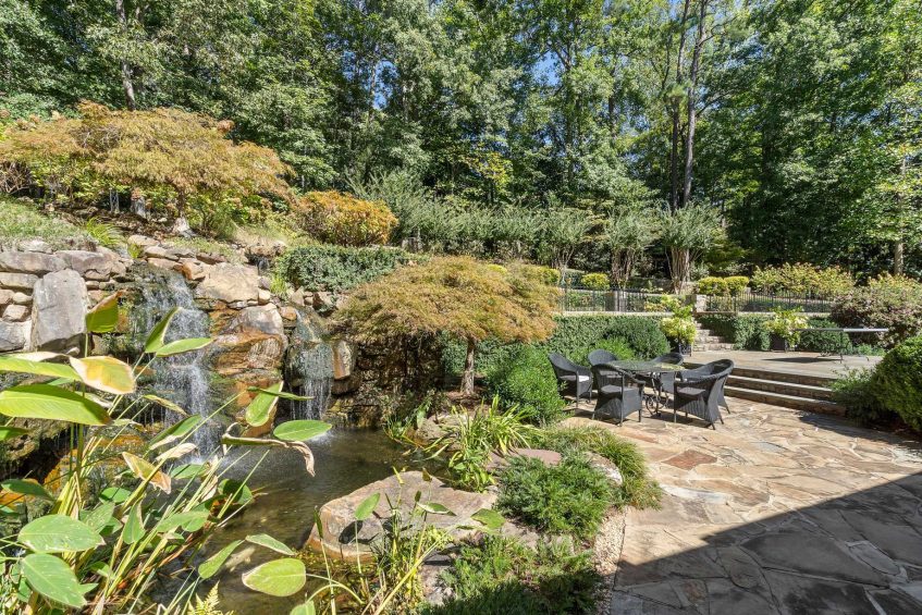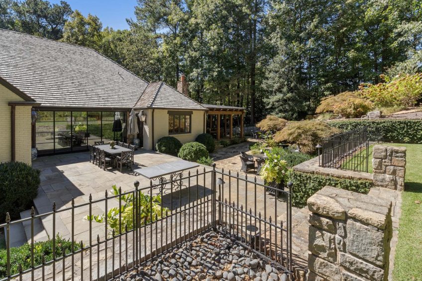 Discover Cross Gate where luxury meets serenity in this beautifully finished, move-in ready home. This exceptional residence has undergone a comprehensive renovation, seamlessly blending sophisticated design with modern conveniences. Upon entering, you are greeted by an expansive open floor plan that exudes elegance with black slate stone floors and large iron windows and doors. The stunning kitchen, expertly designed by Mathew Quinn, Design Galleria Kitchen and Bath, features high-end appliances, honed marble countertops, custom Downswood cabinetry and exquisite finishes that will delight any culinary enthusiast. Breakfast room and double doors out to the loggia. The outdoor loggia is a true highlight, complete with an outdoor kitchen and fireplace, perfect for alfresco dining year-round. The captivating koi pond adorned with tranquil waterfalls further enhances the natural beauty, complemented by enchanting outdoor lighting. New Lutron lighting system throughout the home allows you to create the perfect ambiance and music for every occasion. Step outside to find over 2 acres of meticulously landscaped grounds, complete with walking paths that meander through lush gardens. This expansive outdoor space offers plenty of room for a pool, making it an ideal retreat for relaxation and entertainment. Indulge in leisure activities with a dedicated golf simulator room, ensuring endless fun and practice from the comfort of home. With spray foam insulation in the massive attic, Trane HVAC systems, tankless hot water heaters, this home promises energy efficiency and comfort year-round. Cedar shake roof installed 2021. Nestled within a gated and private setting, you will enjoy peace and seclusion while being conveniently close to all that Sandy Springs, Buckhead and Chastain Park has to offer. Just minutes away from the vibrant amenities of Chastain Park and Buckhead, this home provides easy access to upscale shopping, fine dining, and top-tier schools. Enjoy nearby outdoor adventures at the Chattahoochee River National Recreation Area, along with quick access to I-285, I-75 and GA-400 for effortless commutes to Atlanta. This exquisite property is a true masterpiece. This rare home and property in 30327 is the perfect harmony of elegance and tranquility. Furnishings and art are negotiable.