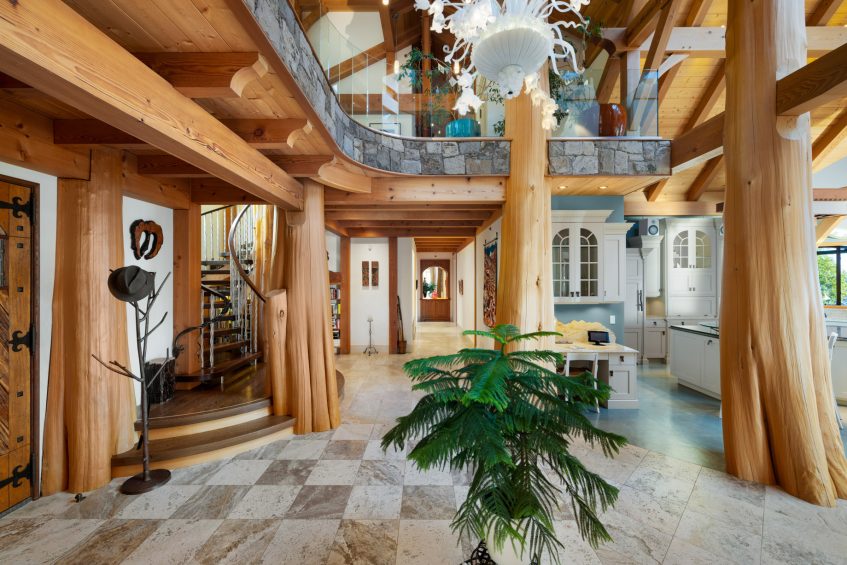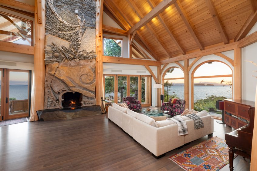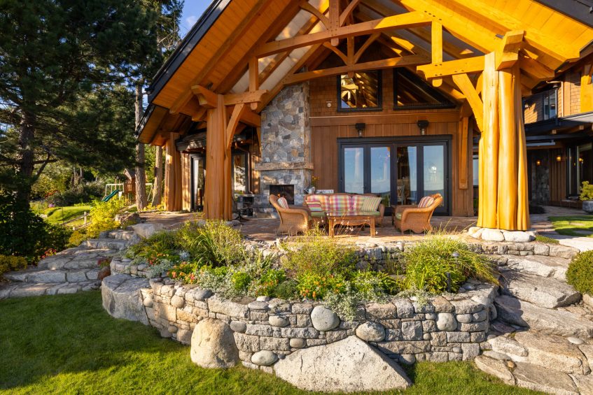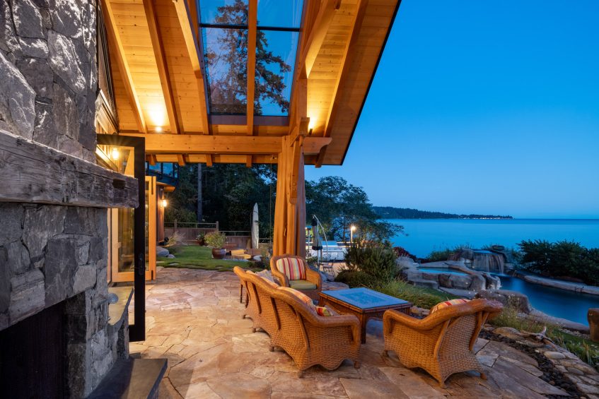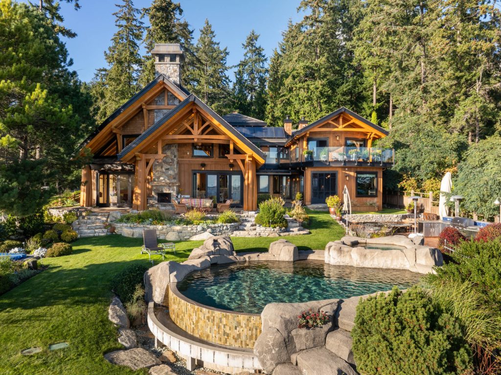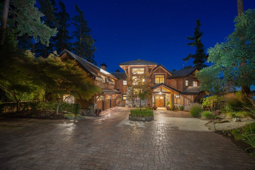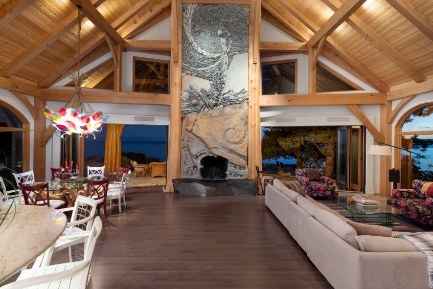 Grand scale gated luxury waterfront estate acreage on the gorgeous shores of Trail Bay in Sechelt! Experience the pinnacle of luxury living in this architectural masterpiece built with traditional timber frame construction. This showstopper marvels at every turn with bespoke finishings custom tailored to the home and property. From the custom entry doors to the beautifully executed wrap-around staircase, to the Robert Studer chandeliers, this home excites the senses. The “piece de resistance” is the stunning 30ft floor to ceiling fireplace made from ancient Utah ocean floor rock anchored by a 6-ton solid black granite hearth. Multiple outdoor spaces extend the living area and capture the spectacular ocean and sunset views. A detached 773 sq. ft. 1 bed and den carriage home is perfect for guests or caretakers. This is a fantastic legacy property – a once in a generation opportunity!