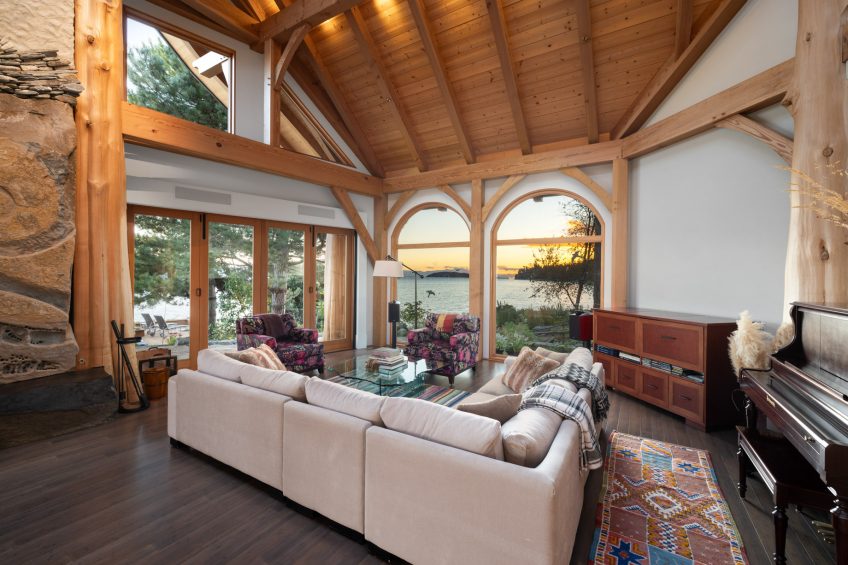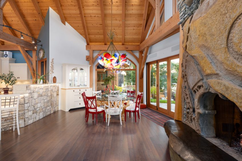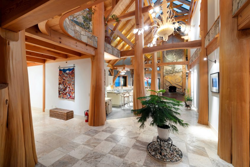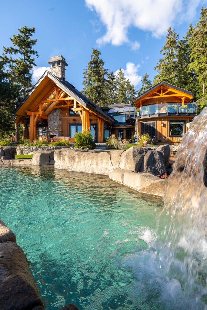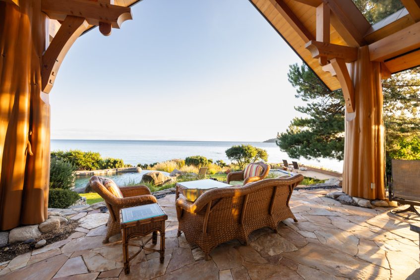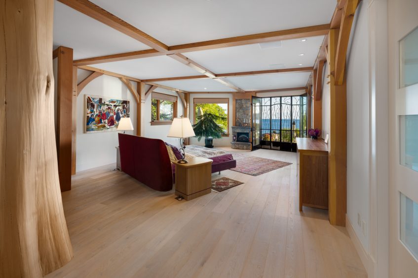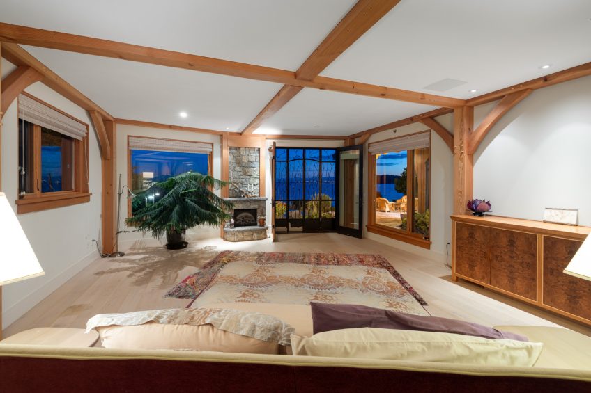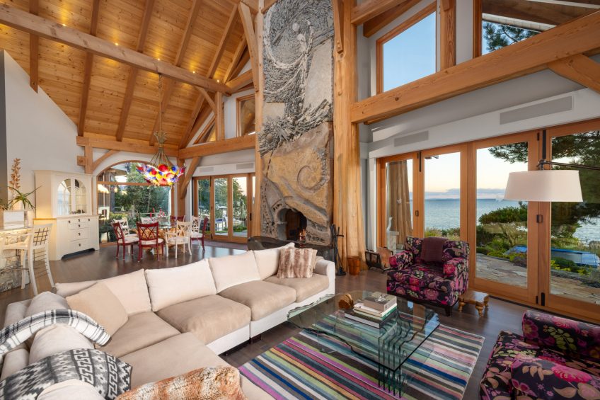 Grand scale gated luxury waterfront estate acreage on the gorgeous shores of Trail Bay in Sechelt! Experience the pinnacle of luxury living in this architectural masterpiece built with traditional timber frame construction. This showstopper marvels at every turn with bespoke finishings custom tailored to the home and property. From the custom entry doors to the beautifully executed wrap-around staircase, to the Robert Studer chandeliers, this home excites the senses. The “piece de resistance” is the stunning 30ft floor to ceiling fireplace made from ancient Utah ocean floor rock anchored by a 6-ton solid black granite hearth. Multiple outdoor spaces extend the living area and capture the spectacular ocean and sunset views. A detached 773 sq. ft. 1 bed and den carriage home is perfect for guests or caretakers. This is a fantastic legacy property – a once in a generation opportunity!