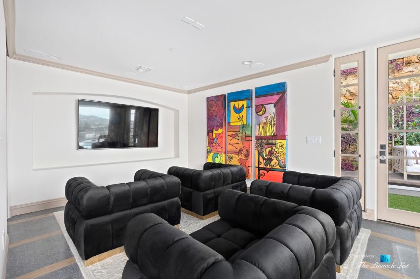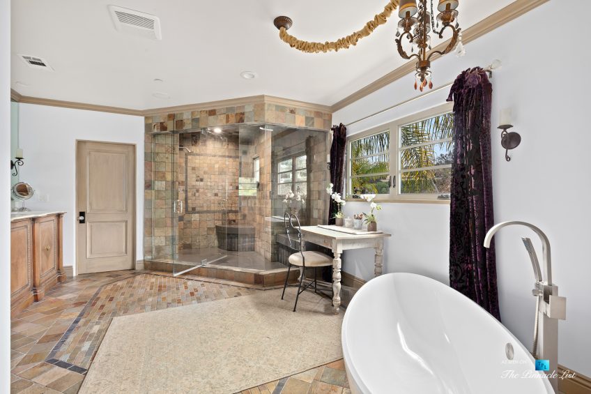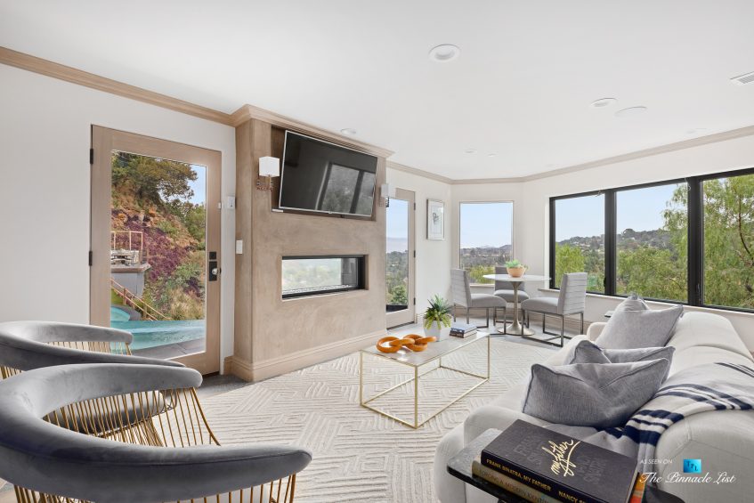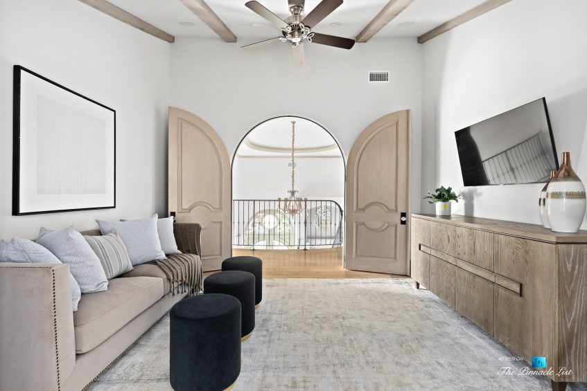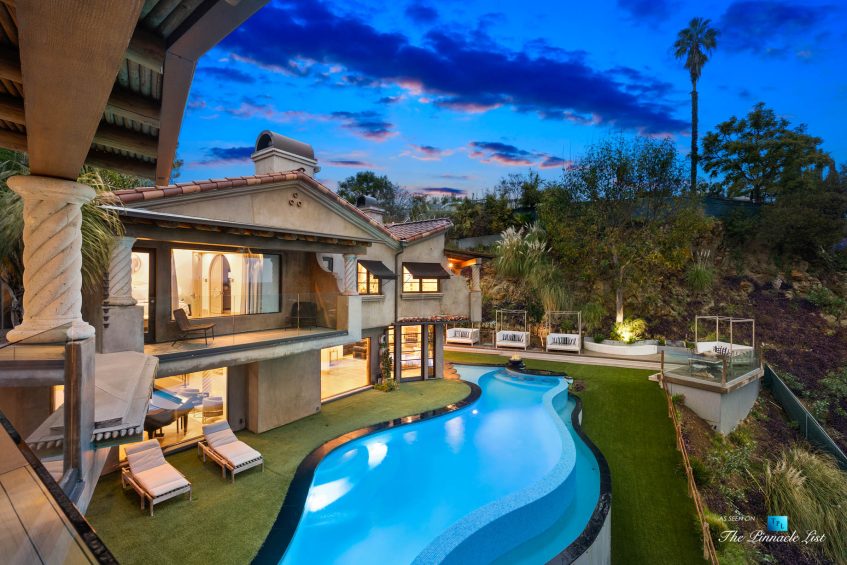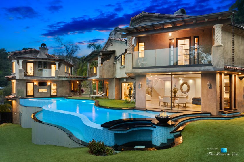Over 7 years in the making, this spectacular Mediterranean estate, completed in 2021, represents the epitome of luxury living and embodies premier design, finishes and amenities. Immaculately constructed and set behind gates in coveted Royal Hills this is a true private compound, featuring a stunning main house, luxurious detached guest house, expansive resort type backyard and a unique art inspired swimmers infinity pool and spa that forge an effortless connection with jaw-dropping views. No detail has gone overlooked or expense spared, with broad use of stone, porcelain tile, marble, and slate throughout the main house. A showstopper upon entry, highlighted with striking curvilinear walls and arched doorways, high vaulted ceilings, and flooded with natural light through walls of glass looking out to the grounds and astonishing views. Featuring 5 bedrooms and 7 bathrooms, numerous custom fireplaces, and multiple areas to relax and enjoy the views and zen like atmosphere, this custom home features a sun-drenched open floor plan equally ideal for comfortable family living and entertaining at the highest level. The main level showcases a magnificent chef’s kitchen featuring a huge center island, stainless steel appliances, Viking range, a walk-in pantry, and custom marble countertops. Three of the four bedrooms located upstairs are luxurious enough to be considered primary suites in their own right, each one en suite with fireplaces, and remarkable private balconies. The 1 bedroom, 3-bathroom guest house is phenomenal, boasting its own miraculous views and has a private gated driveway, entrance, and parking. Built with the same attention to detail and finishes as the main house, it is stand alone and includes a full kitchen, fireplace, and laundry. An additional bonus is a garage that has been stylishly converted to a glass walled flexible space perfect for a private gym, studio, or office. The indoor-outdoor lifestyle is exemplified when stepping outside the main level of the house to the sparking pool, spa and zen backyard that offer a number of charming areas for entertaining or hanging out in quiet style. Located in the acclaimed and multi award winning Lanai school district. Minutes to Ventura Blvd and the Westside.