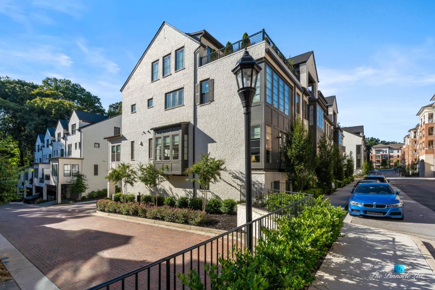 Fabulous light filled END unit with 3 sides glass, 3 outdoor patios, with rooftop patio, landscaped w trees, large planters included. Elevator! A John Wieland Home, most desirable, largest floor plan. Only 25 units in complex. Motorized blinds on the entire main floor, owner’s suite, upstairs entertaining rooftop deck! Open front to back, living, kitchen and family room. Grill on private patio. Huge master suite with sitting room, dual dressing rooms and laundry. Gated cobblestone street to 2 car garage. Outdoor fire pit. On quiet side street walking distance Chastain Park. Great outdoor space for dog walking, trails & street is low traffic cul-de-sac location. Walk or ride bikes to Chastain Park. Walk to breakfast, lunch, or dinner! Walking distance to excellent shopping and dining.