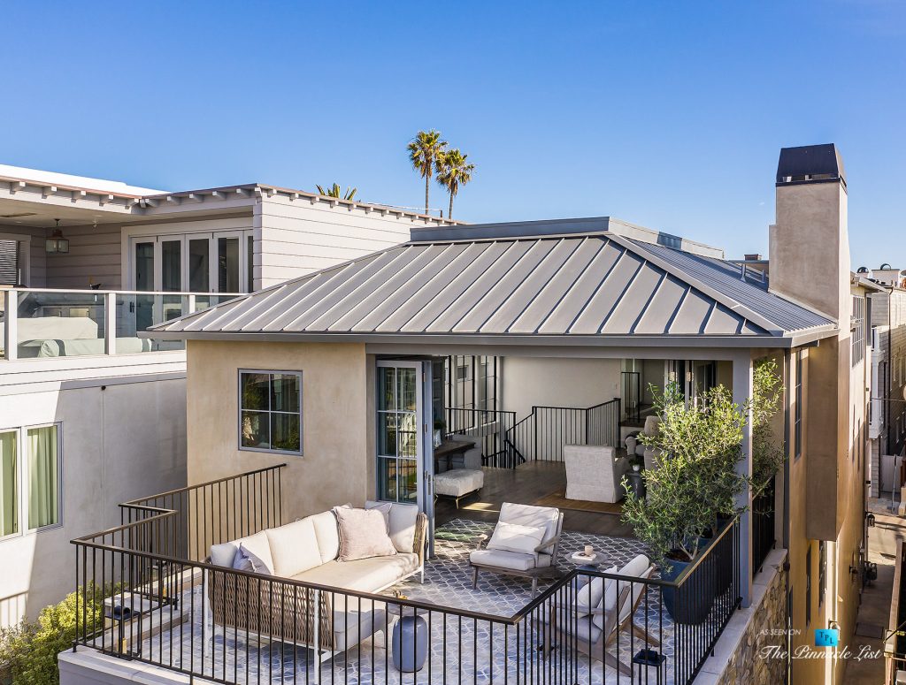 One of the most stunning residences to come to market in years, this exquisite walk street home features four bedrooms and three-and-a-half baths in 4195 square feet of beautifully executed seaside living. Three levels of incomparable design by the renowned Tim Clarke meld Old World style with custom Industrial elements, including walls and ceilings finished with American Clay, lending a soft glow and depth of texture throughout. Custom, individually installed factory glass windows drench the home in natural light. The ground floor entertainment room features a full bar, hand-smoothed concrete flooring, access to the limestone patio and walk street, as well as a guest room and bath. At entry-level, the primary bedroom is elegantly finished with imported French antique doors, a deluxe bath with heated floors and steam shower and a jaw-dropping walk-in closet. An additional two bedrooms, full bath and laundry complete the center floor. The jaw-dropping top level incorporates a balcony with views to Point Dume, formal living room with French antique limestone fireplace, and a central dining room with reclaimed wood beams and ocean vistas. The kitchen boasts a wall of windows with views of the Pacific, custom pewter and brass hood, remote-controlled skylights and stainless appliances. A back terrace opens onto the kitchen and offers a bar, lounge area and casual ocean-view dining. Central to downtown Manhattan Beach, this home represents the absolute best in coastal living.