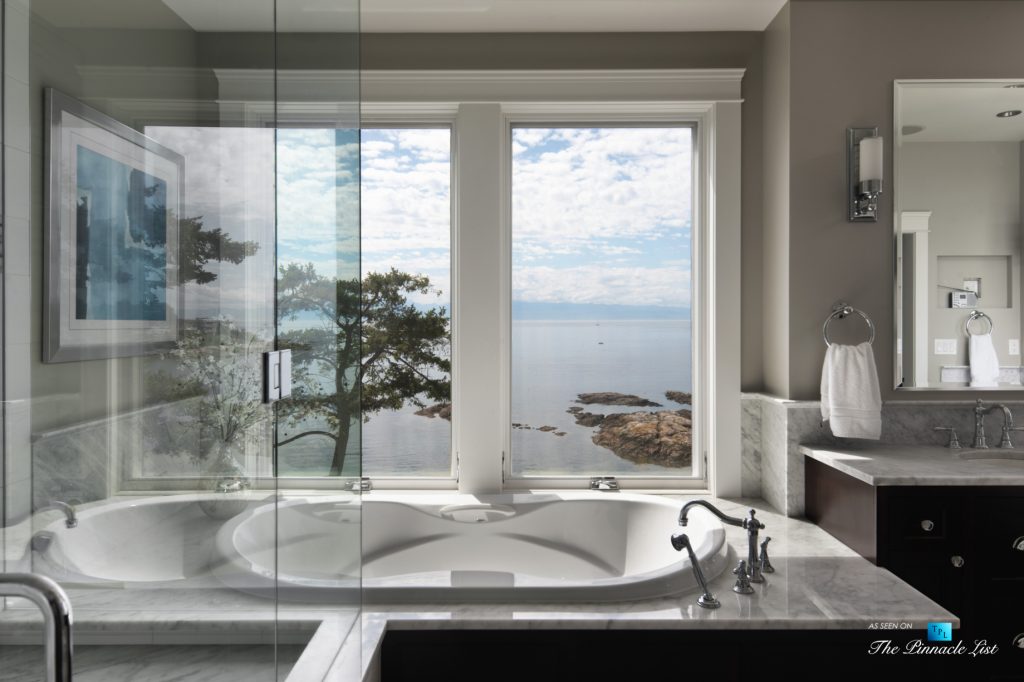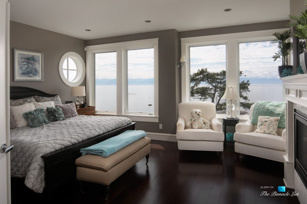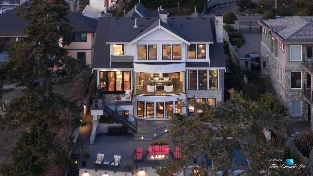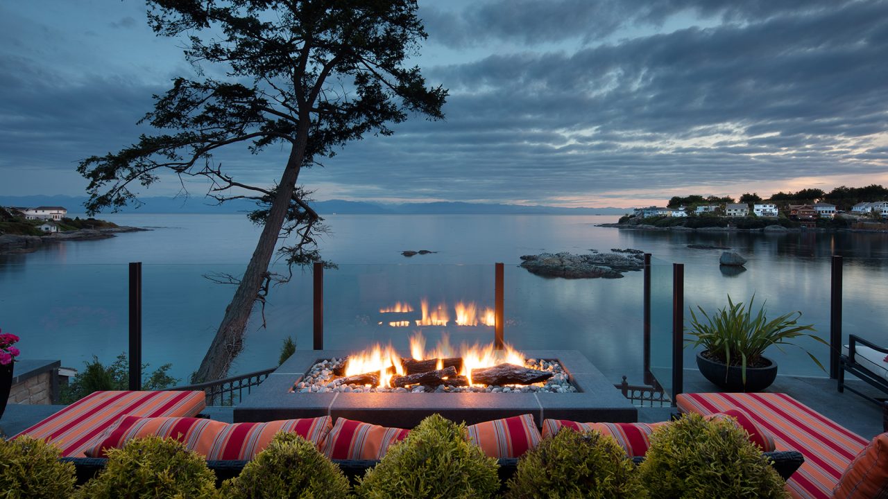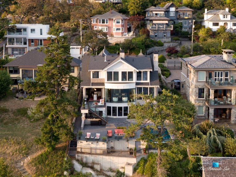 Prestigious Gonzales Bay waterfront. This custom Zebra Designs beachfront residence surpasses all expectations! With over 5,000 square feet of living space extending over three architecturally stunning levels. Exquisite upon arrival with beautifully landscaped gardens and sparkling water views. Formal entry exposes the grandeur within, sweeping ocean and mountain vistas framed by walls of glass. The Interior is visually captivating with soaring coffered ceilings, elegant pillars, superior craftsmanship and artistic detailing. The three levels are connected via stairs and an elevator for convenience. Perfectly suited for entertaining, the main is open and inviting. The well-appointed Chef’s kitchen has gleaming granite, top of the line appliances – including a gas range, and a central island with bar seating for casual meals. The chic kitchen continues onto the refined dining room, which shares a statement fireplace with the dramatic living room. A family room and study each enjoy a fireplace. A mud room, two-piece bath and garage access completes the main. Above, a regal master suite with a cozy fireplace, lavish five-piece ensuite with his and hers sinks, deep soaker tub and walk-in shower and a massive walk-in closet with quality wood cabinetry. Additionally, two more bedrooms, both with an ensuite and one with a walk-in closet. Laundry and plenty of storage finish the level. Below, welcome in-laws or guests with a full one-bedroom suite – complete with a kitchen, living/dining area, fireplace, 3-piece bath & separate entry. Lower also provides another bedroom, den/media room, and a superb wine cellar! Outside living at its best! Rest and rejuvenate in your amazing infinity pool, and hot tub. Spend cool evening by your outdoor fireplace overlooking dynamic views with active marine vessels and vibrant skies. A putting green and tons of patio and deck space encourage outdoor living! Possibly the highlight of the home is the private beach access it affords, beachcomb at your leisure. Affluent area amenities – just minutes from Oak Bay Village, Downtown and the Inner Harbour.
