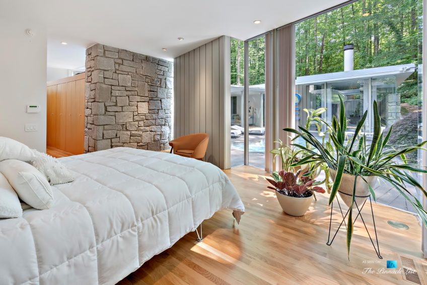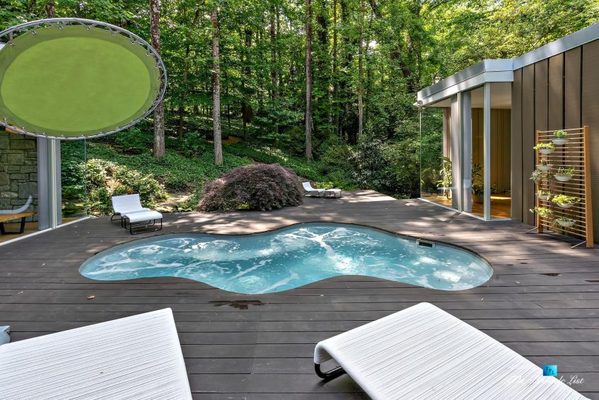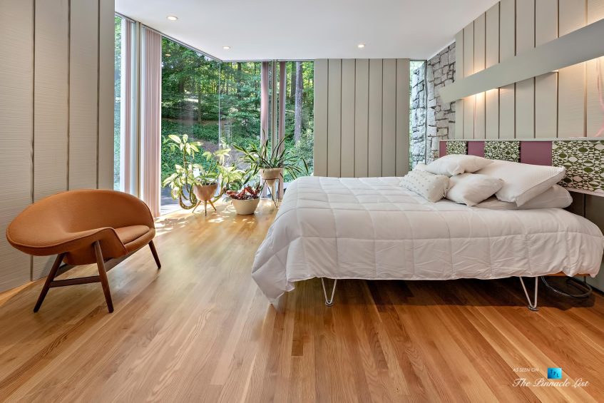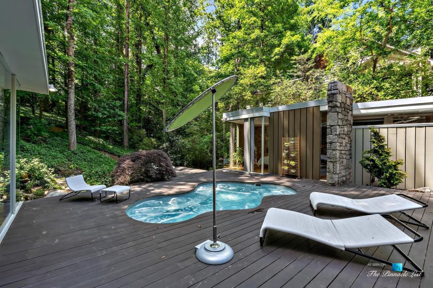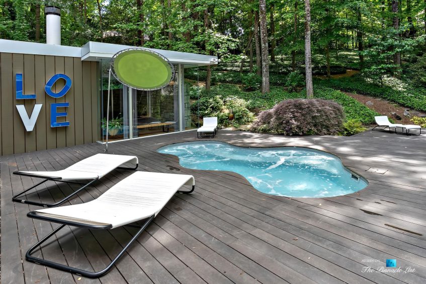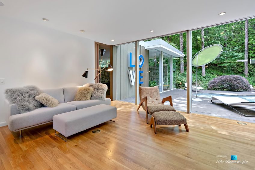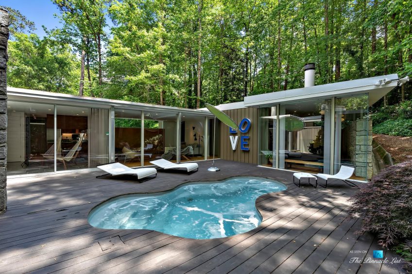 Incredibly special mid-century modern architecture designed by architect Ken Johnson in the heart of Buckhead. Constructed with granite stone & glass and situated perfectly on a quiet, wooded street right off of W Paces Ferry. The current owner, collector has restored every aspect of this property. Most recent is the latest in tapered roof technology, new pool & decking that creates an incredible outdoor living space. Gleaming hardwoods, motorized blinds and all redone bathrooms and kitchen. New tapered roof system, new pool, redone hardwoods, painted, ready to go.