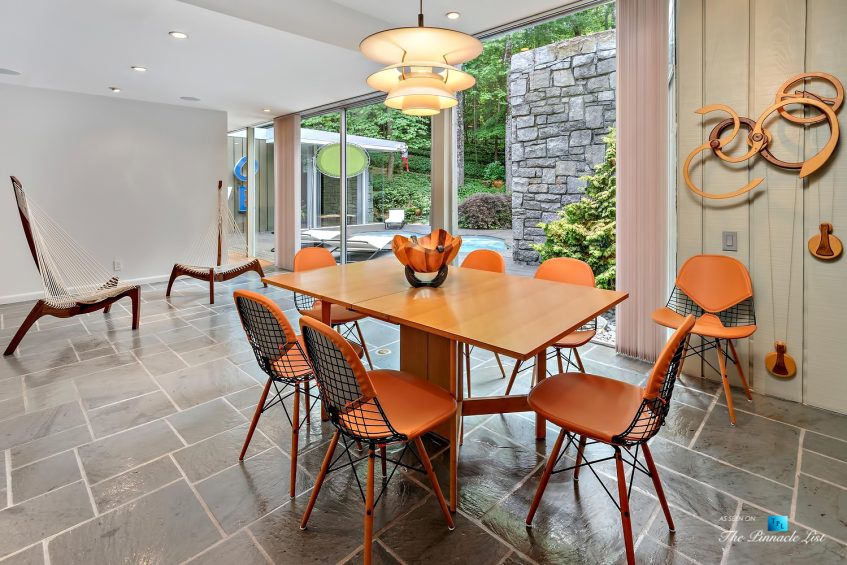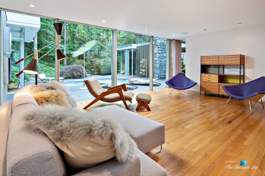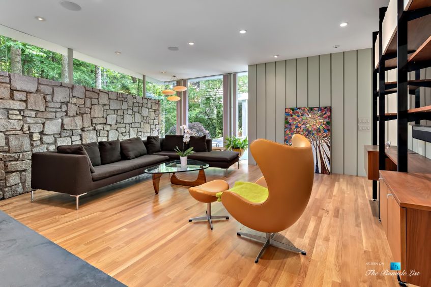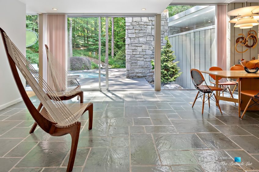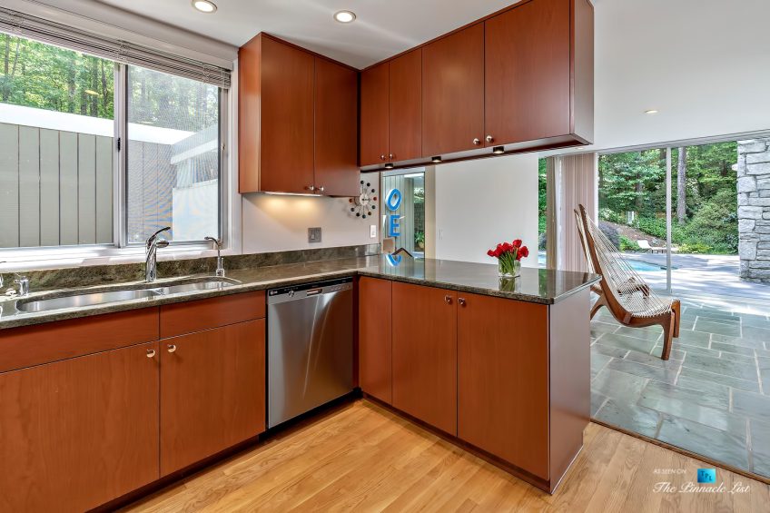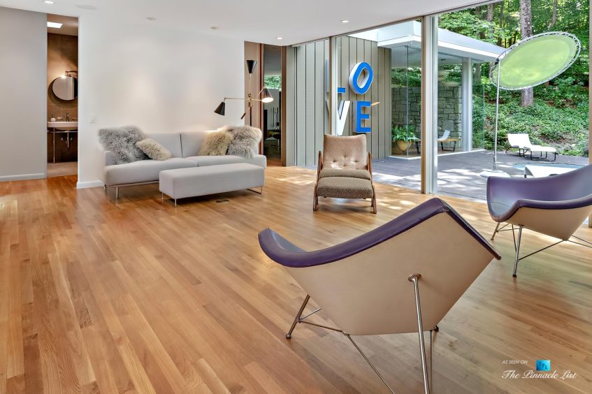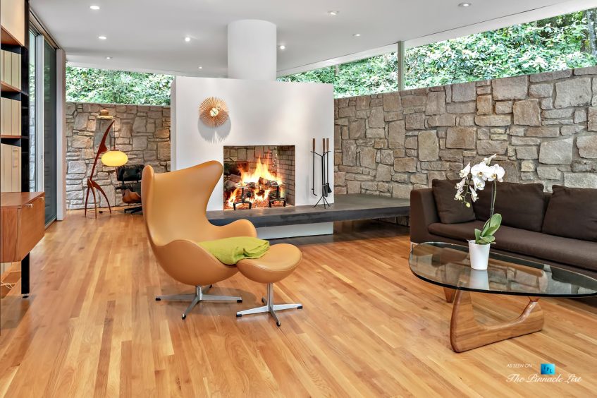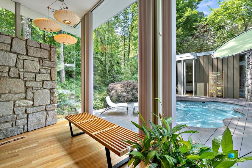 Incredibly special mid-century modern architecture designed by architect Ken Johnson in the heart of Buckhead. Constructed with granite stone & glass and situated perfectly on a quiet, wooded street right off of W Paces Ferry. The current owner, collector has restored every aspect of this property. Most recent is the latest in tapered roof technology, new pool & decking that creates an incredible outdoor living space. Gleaming hardwoods, motorized blinds and all redone bathrooms and kitchen. New tapered roof system, new pool, redone hardwoods, painted, ready to go.
