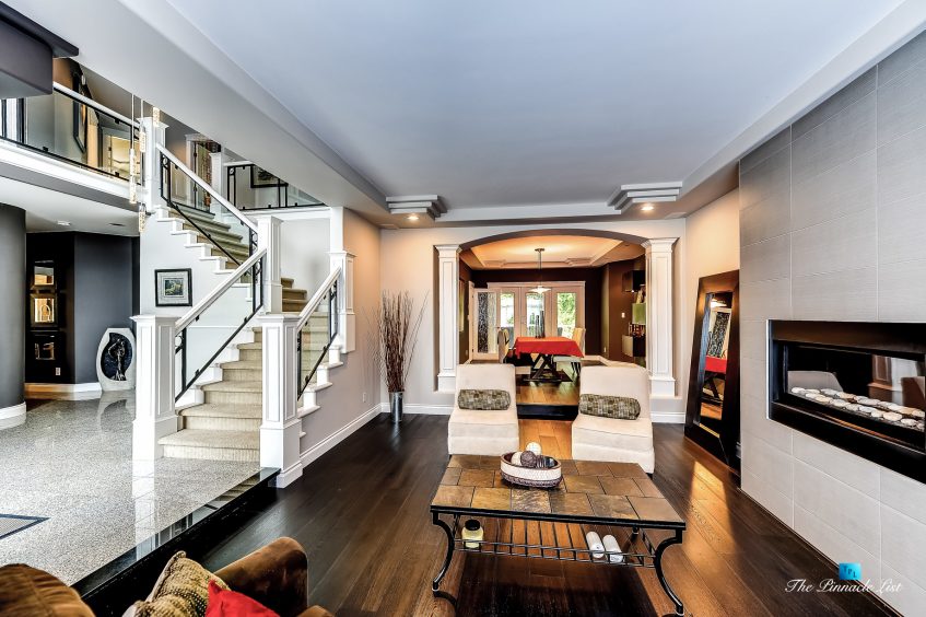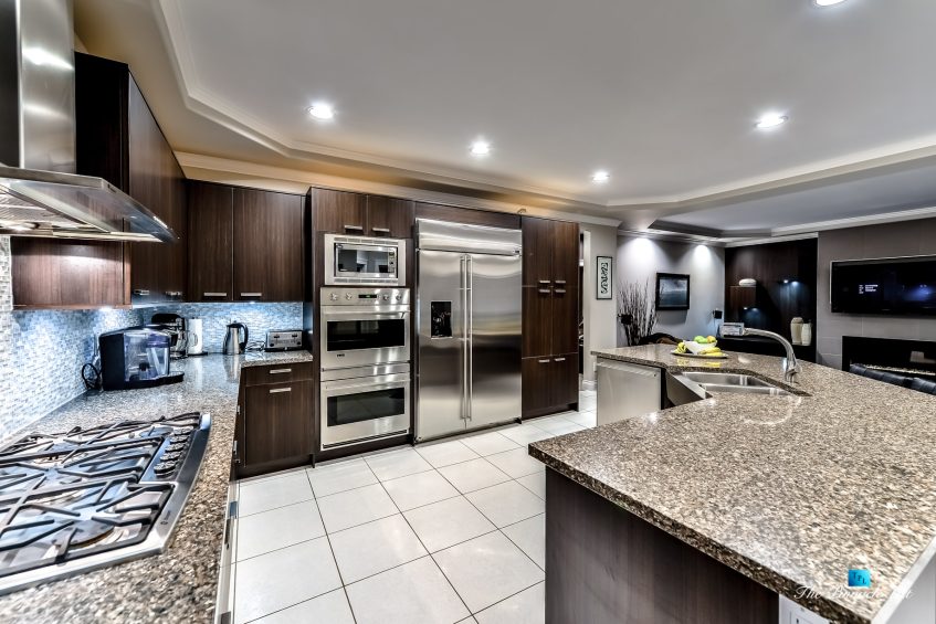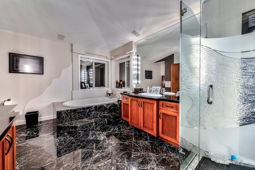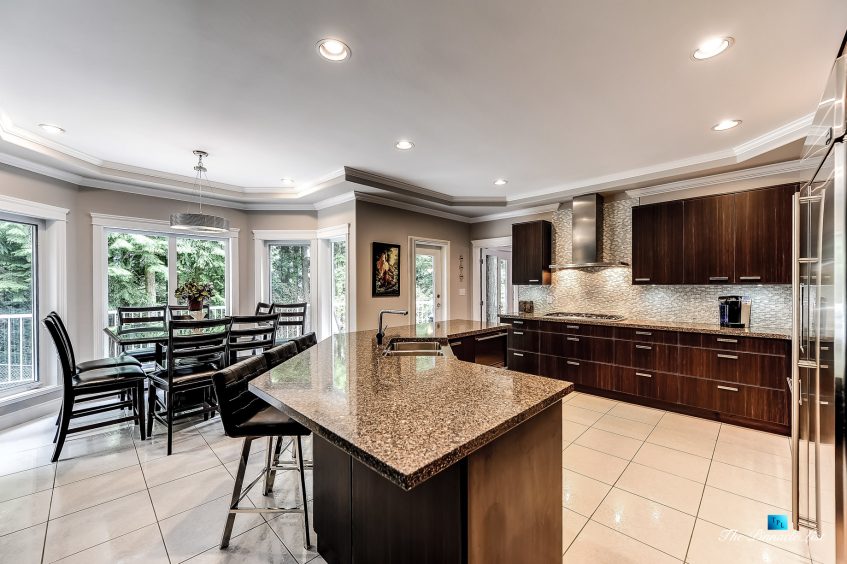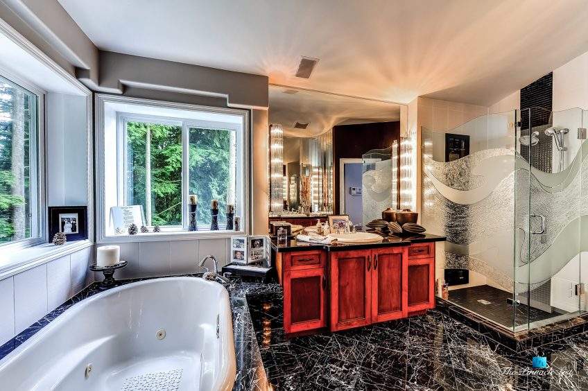 This is the one you have been waiting for in Westwood Plateau! From the moment you step into this stunning home you will be amazed with the modern renovations from top to bottom offering seamless flow and consistency in design throughout. Each room is sure to impress. You will fall in love with the dazzling front entrance glass chandler, glass railing staircase, modern cabinetry design, the black oak hardwood flooring and the designer gas fireplaces. The gourmet kitchen offers top of the line GE Monogram appliances, a subzero 48″ fridge and double wall oven. All this and more, new hot water system, radiant heat, new windows, suite potential, backing on to lush greenbelt and in a quiet cul-de-sac completes this exquisite residence.