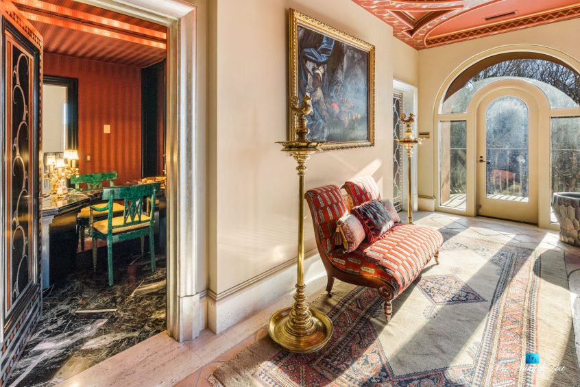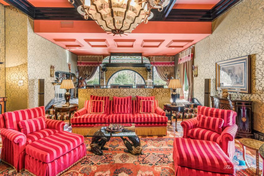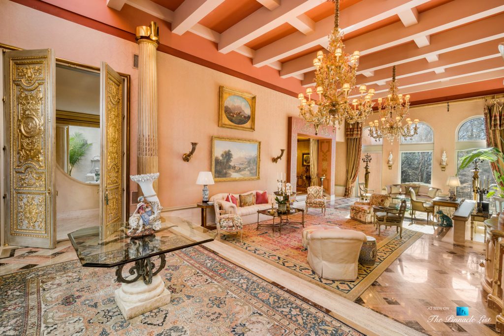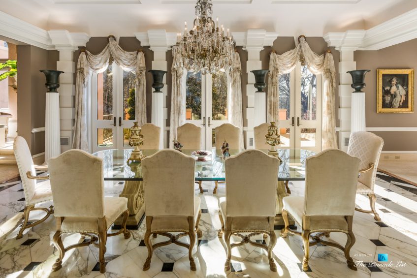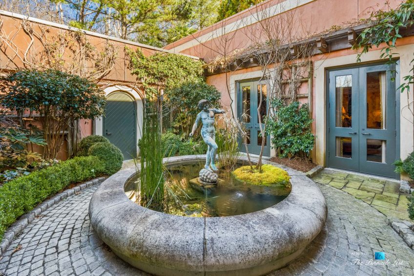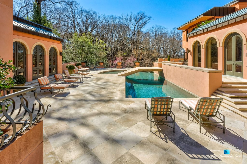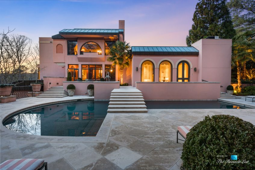 Incredibly rare opportunity to own a resort style residence on 7 acres of private property at the end of a cul-de-sac in Winterthur Estates. Originally designed by Atlanta architect Henri Jova in the 1980’s, this residence has been recently restored and upgraded to what you see today. Situated just 10 minutes north of Buckhead in a private neighborhood of Winterthur Estates. This is one of the finest examples of art deco style right down to the furnishings and light fixtures. Elegant New York style and the same color as the Beverly Hills Hotel with hand applied hard coat stucco over concrete exterior & latest roof system with copper details. It has been lovingly maintained and in excellent condition. Features include 2 elevators, wine cellar, theater and bar. The left side of the house is the family residence as you drive up to the motor court and walk straight into the main foyer, living room, dining, kitchen, master and guest suite. Whereas on the right side of the residence is the entertaining side with 2 guest suites and elevator/stairs to the theater and bar on the 5th floor. The scale is large open rooms and the floor plan is excellent. Gated and secure. 4 car garage, green house and pool house with kitchen, bar and bathrooms and heated pebble tec pool. Extended stay guest apartment or au pair on the second floor that has a full kitchen, 2 bedrooms, living room, gym and separate parking. All in excellent condition. The residents in Winterthur have two new tennis courts, a park and access to the river. Home furnishings are negotiable.