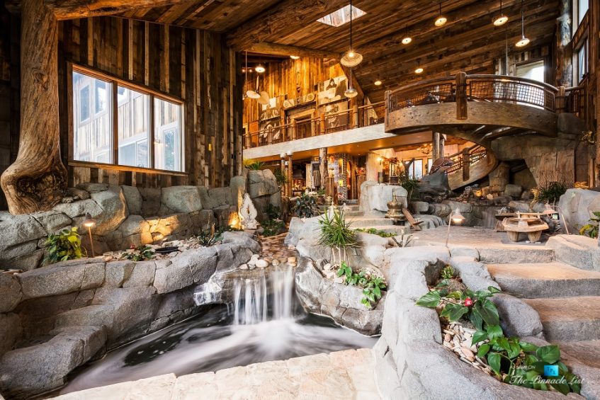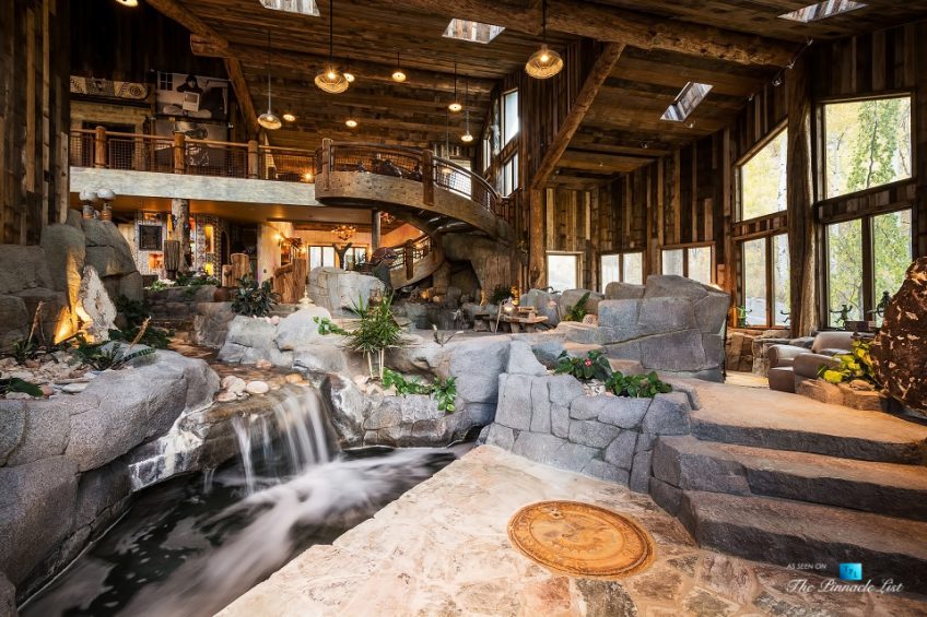 This extraordinary mountaintop mansion set on 4.3 private wooded acres in Park City, Utah is a sensationally unique and distinctive residence with an absolutely incredible interior feature; a river runs through it. Both the exterior and interior of this magnificent mountain retreat include extensive use of natural elements with rock, stone and reclaimed wood throughout. Built in 1996 with over 10,500 sq. ft. of living space, this incredible residence includes 9 bedrooms, 7 full and 3 half bathrooms featuring a spectacular spiral staircase, amazing indoor rock and water feature, grand living room, formal dining room, 2-story great room, family room, gourmet kitchen, wet bar, 4-car garage and more. Outdoor relaxation and entertainment areas include multiple decks and ponds. Located within a mile of Park City and Deer Valley ski resorts, the property has the potential to generate major rental income if desired at $10,000 a day.