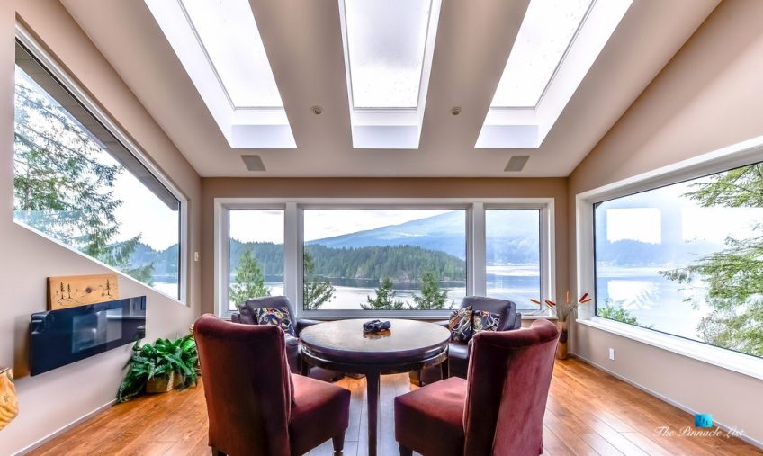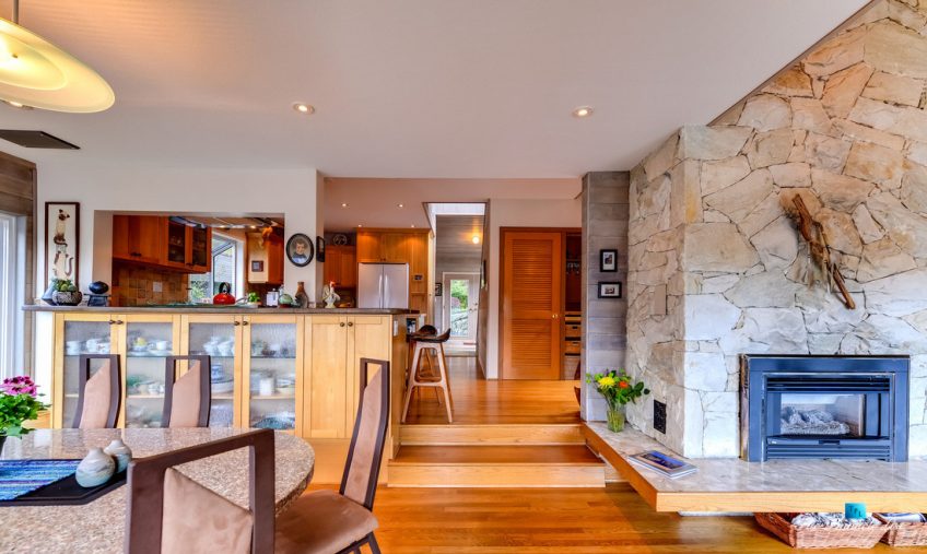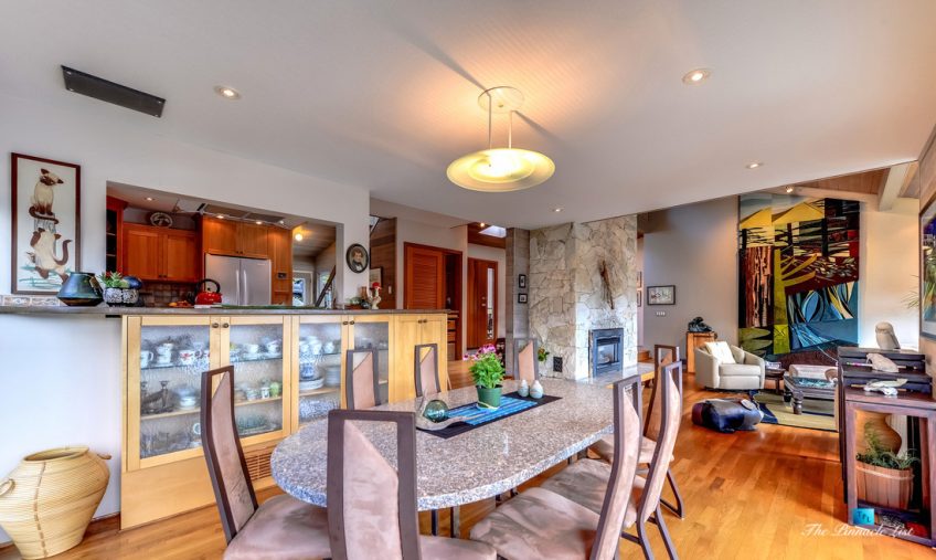 Perched high above Bedwell Bay on a pedestal park like 20,646 sq. ft. lot offering some of the best views in Belcarra, this stunning property overlooking Deep Cove and Indian Arm includes its own private dock with deep water moorage. The 3 three bedroom and loft West Coast contemporary family home was built ahead of its time, offering extra wide staircase, 9ft ceilings and walkout basement. Renovated and well maintained throughout the years this fabulous home is sparkling clean and move in condition. You will love the cozy, open concept floorplan with vaulted ceilings, floor to ceiling rock gas fireplace, large kitchen featuring a 4 burner Viking stove, custom concrete countertops and Alder cabinetry.