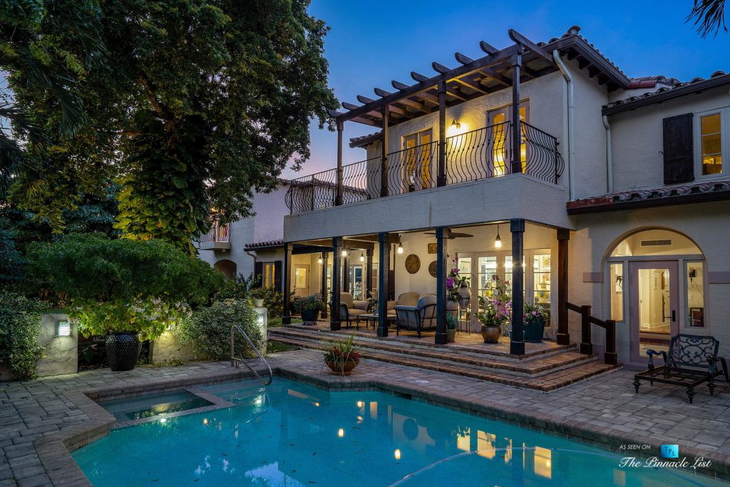 Historic estate built by Addison Mizner in desirable Old Floresta. Sited on a half-acre corner lot, this 6-bedroom 4,500 sq ft home has been completely renovated, preserving the historic features and character of the original design. Pecky cypress ceilings, Chicago brick walkways, wood burning fireplace, hardwood floors, and arched windows are a few of the characteristics that make this home special. The entire home has impact resistant glass windows. The chef’s kitchen has been modified and remodeled with custom cabinetry, Wolf and Sub-Zero appliances, and an oversized island with seating for six. Beautifully landscaped with flowers, tropical plants, and a loggia with spacious backyard and resort-inspired swimming pool with spa. Ground floor bedroom/office with en-suite bathroom. The custom gourmet kitchen spans 37-feet and includes a center island with seating for six, Wolf 8-burner natural gas stove, Sub Zero refrigerator and freezer, and wine cooler, Wolf double wall oven (steam and convection) with warming drawer, and storage pantry. Separate staircases lead to the additional five bedrooms, separated into two wings of the home: one with three bedrooms and the other with two. The light and bright, master suite features a full-length balcony overlooking the picturesque gardens and swimming pool. Separate His and Her walk-in California style closets and a sumptuous bathroom with freestanding soaking tub and glass enclosed walk-in shower. Outdoor enjoyment includes a pool and spa, both recently refinished, Chicago brick walkways, a covered loggia, separate gazebo, all served by the full Cabana bath and set amidst thousands of flowers, privacy hedges, and tropical greenery on the spacious 1/2-acre property. Designed and built by Addison Mizner for his brother, this historic home was completed in 1924, this home is one of the few remaining Addison Mizner Originals. Old Floresta is a unique historic neighborhood established in the 1920’s by renowned architect Addison Mizner, who helped defined Boca Raton’s signature Spanish Mediterranean style. Mature trees canopy the quiet streets in this sought-after enclave in the heart of Boca Raton, minutes from the famed Boca Raton Resort. Mizner Park’s world-class shopping and dining, and the beach are also just minutes from home.