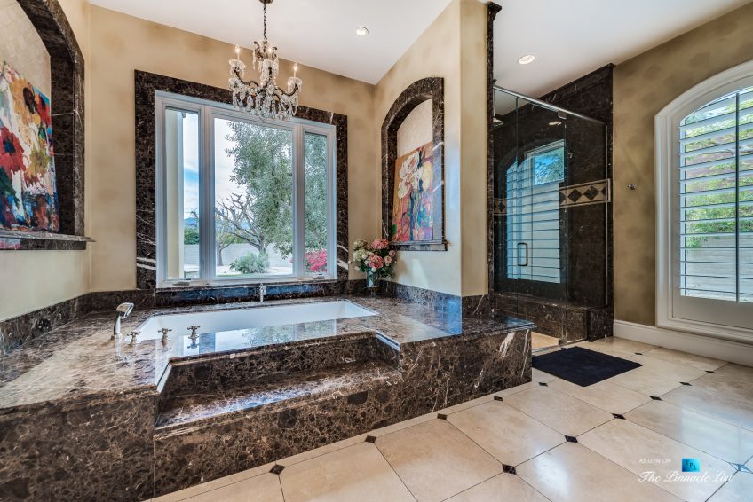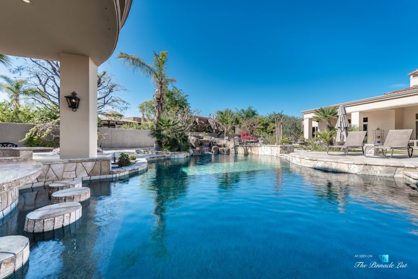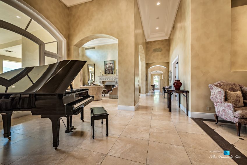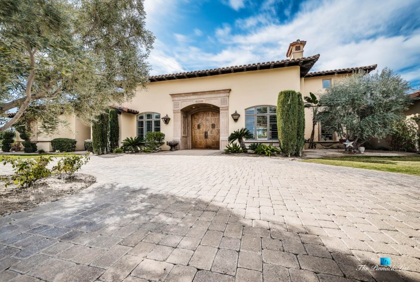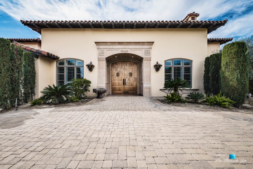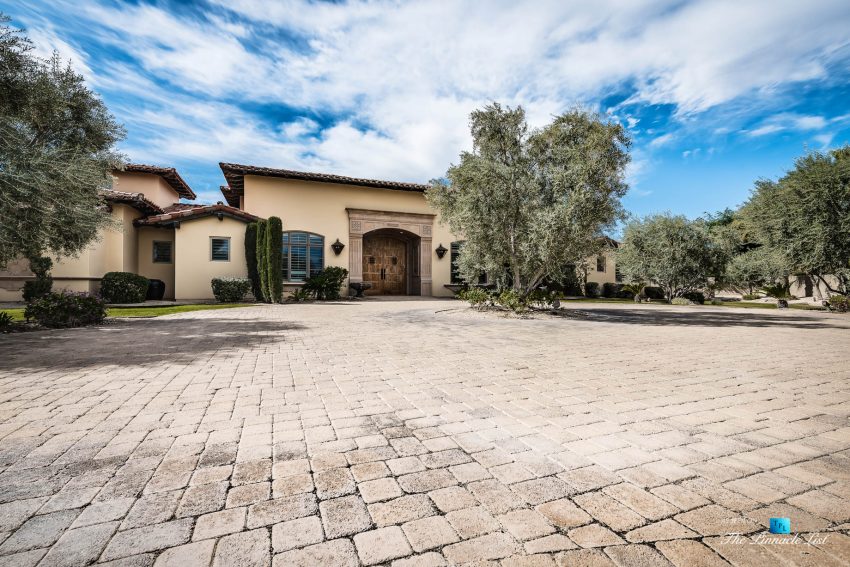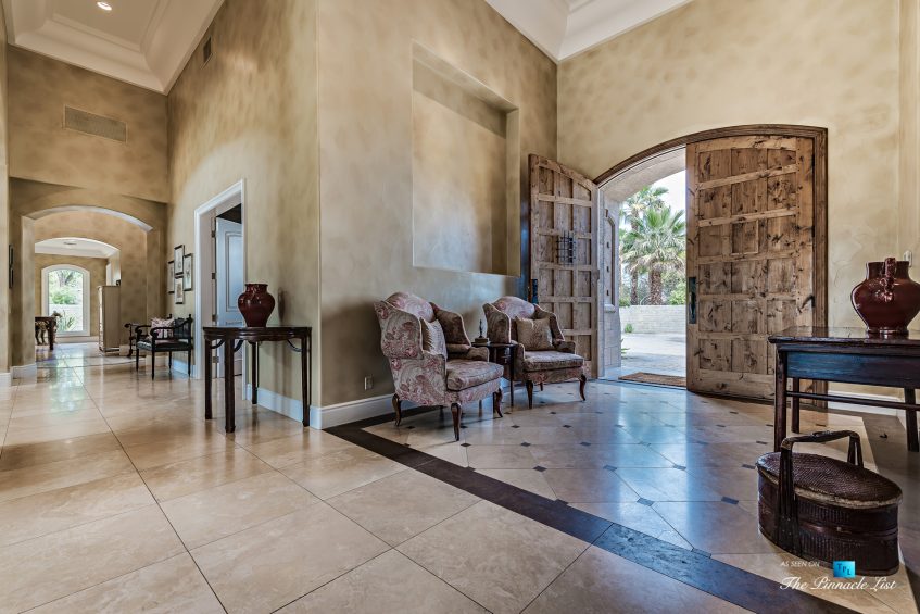 Private gated estate in Rancho Mirage on over an acre of land. Mediterranean style estate with sensational sunny south facing views. Rotunda entry with room for a grand piano, formal living room with grand fireplace, formal dining room. Intimate library with a carved stone fireplace. Theater with projection system and tiered seating, surround sound, padded walls, popcorn machine. Luxurious master suite with another carved stone fireplace, spa like double master baths and walk-in closets. Casita with a sitting room and spa like bath. All other bedrooms are en-suite. Expansive grounds and Wynn Las Vegas style pool with swim up bar, covered outdoor kitchen/entertainment pavilion with outside air conditionings and 5 car garage.