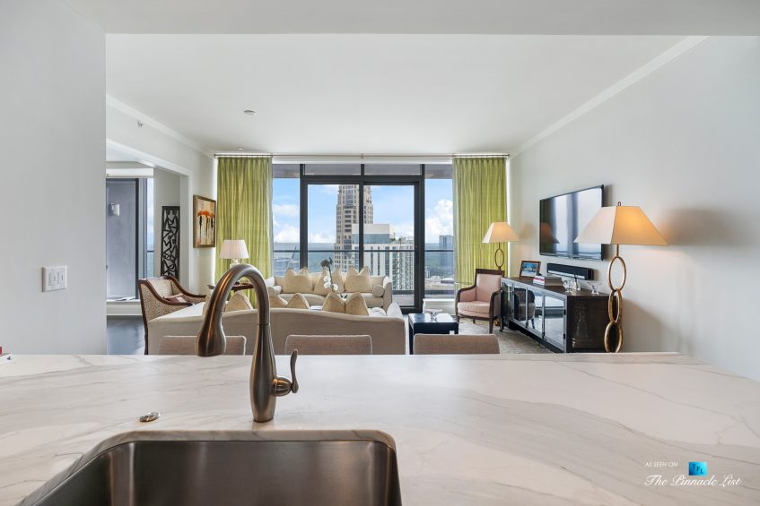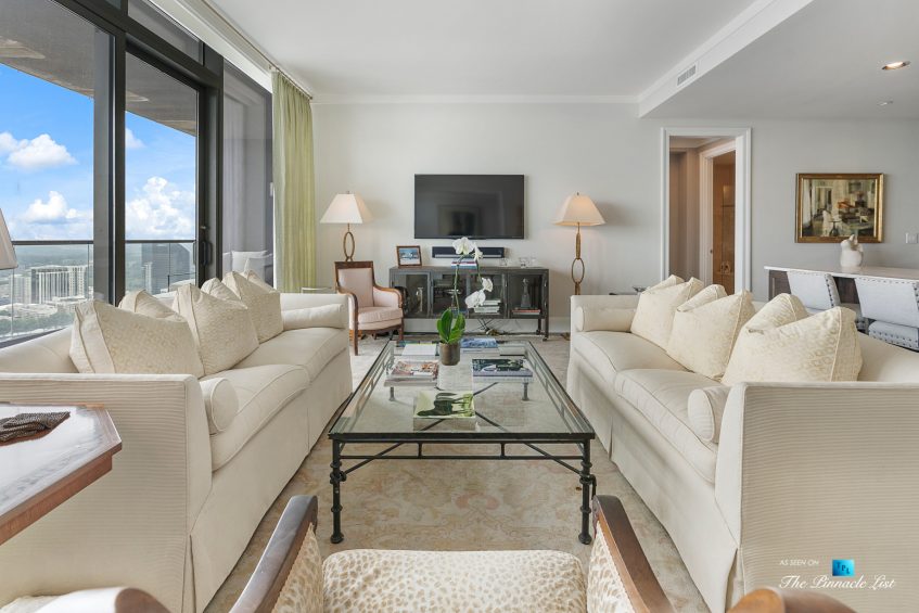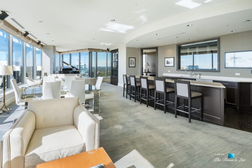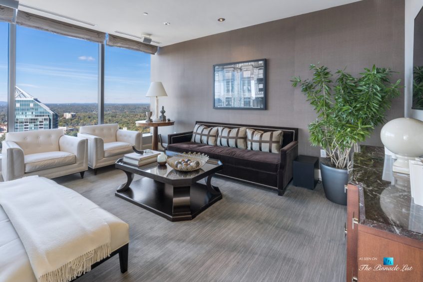 Located in the best part of central part of Buckhead just a few blocks from Phipps Plaza and top-notch restaurants, one of which is in the building, Bistro Nikko, a Buckhead Life restaurant. The Sovereign on Peachtree Road is probably the most architecturally significant building in Buckhead. Stunning floor to ceiling glass and only 82 units starting on the 28th floor to the 50th floor. This unit doesn’t disappoint! Every room has incredible views! The covered balcony runs the length of the unit and has NW facing views which also means that it does not get the intense heat of the sun in the afternoons. This unit has Control4 automated lighting and a sound system. The kitchen features Sub Zero and marble countertops and plenty of room for the chef. Separate laundry and storage room. Ownersโ suite has doors out to a private patio separate from the main patio and an ample bathroom done in marble with separate shower and oversized tub. The Sovereign amenity package located on 28th and 29th floors are unsurpassed and include 3 separate lounges, 3 full kitchens plus a catering kitchen, conference room, and guest suite. On the 28th floor is the palatial outdoor pool and sky deck that are manicured to perfection and include saltwater pool, hot tub with fireplace, 2 Wolfe grills and sound system. The executive staffed fitness center can be found on the 26th floor adjacent to the private club The Buckhead Club that is available for residents to join. Services include 24 hr security, doorman, and concierge. There is secured resident parking, abundant guest parking, and access to Peachtree, Piedmont and Buckhead Loop from the building as well at walking distance to the best shopping and restaurants in Buckhead. Two parking spaces, #155 and next to #155. Furnishingโs negotiable.