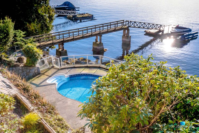 Breathtaking oceanfront property with private dock. Welcome to your own low bank waterfront home situated on a sun drenched 13,880 sq. ft. lot complete with swimming pool. With 6,218 sq. ft. on 2 levels, this private residence offers endless possibilities to make it your own. Open concept floor plan includes vaulted ceilings and massive amounts of glass with windows running the entire length taking in Absolutely stunning panoramic million-dollar water views. A gourmet kitchen, library, spiral staircase leading to large recreation room, an oversized master retreat with his and her sinks and walk in closets and marble soaker tub complete this elegant home. Enjoy West Coast Oceanfront Living at its finest with the best that a Belcarra lifestyle has to offer.