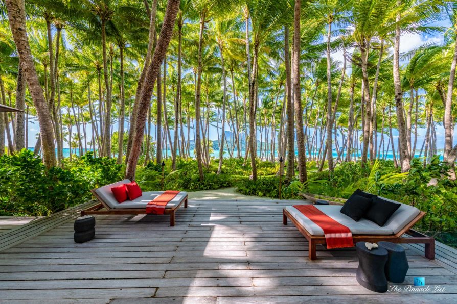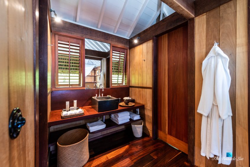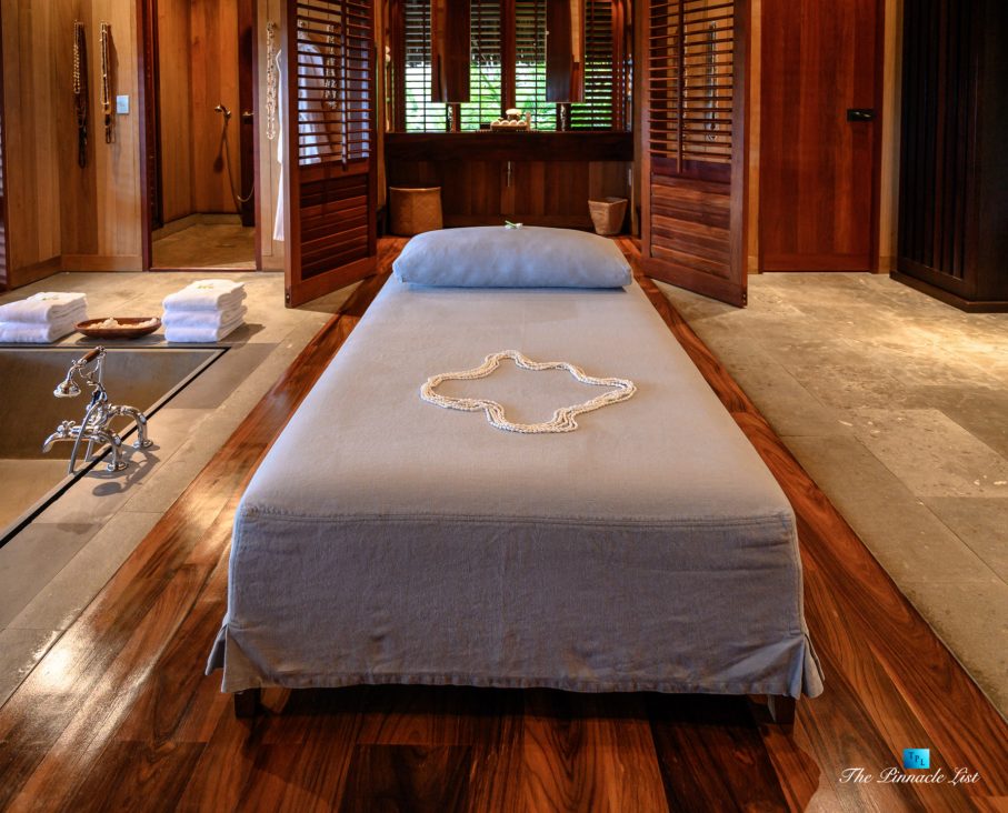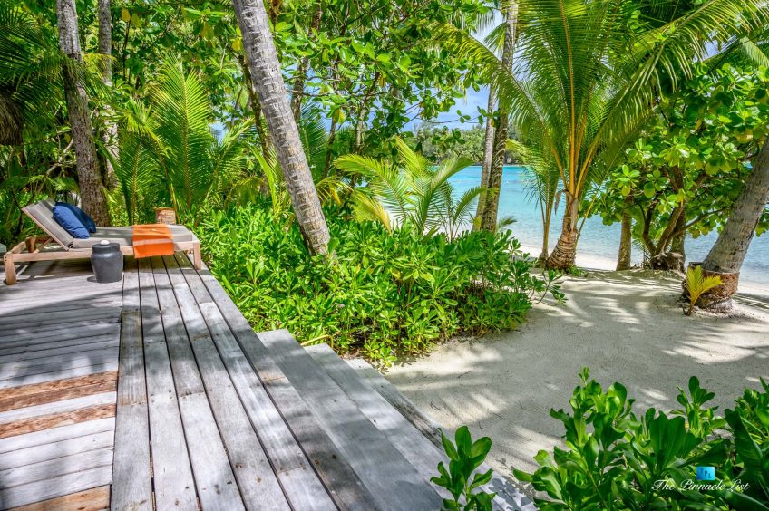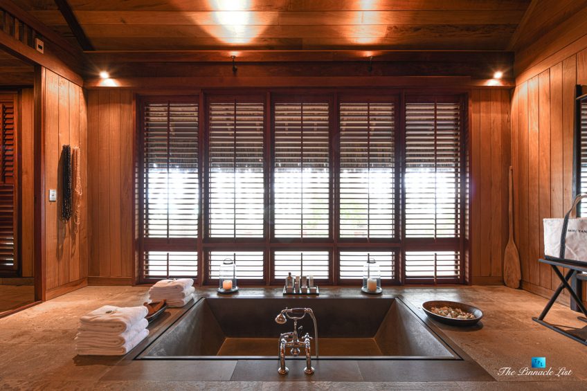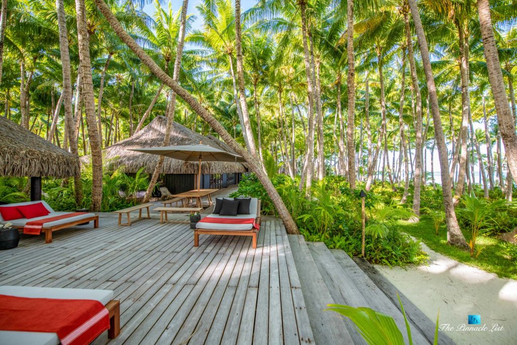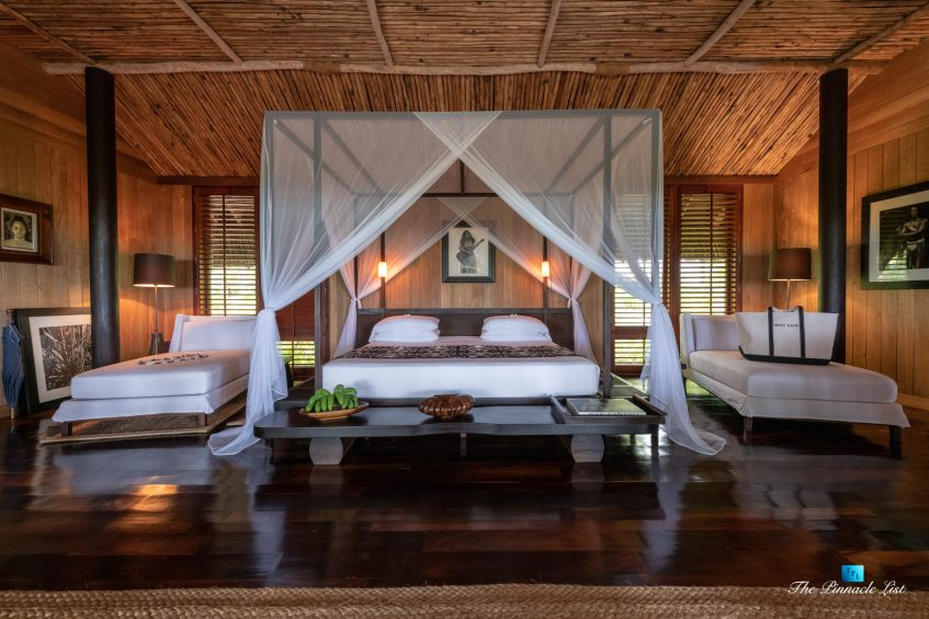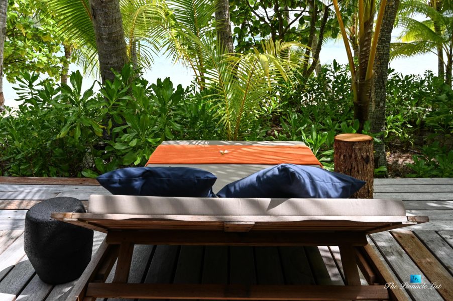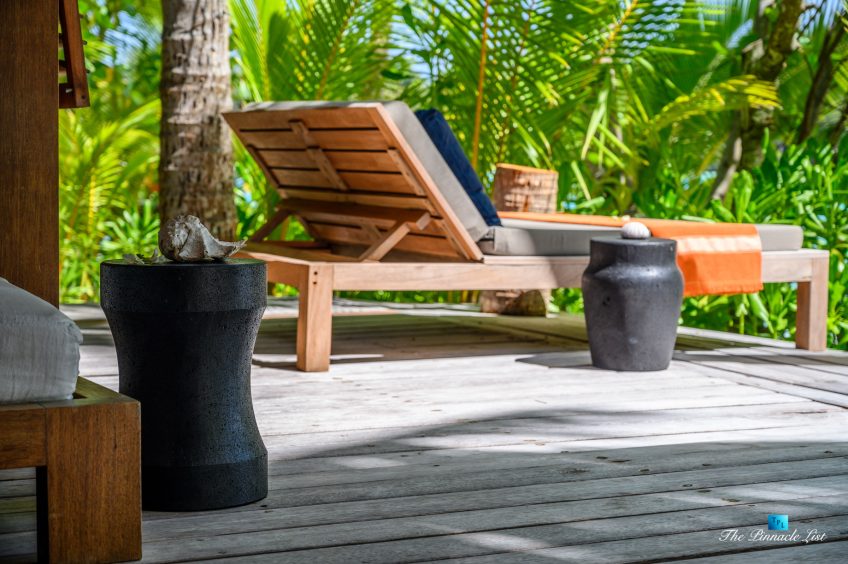 The estate’s crown jewels are two master suites, each sprawling over 2,500 square feet of meticulously designed space. These sanctuaries boast lavish sunken lava stone bathtubs, expansive showers, and bespoke dressing areas, with each window framing the breathtaking views of the lush gardens, pristine beaches, and the majestic main island beyond. The island accommodates guests in unparalleled luxury with 9 exquisite beach bungalows and 2 additional suites, designed to host up to 20 guests in sumptuous comfort.