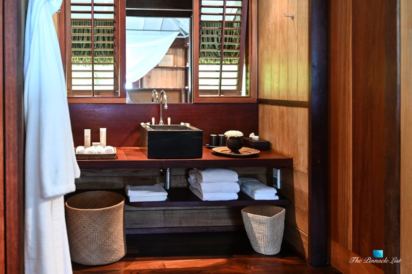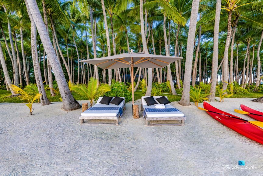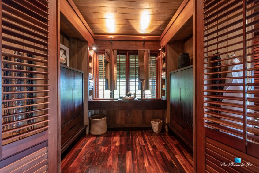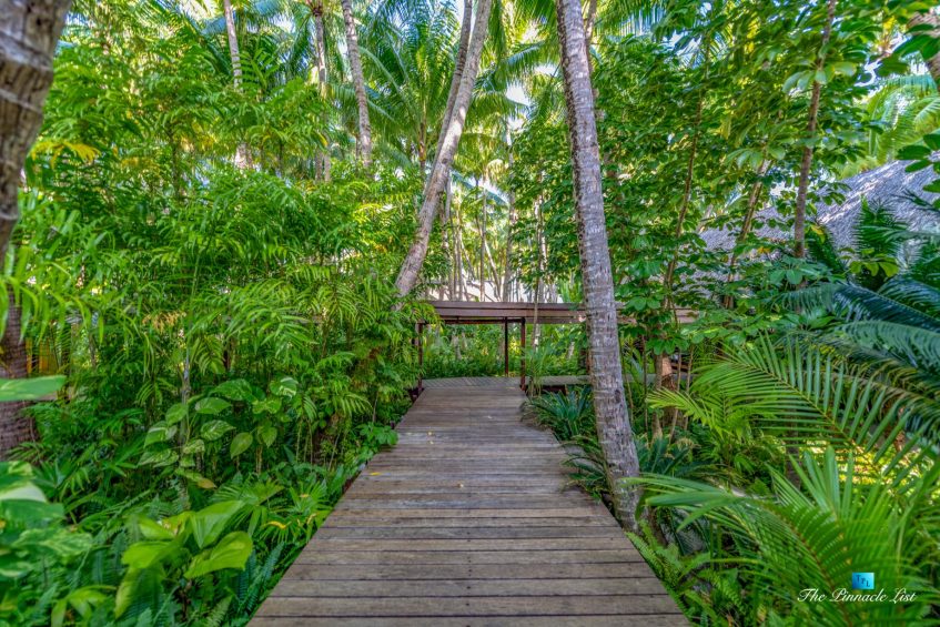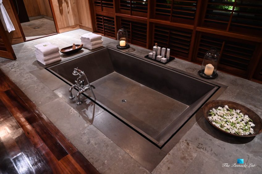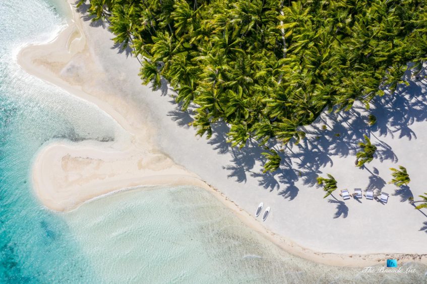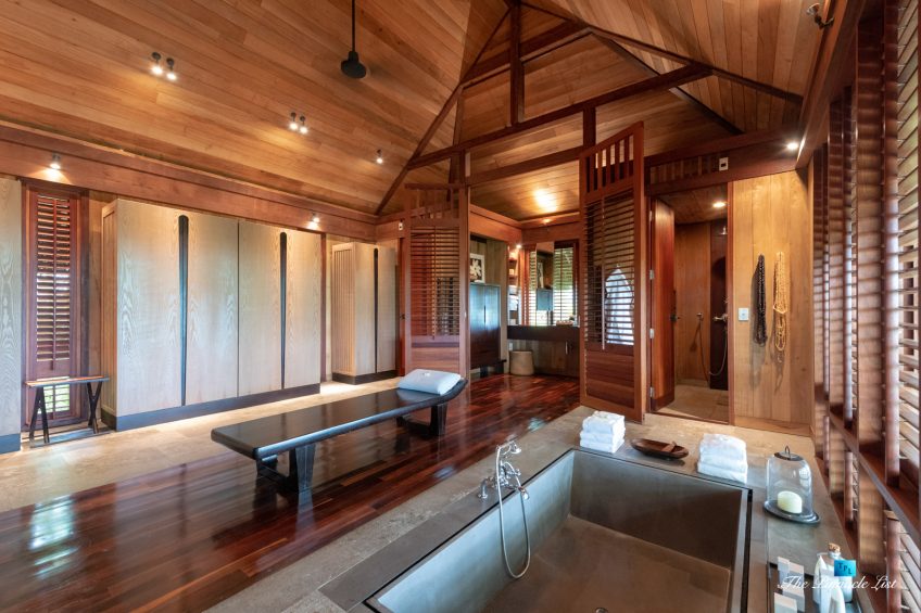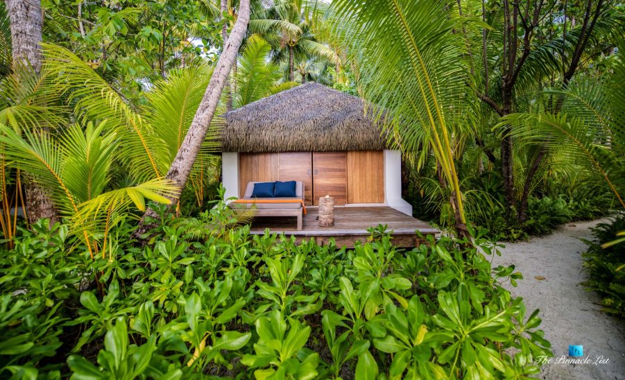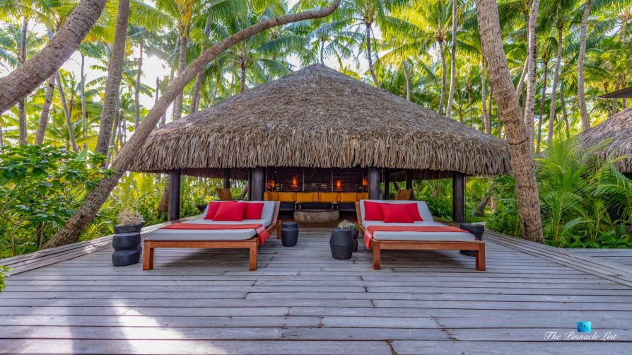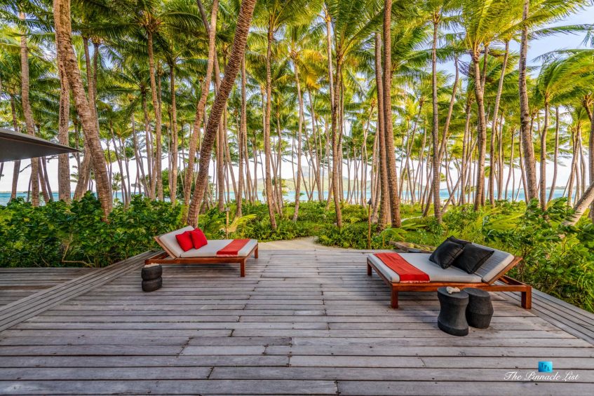 The estate’s crown jewels are two master suites, each sprawling over 2,500 square feet of meticulously designed space. These sanctuaries boast lavish sunken lava stone bathtubs, expansive showers, and bespoke dressing areas, with each window framing the breathtaking views of the lush gardens, pristine beaches, and the majestic main island beyond. The island accommodates guests in unparalleled luxury with 9 exquisite beach bungalows and 2 additional suites, designed to host up to 20 guests in sumptuous comfort.