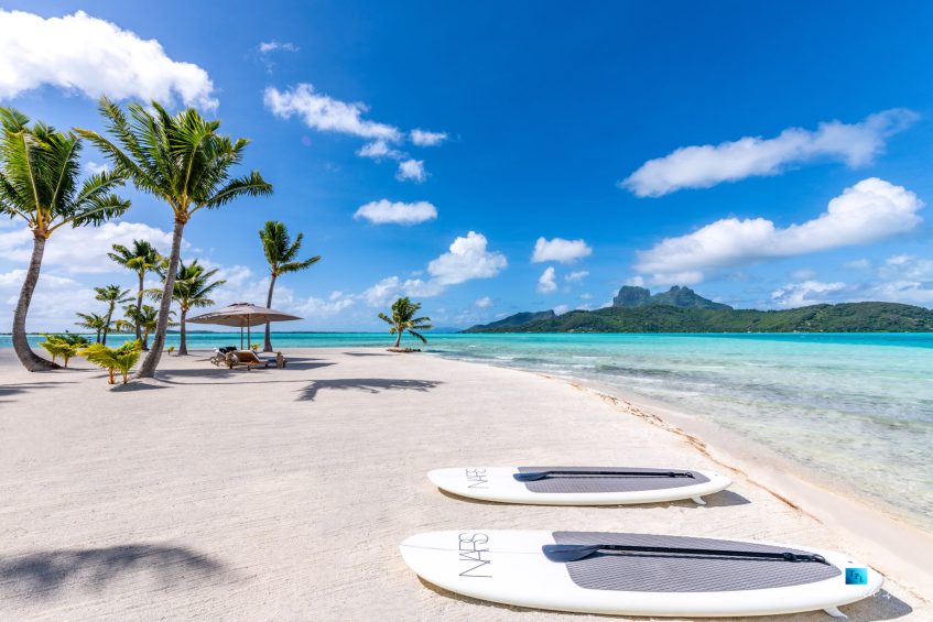Merely minutes from the vibrant heart of Bora Bora, Motu Tane offers an exclusive retreat across approximately 10 acres of the most coveted sandy beaches, verdant tropical landscapes, and abundant coconut groves, all set within a secluded paradise setting. This esteemed property, under the ownership of cosmetics titan François Nars, showcases an array of 22 elegantly designed traditional Polynesian thatched-roof pavilions, known as “fares.”