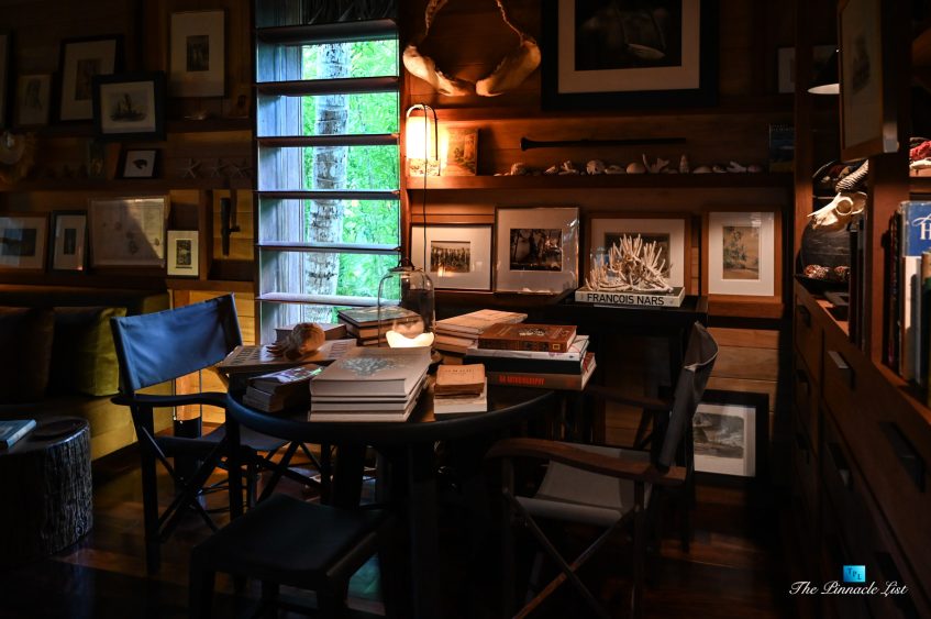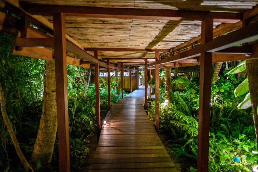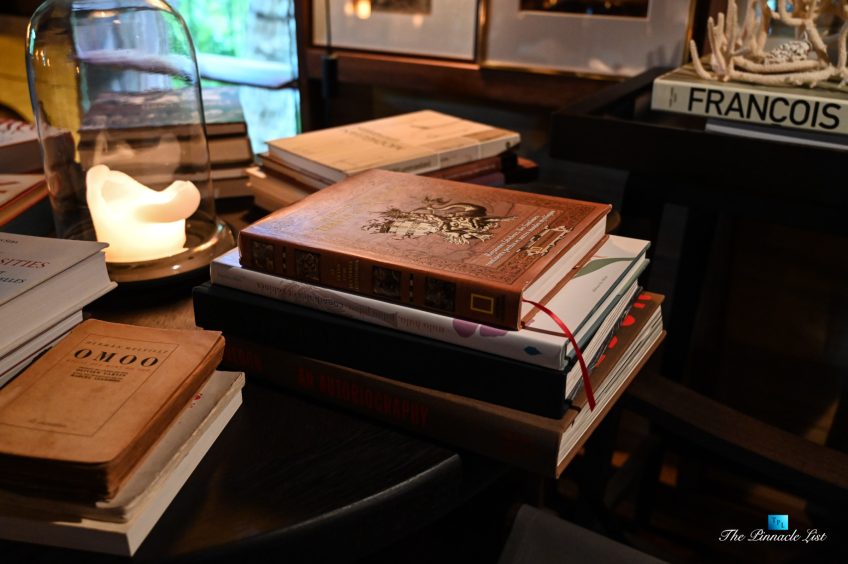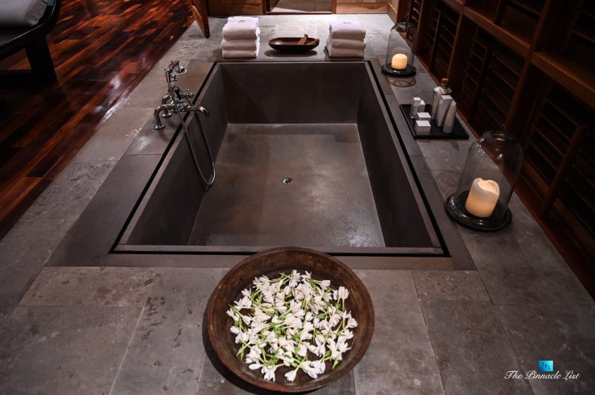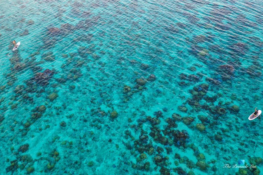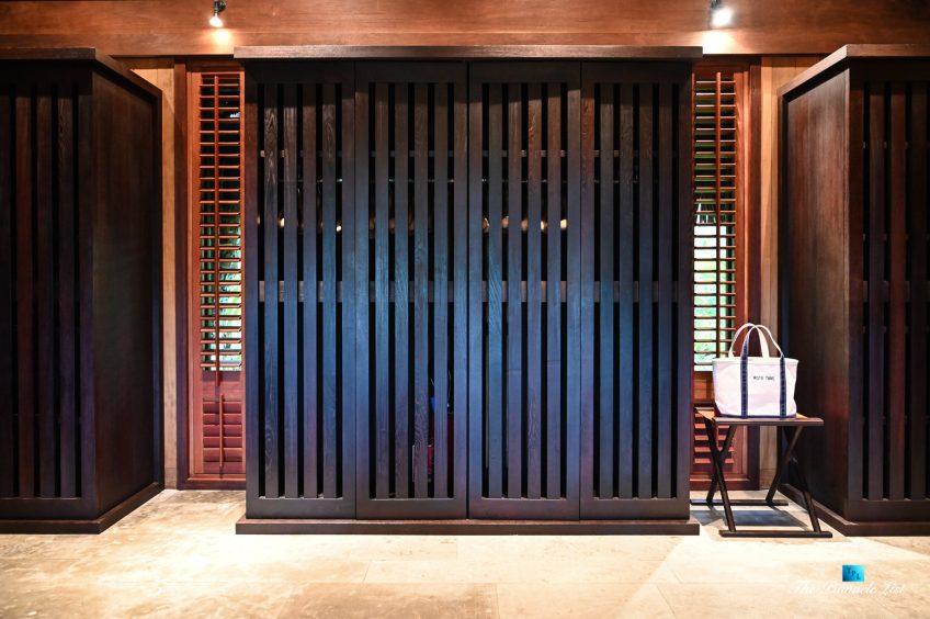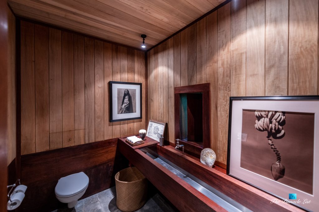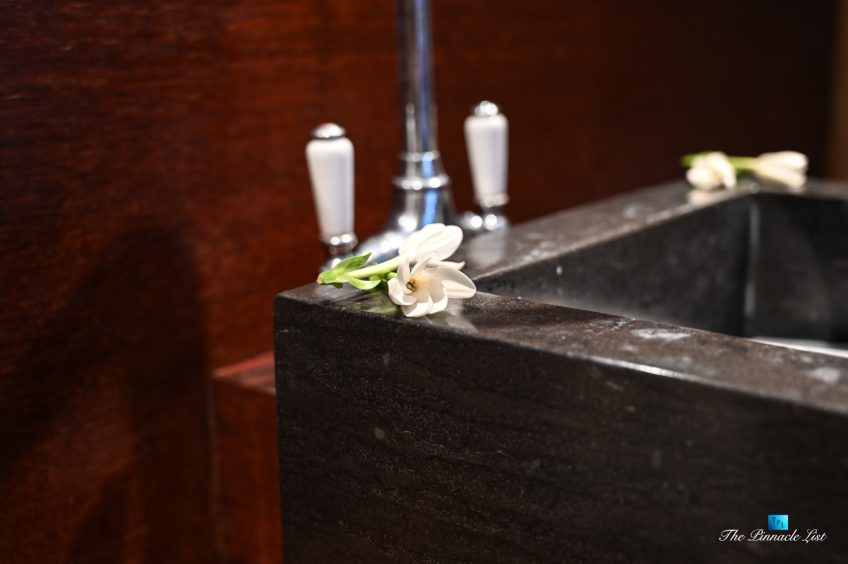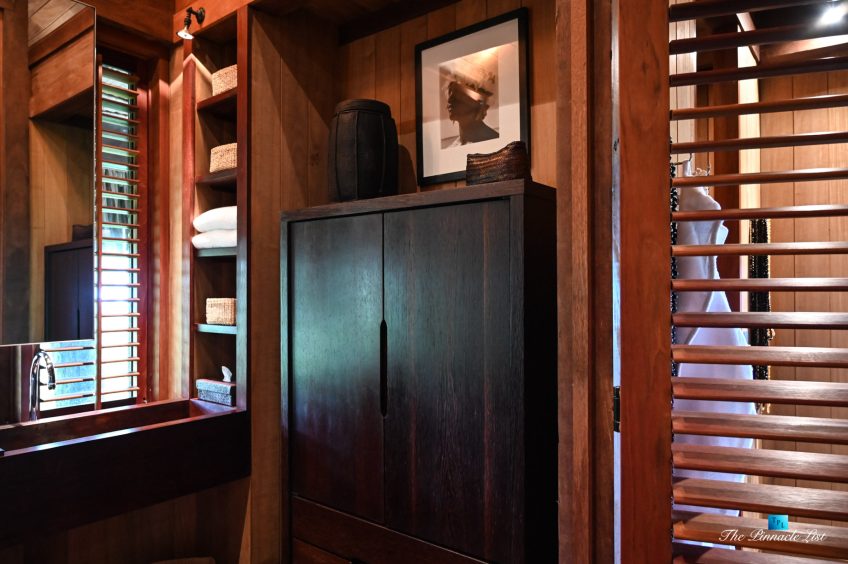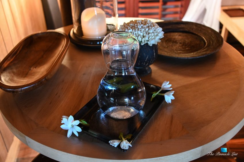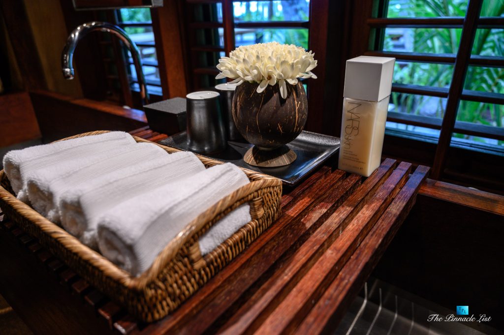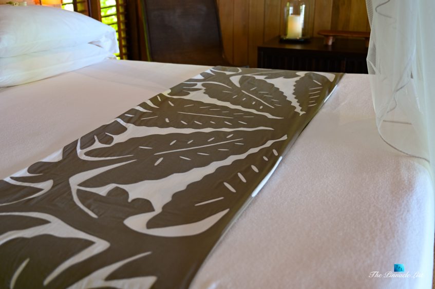 The grand room, an expansive space designed for both elegant gatherings and intimate soirées, is accompanied by a dining area equipped with a discreet wet bar and two large, custom-made tables capable of welcoming up to 36 guests in a setting of unparalleled grace and sophistication. Designed by the world-renowned Christian Liaigre, the interiors are a symphony of exclusive craftsmanship, with furniture custom-made from rare tropical woods and natural fabrics, enhancing the connection between luxury and the serenity of island life. Motorized screens in most bungalows offer the versatility to merge indoor opulence with the natural allure of the outdoors, providing a unique shelter against the elements when necessary.