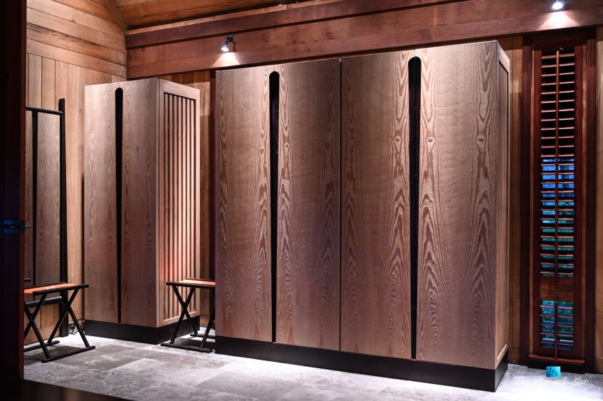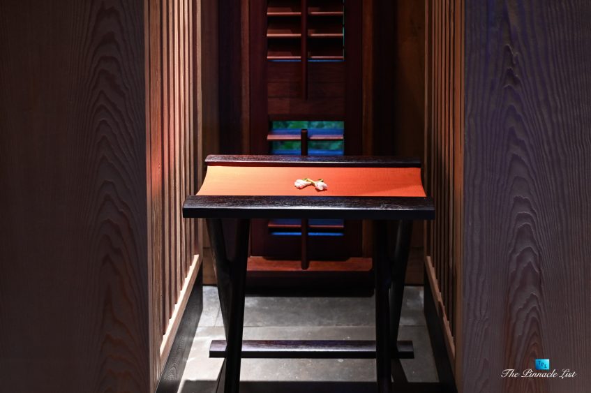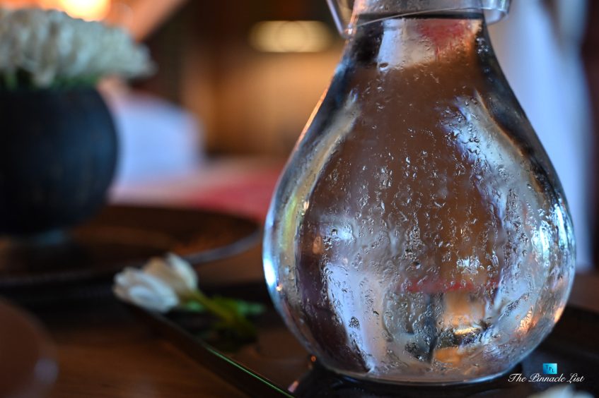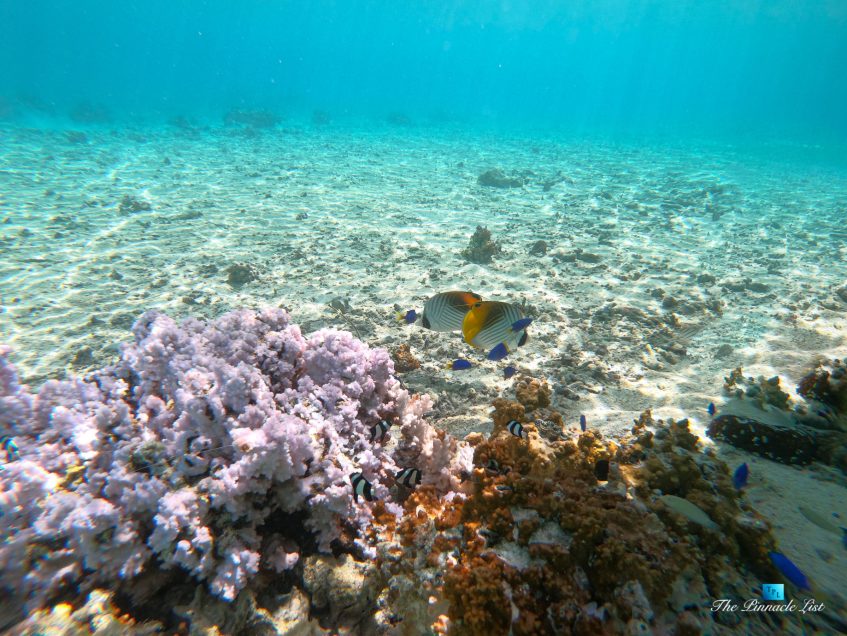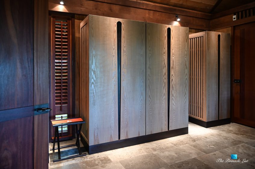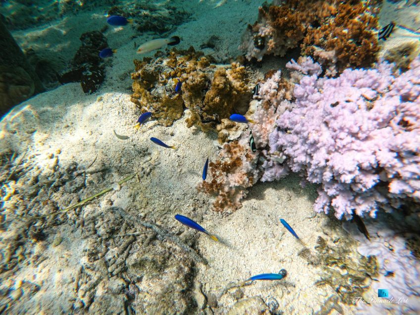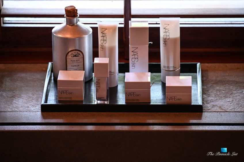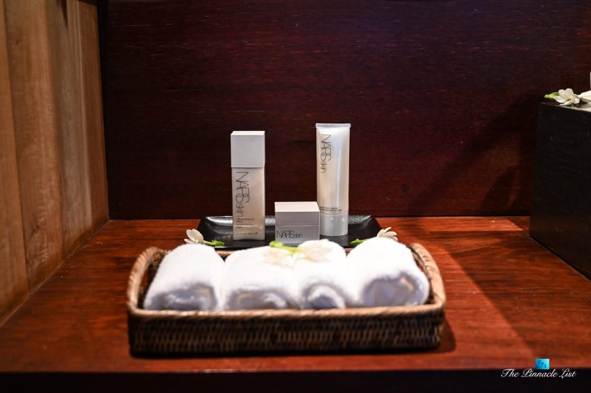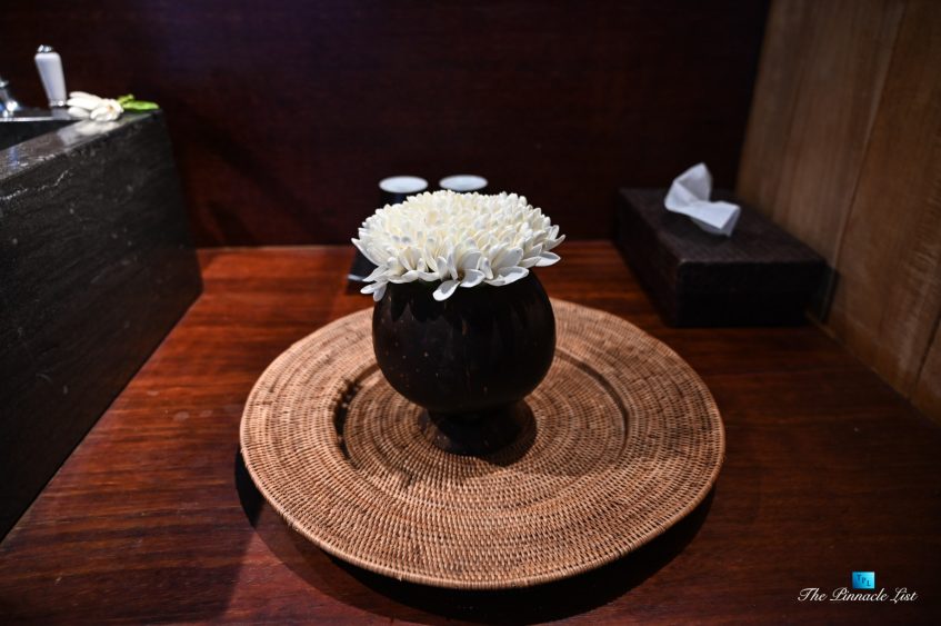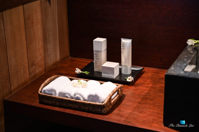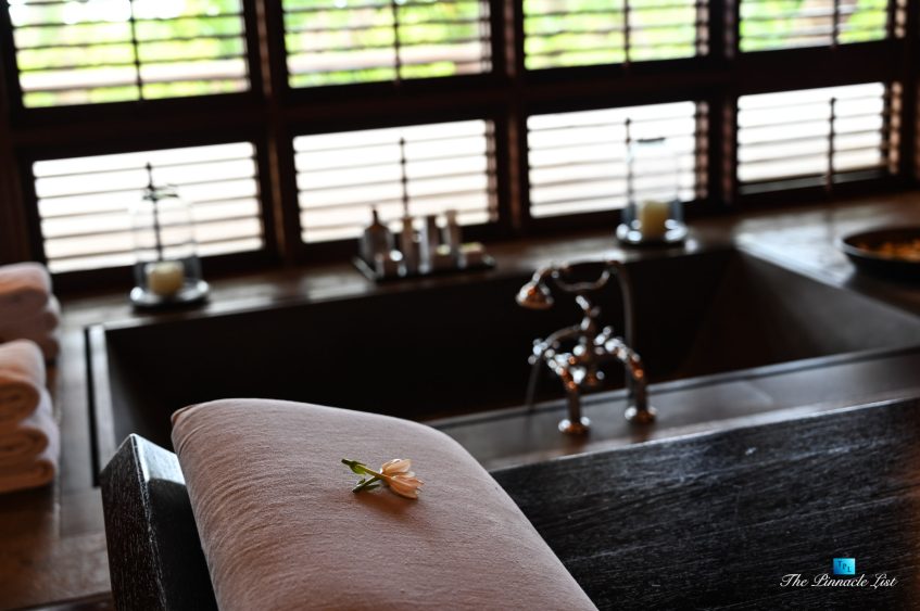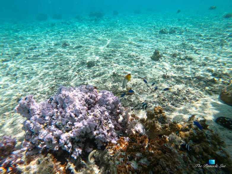 The grand room, an expansive space designed for both elegant gatherings and intimate soirées, is accompanied by a dining area equipped with a discreet wet bar and two large, custom-made tables capable of welcoming up to 36 guests in a setting of unparalleled grace and sophistication. Designed by the world-renowned Christian Liaigre, the interiors are a symphony of exclusive craftsmanship, with furniture custom-made from rare tropical woods and natural fabrics, enhancing the connection between luxury and the serenity of island life. Motorized screens in most bungalows offer the versatility to merge indoor opulence with the natural allure of the outdoors, providing a unique shelter against the elements when necessary.