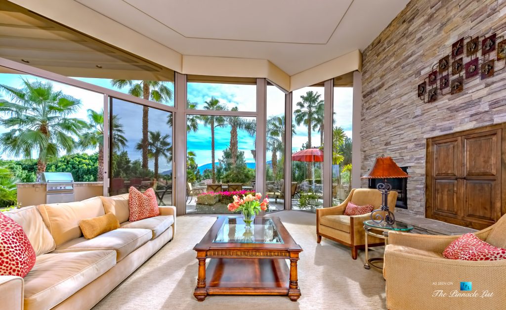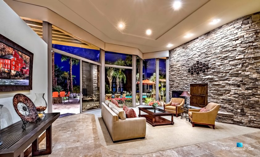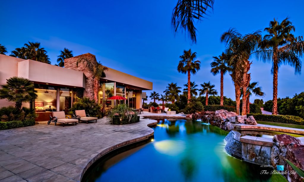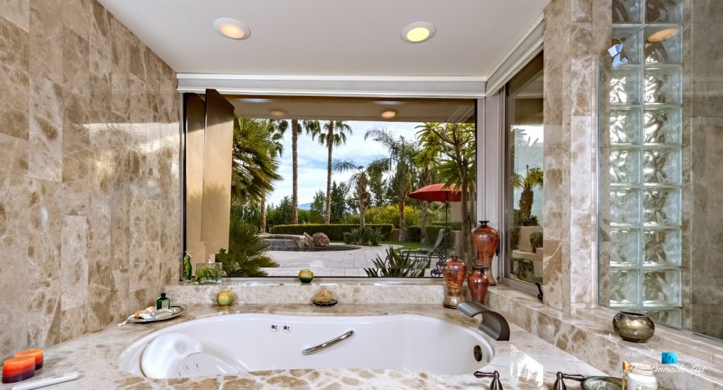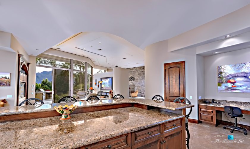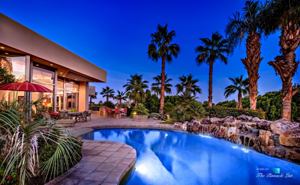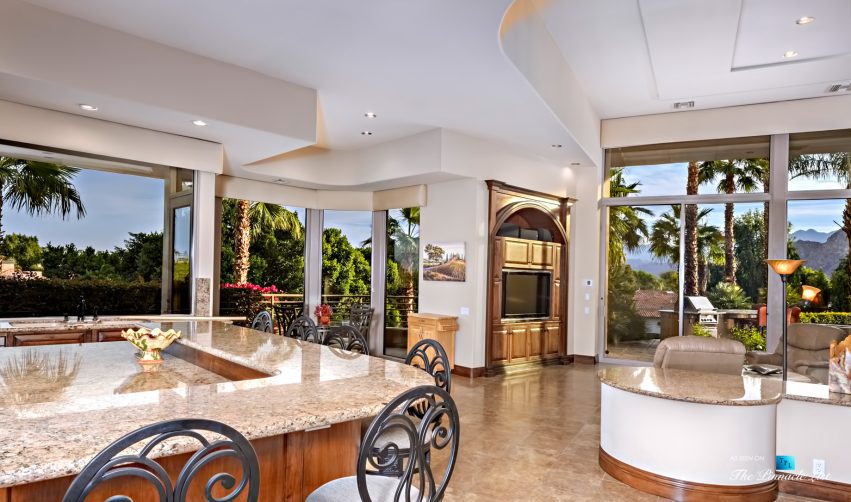 Spectacular hilltop estate at the Estancias in Rancho La Quinta with a rare 1-acre lot elevated above all the surrounding homes with beautiful Southern mountain views and glorious sunsets. 5 bedrooms and four are guest suites with their own private bathrooms. One of the bedrooms is a Casita with its own separate entrance. Super tall ceilings and large walls of glass with light beaming in; feel like the outdoor is inside the home. Master suite has large closets and a dressing area as well as a bathroom and vanity area allowing comfort and space. Large and open chefsโ kitchen with granite counters, stainless steel appliances, breakfast bar, a spectacular kitchen island and it all opens to a large family room and breakfast nook. The private, rear yard has a custom, very large Pebble Tec pool and spa with waterfalls and a tanning shelf. You will feel like you are swimming with the stars at night! A barbecue and fire pit finish off this exquisite outdoor setting.
