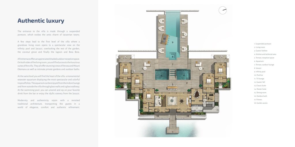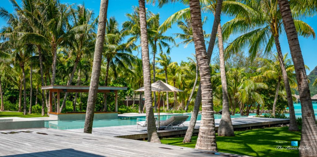 After years of development and construction by visionary designer and builder Guy Parent, this phenomenal estate is now complete and offered for sale, including all custom imported furnishings, and ready for immediate occupancy. Completely unique and never to be duplicated in French Polynesia, the estate offers the most discriminating buyer an unmatched lifestyle in what is considered by many the most beautiful location on Earth. Sited on over 4 acres stretching from the open ocean to the famed Bora Bora lagoon, and a front entrance accessible by a unique private waterway, the breathtaking villa features 7 magnificent suites, a spa, indoor pool, theater, bar, and library and what is at 92,000 gallons the largest private aquarium in the world! Other features include a 74-foot-long infinity pool with swim up bar, a massive sundeck, beach bar, all surrounded by lush gardens and towering palm trees. A haven of peace and beauty like nowhere else on the globe. The separate staff house has 4 bedrooms with individual bathrooms, kitchen and salon and an additional apartment for the manager with two rooms, full bath, laundry room and salon kitchen.