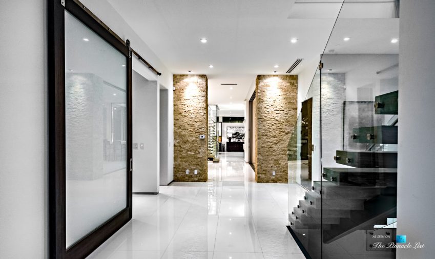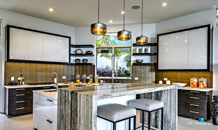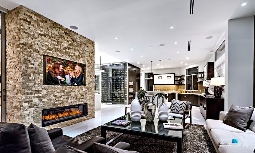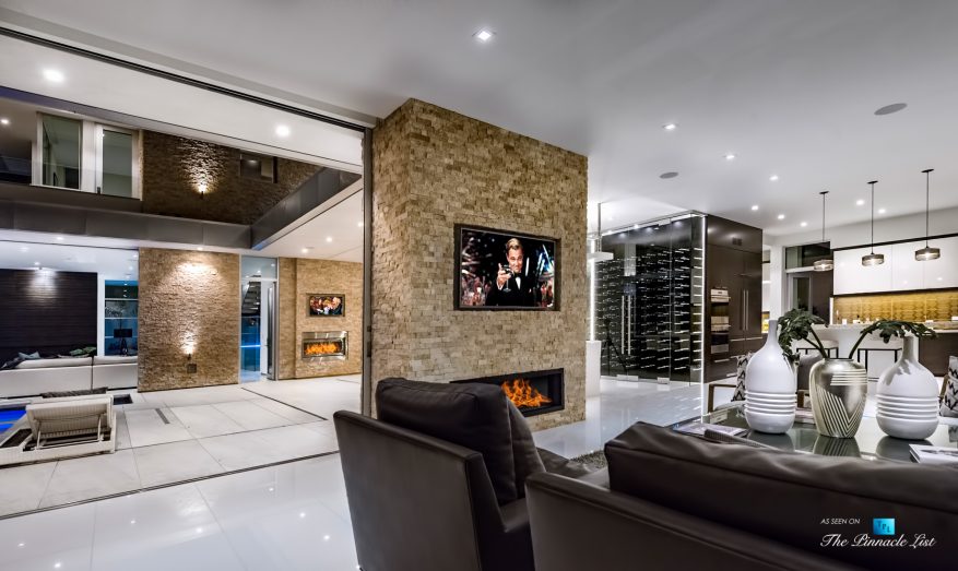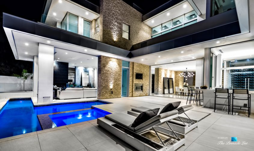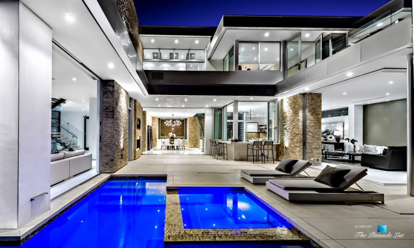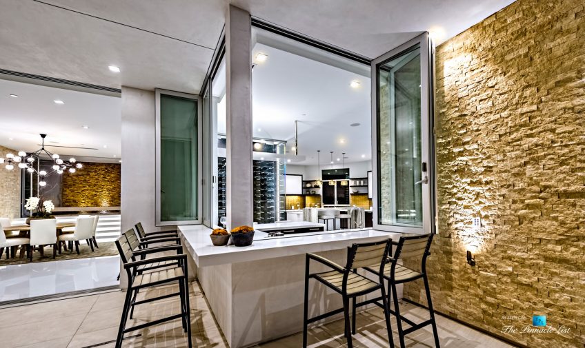 Newly built and set behind gates this striking Architectural home is sited and designed to maximize the spectacular views. A private drive and zen like cascading water features lead to a dramatic entry with soaring spaces and sliding floor to ceiling walls of glass. Unmatched for indoor/outdoor entertaining, with expansive decks, pool, spa and outside dining area. Top of the line finishes throughout. Stunning gourmet kitchen boasts a massive center island, wet bar, breakfast bar and sensational glass wine room. Four ensuite bedrooms on the top level include a gorgeous master suite with soak tub, double sinks, walk in shower and panoramic views. Other features include an office and downstairs theater. 3 car attached garage with additional parking. This is an entertainer’s dream home.