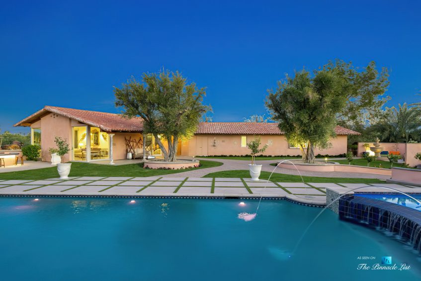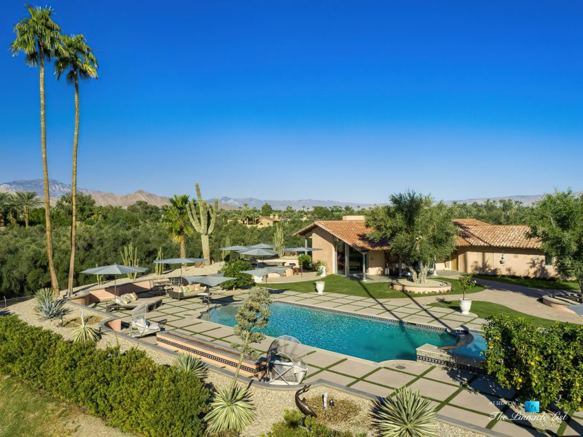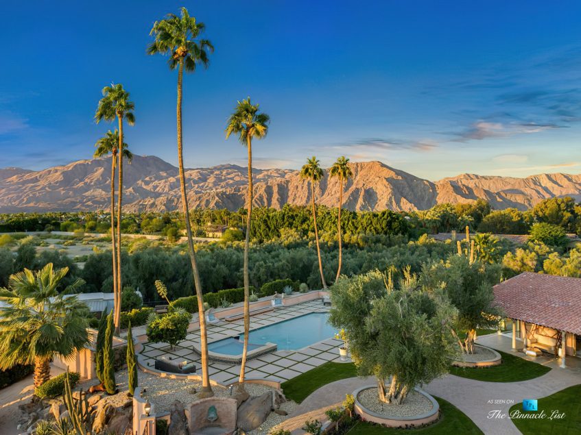 Imagine the transformative experience of setting foot on an idyllic Mediterranean-inspired property that is beyond anything youโve ever dreamt of. A space that respects the need for absolute privacy and offers the serenity that comes with 360-degree views of the most breathtaking elements of nature from every room on the property while providing flexibility to accommodate large gatherings. The ideal space to retreat with access to most luxurious custom amenities imported straight from Europe with comfort and distinctive taste in mind. This was a concept born in the 1950โs by a true visionary who had absolute reverence for nature, perspective, engineering, and love for his native country. Hacienda Giannini was born through the collaboration of the highest authorities in design and planning during the mid-century modern era, and the result is a truly personal, thoughtfully designed European paradise that will transport and inspire you. Upon entering the double gates of this estate, there is a gradual ascension that leads you to the pinnacle of the pad elevation that sits three-levels high, immediately exposing the notable green sea of a 330-olive tree orchard that shields the property from the rest of the world. The height of the pad also provides majestic views of the Santa Rosa, San Jacinto and San Bernardino Mountains from every room in the Main Villa. The entire property is surrounded, up close and personal with a large variety of signature desert flora such as Date and Bermuda Palms and mature citrus trees, and the added bonus of a rare five arm saguaro. A true display of visual splendor. This 9.25-acre ranch is home to the Main Villa, Guest Casita and Ranch House which offer different layouts yet are designed to flow seamlessly throughout the property. Much like in Europe, their exteriors display a carefully selected marmorino plaster shade of terracotta to show the progressive shift in color shades based on the time of day and where the Valleyโs sun reflects against it. The inspiration and vision behind these collective properties was the harmonious convergence of two distinct styles, European Hacienda and Mid-Century Modern, which elevates the overall look and feel of each space.