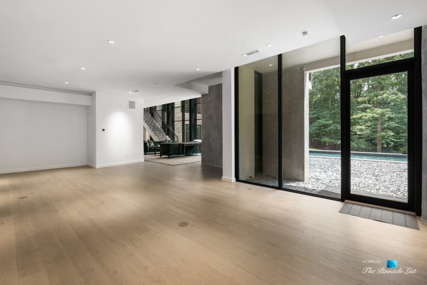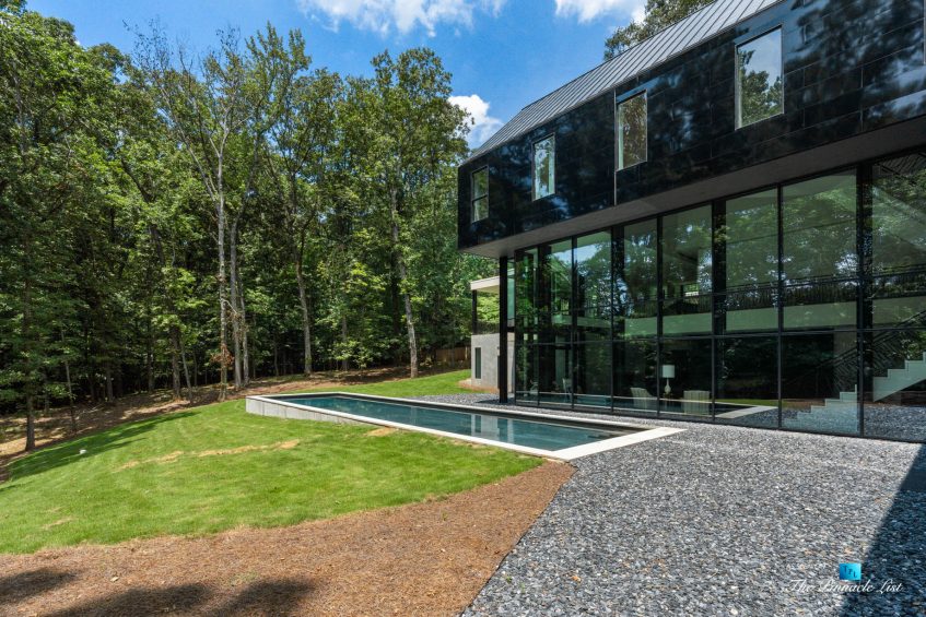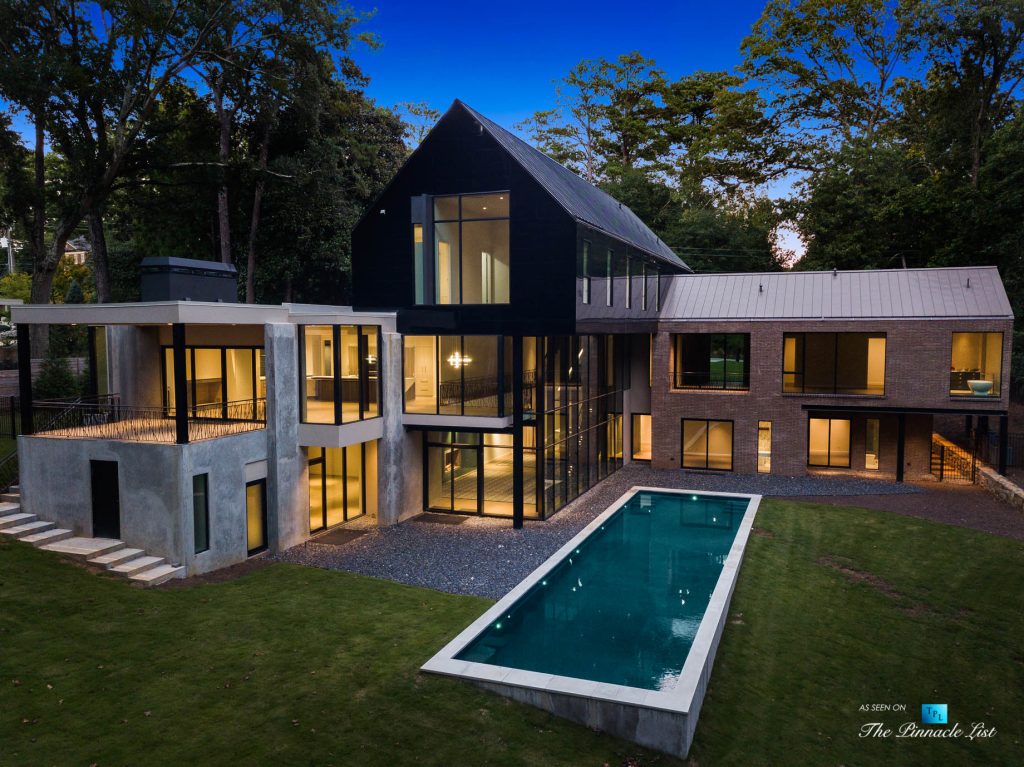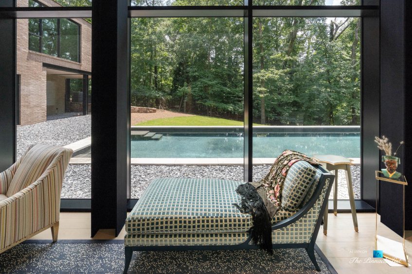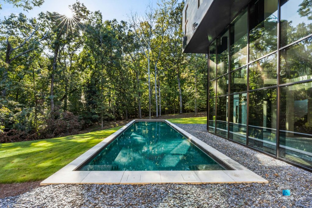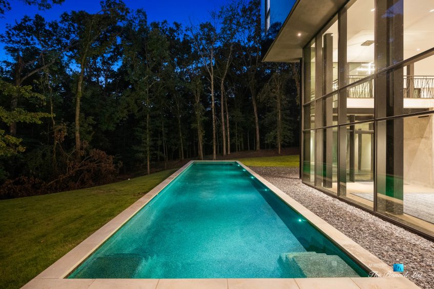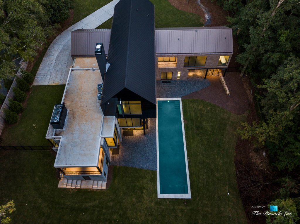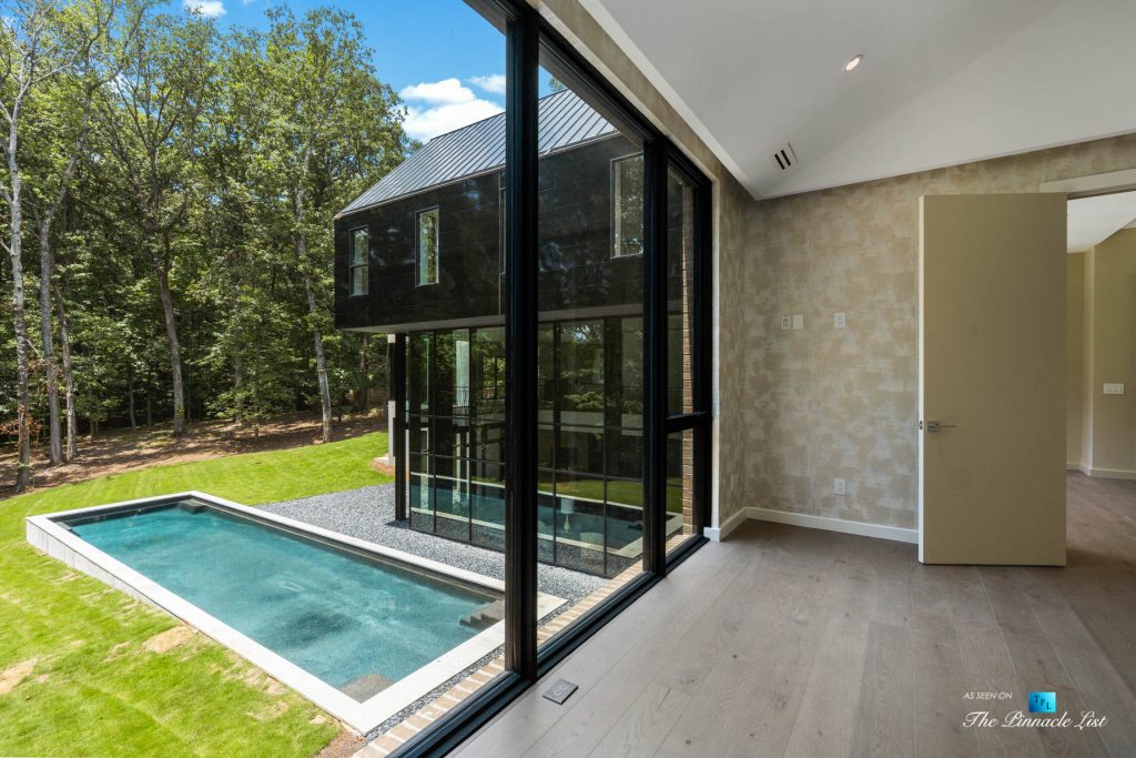 This New Construction smart home modern residence is designed to maximize the incredible views of the property and is perfectly sited around a 65 foot pool on a private, flat 1.1 acre lot in Buckhead. Inside as the sun reflects off of the pool, reflections of light move across the ceiling throughout the day through the 3 story glass curtain wall by Reynaers (Belgium) by Expert Window and door. The kitchen, designed by Design Galleria is exceptional with Temmer marble counters and a hidden walk in pantry. Steam Wolf oven and Sub Zero complement the custom cabinetry. The main entrance and lower doors are pivoting by La Cantina. Exterior brick is Meridian brick and the black reflective wall panels, the first in the US are Nichiha Miraia panels by Legendary Exteriors. The plumbing fixtures are by Porcelanosa and Dornbracht. The finish level is excellent and a collaboration with Harrison Design Architects. The main living room space has a full bar, game room with fireplace, 2 bedrooms/bathrooms that open out to the pool. The master bedroom suite is on the main level with study and separate dressing rooms. The upstairs features 2 bedrooms/baths and an additional laundry room. This home is energy efficient and completely wired for whole house automation. Elevator shaft and 3 car garage near the kitchen.