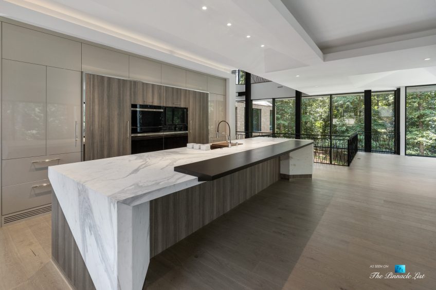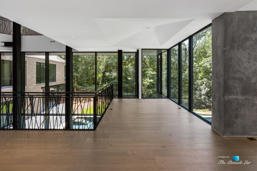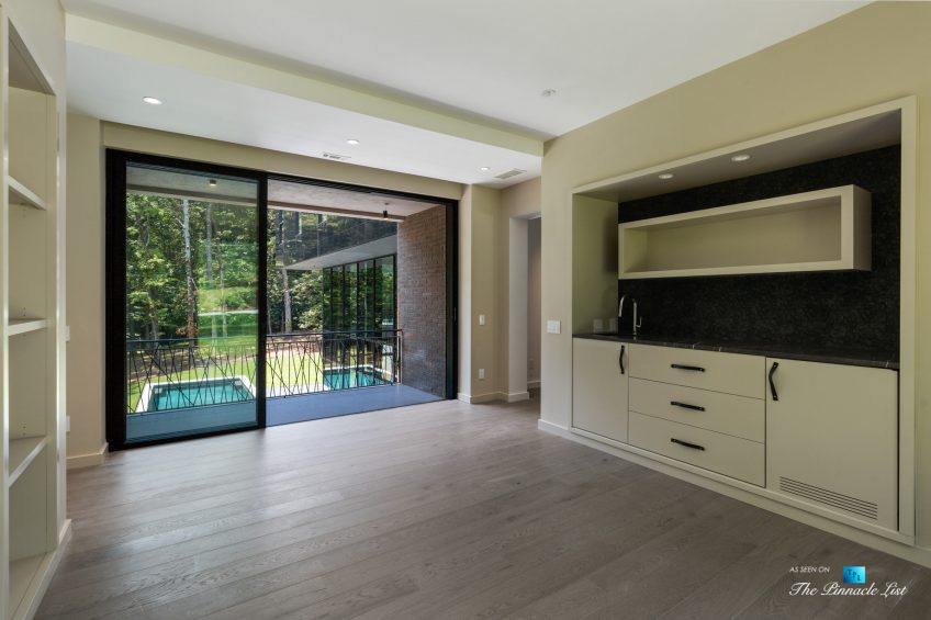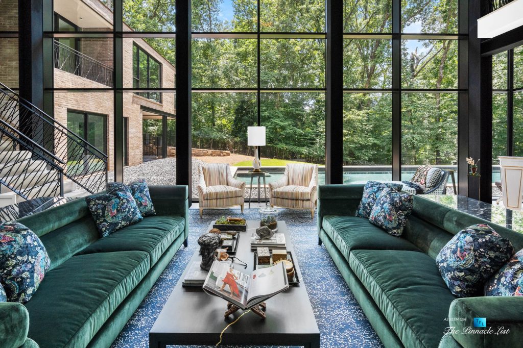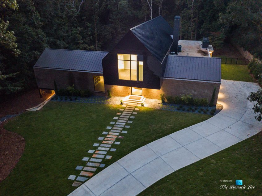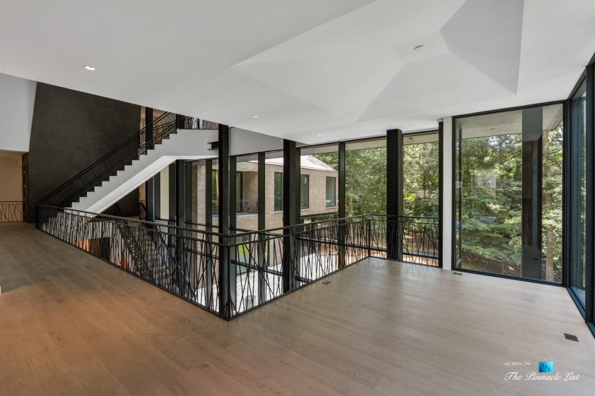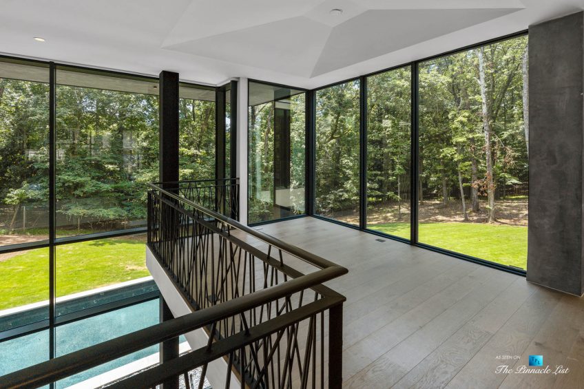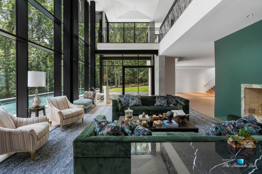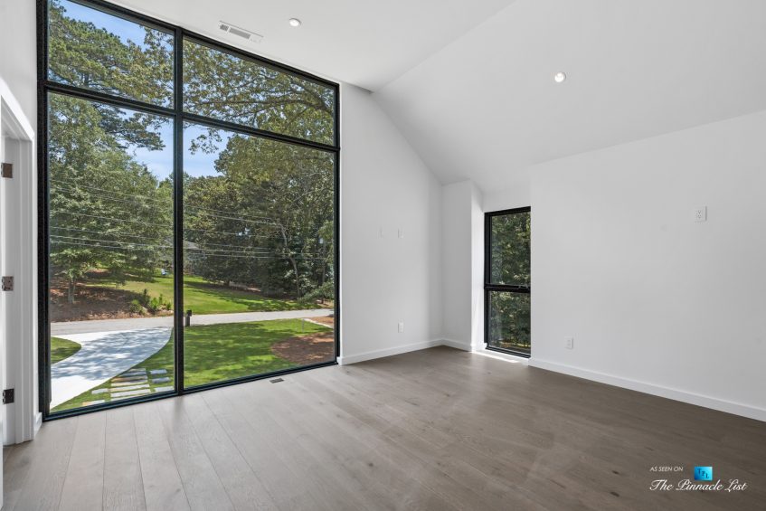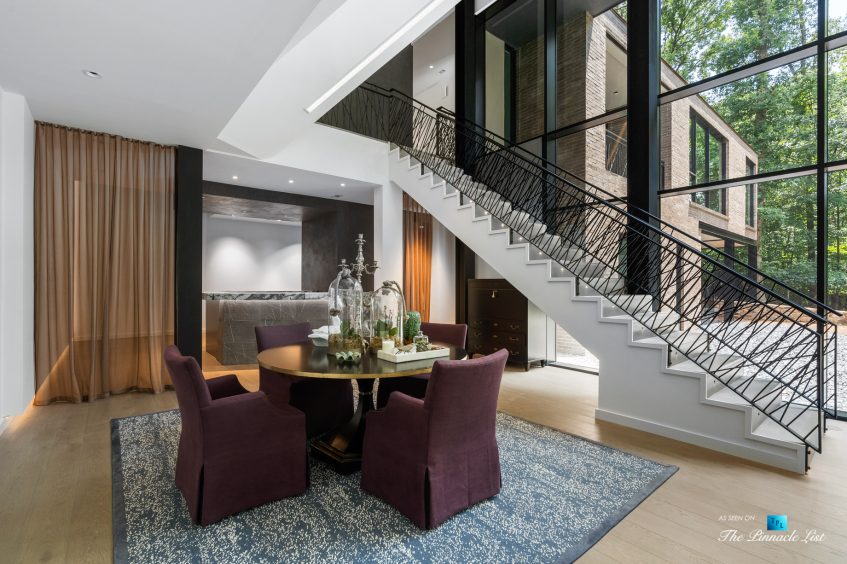 This New Construction smart home modern residence is designed to maximize the incredible views of the property and is perfectly sited around a 65 foot pool on a private, flat 1.1 acre lot in Buckhead. Inside as the sun reflects off of the pool, reflections of light move across the ceiling throughout the day through the 3 story glass curtain wall by Reynaers (Belgium) by Expert Window and door. The kitchen, designed by Design Galleria is exceptional with Temmer marble counters and a hidden walk in pantry. Steam Wolf oven and Sub Zero complement the custom cabinetry. The main entrance and lower doors are pivoting by La Cantina. Exterior brick is Meridian brick and the black reflective wall panels, the first in the US are Nichiha Miraia panels by Legendary Exteriors. The plumbing fixtures are by Porcelanosa and Dornbracht. The finish level is excellent and a collaboration with Harrison Design Architects. The main living room space has a full bar, game room with fireplace, 2 bedrooms/bathrooms that open out to the pool. The master bedroom suite is on the main level with study and separate dressing rooms. The upstairs features 2 bedrooms/baths and an additional laundry room. This home is energy efficient and completely wired for whole house automation. Elevator shaft and 3 car garage near the kitchen.