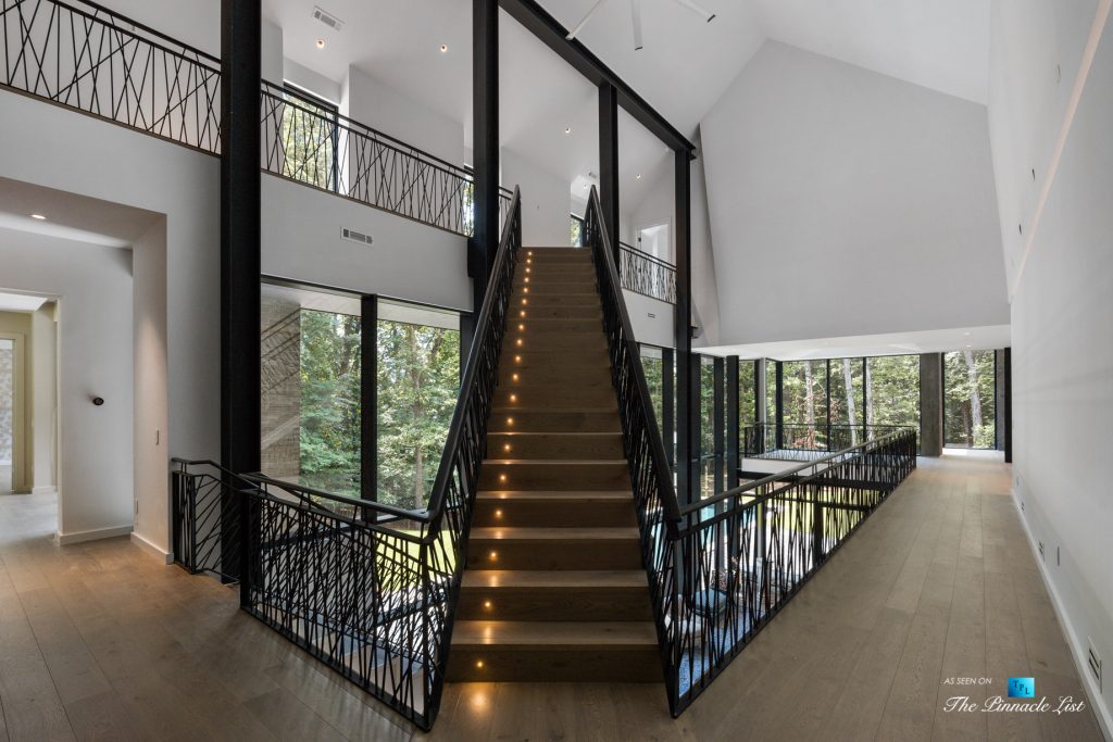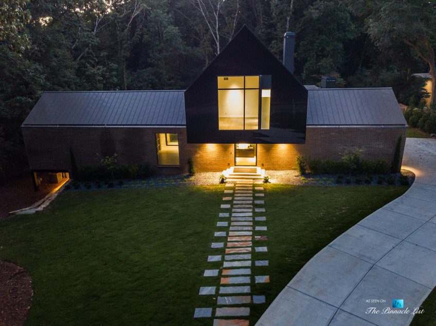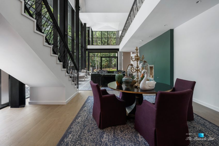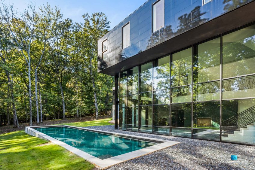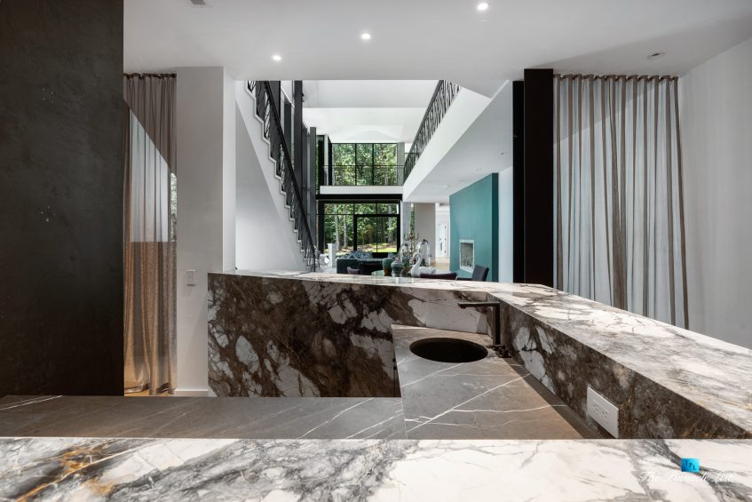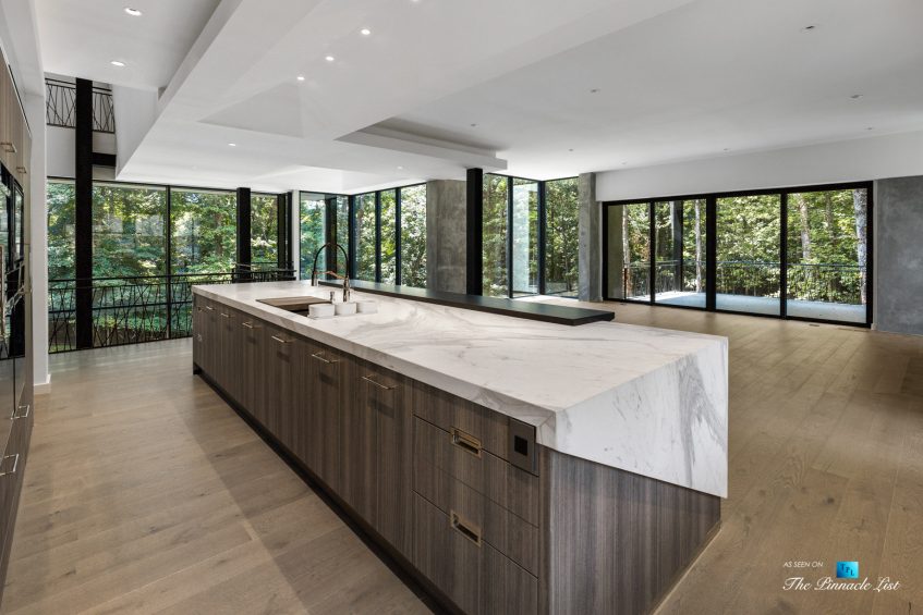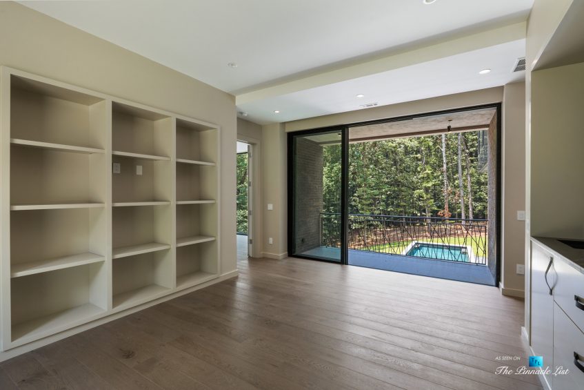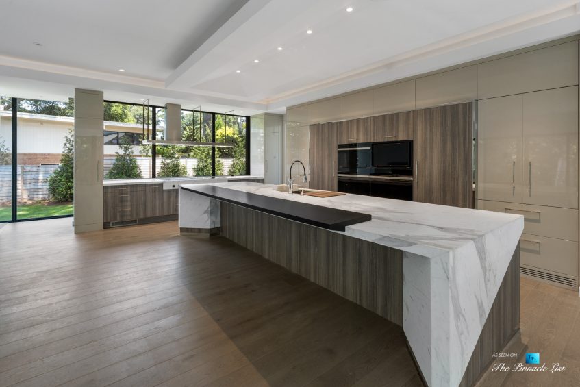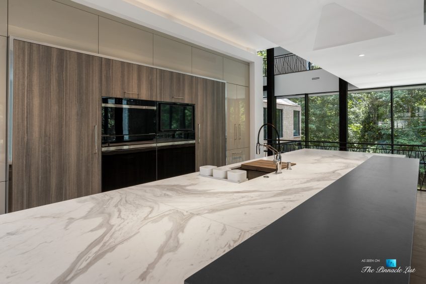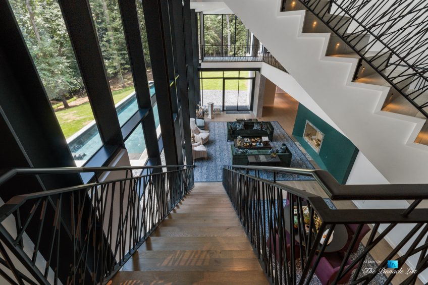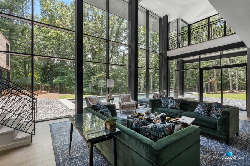 This New Construction smart home modern residence is designed to maximize the incredible views of the property and is perfectly sited around a 65 foot pool on a private, flat 1.1 acre lot in Buckhead. Inside as the sun reflects off of the pool, reflections of light move across the ceiling throughout the day through the 3 story glass curtain wall by Reynaers (Belgium) by Expert Window and door. The kitchen, designed by Design Galleria is exceptional with Temmer marble counters and a hidden walk in pantry. Steam Wolf oven and Sub Zero complement the custom cabinetry. The main entrance and lower doors are pivoting by La Cantina. Exterior brick is Meridian brick and the black reflective wall panels, the first in the US are Nichiha Miraia panels by Legendary Exteriors. The plumbing fixtures are by Porcelanosa and Dornbracht. The finish level is excellent and a collaboration with Harrison Design Architects. The main living room space has a full bar, game room with fireplace, 2 bedrooms/bathrooms that open out to the pool. The master bedroom suite is on the main level with study and separate dressing rooms. The upstairs features 2 bedrooms/baths and an additional laundry room. This home is energy efficient and completely wired for whole house automation. Elevator shaft and 3 car garage near the kitchen.