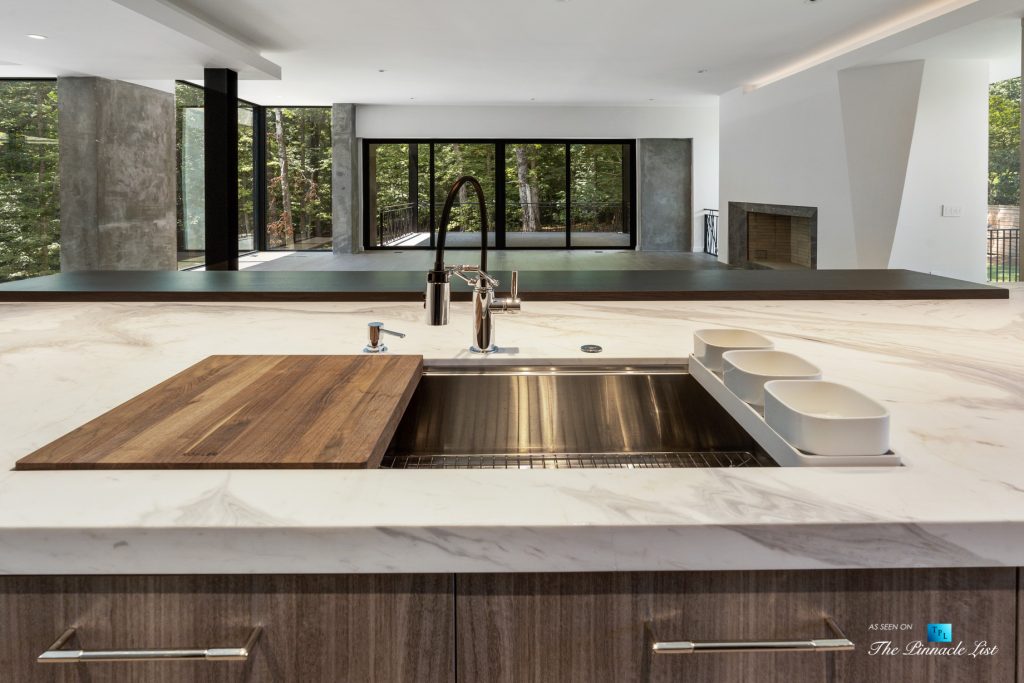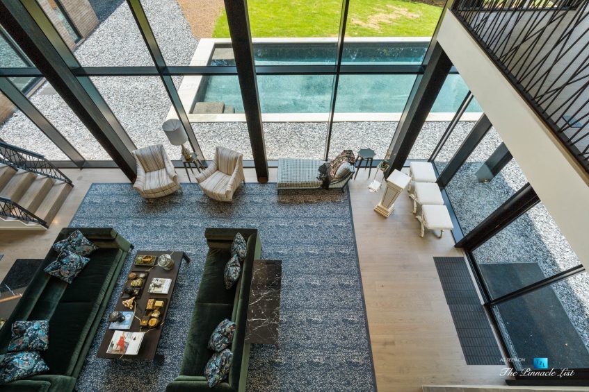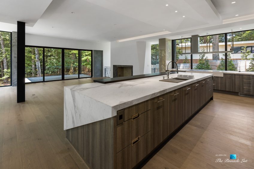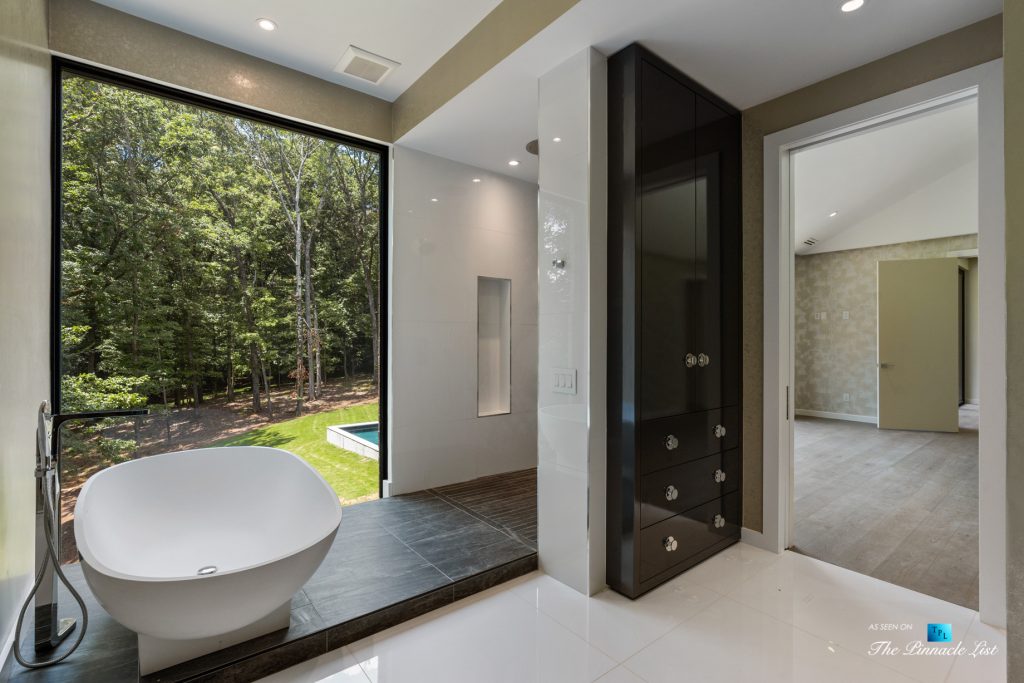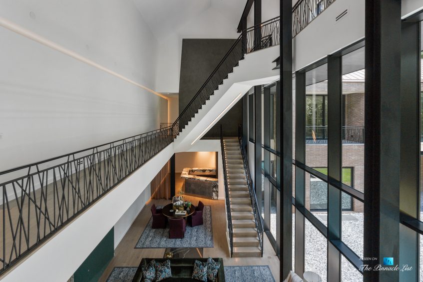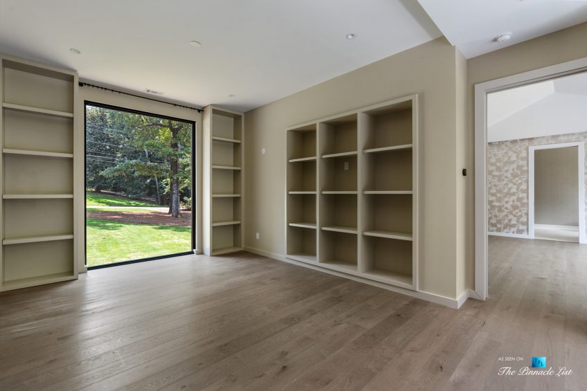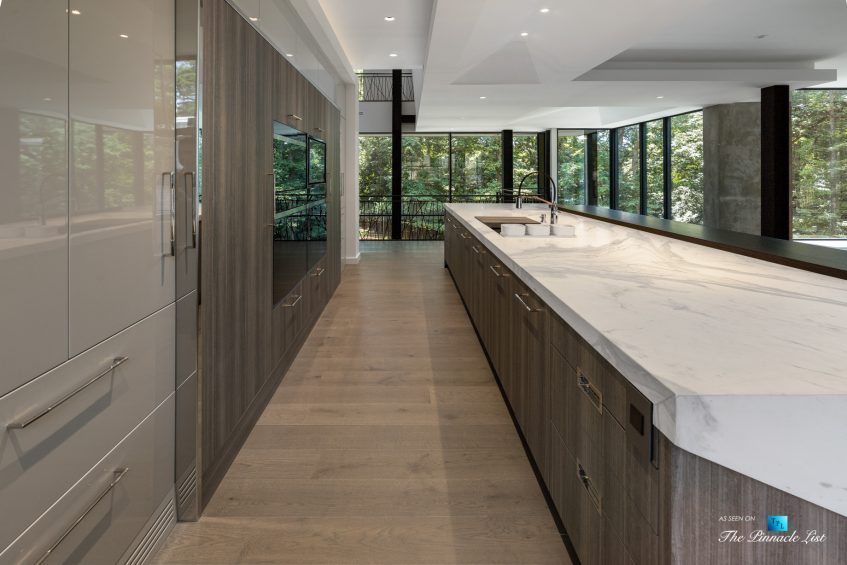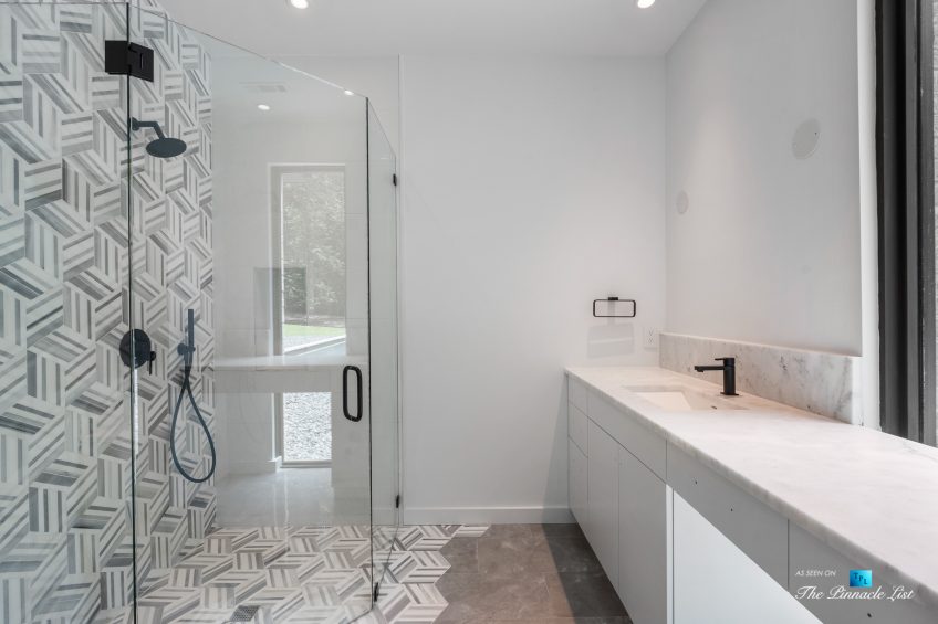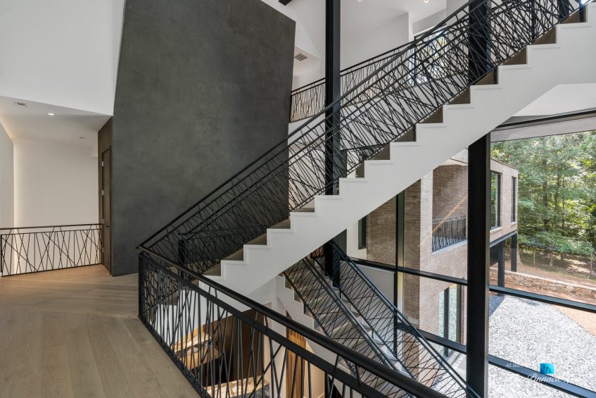 This New Construction smart home modern residence is designed to maximize the incredible views of the property and is perfectly sited around a 65 foot pool on a private, flat 1.1 acre lot in Buckhead. Inside as the sun reflects off of the pool, reflections of light move across the ceiling throughout the day through the 3 story glass curtain wall by Reynaers (Belgium) by Expert Window and door. The kitchen, designed by Design Galleria is exceptional with Temmer marble counters and a hidden walk in pantry. Steam Wolf oven and Sub Zero complement the custom cabinetry. The main entrance and lower doors are pivoting by La Cantina. Exterior brick is Meridian brick and the black reflective wall panels, the first in the US are Nichiha Miraia panels by Legendary Exteriors. The plumbing fixtures are by Porcelanosa and Dornbracht. The finish level is excellent and a collaboration with Harrison Design Architects. The main living room space has a full bar, game room with fireplace, 2 bedrooms/bathrooms that open out to the pool. The master bedroom suite is on the main level with study and separate dressing rooms. The upstairs features 2 bedrooms/baths and an additional laundry room. This home is energy efficient and completely wired for whole house automation. Elevator shaft and 3 car garage near the kitchen.