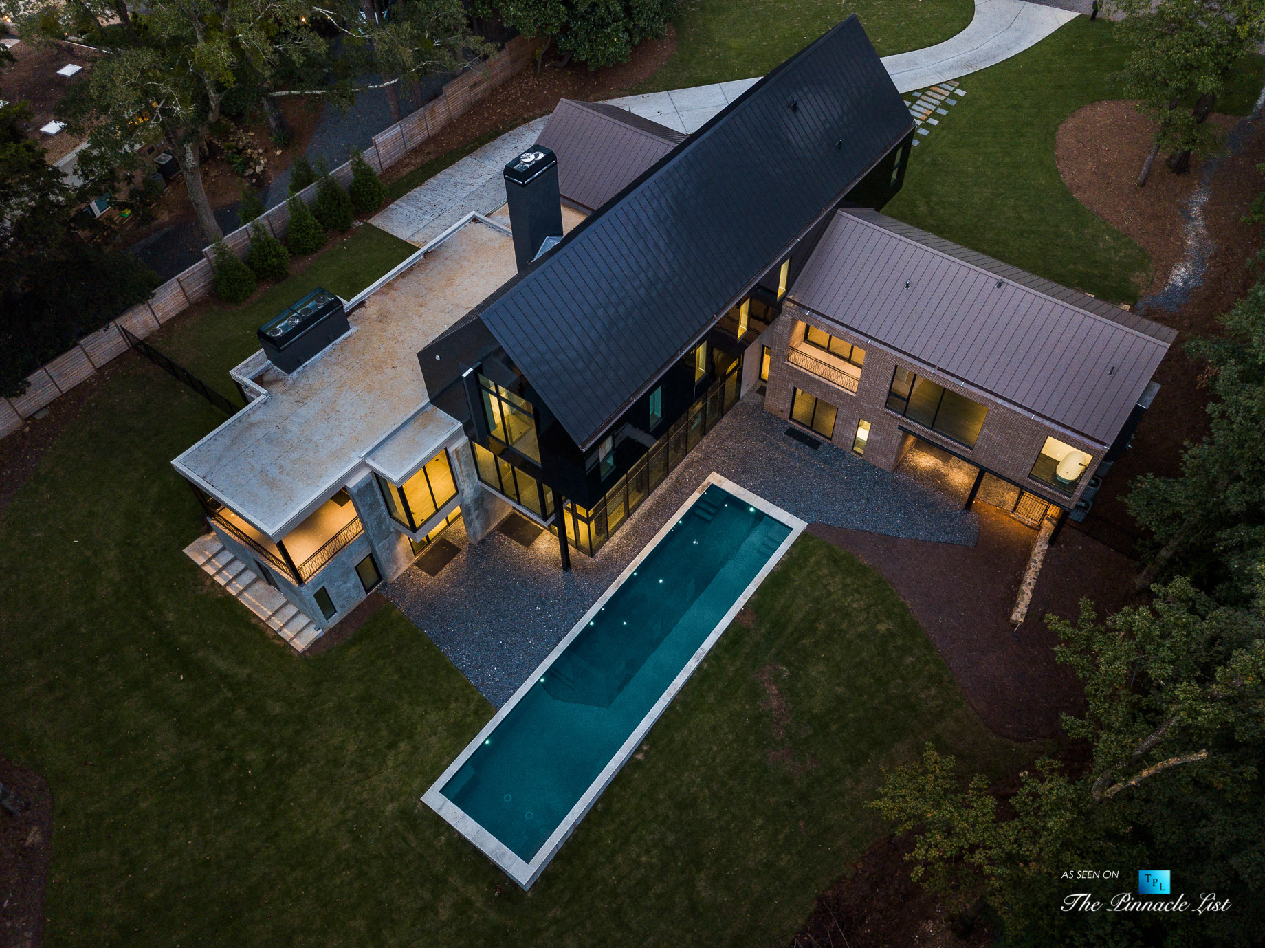 2716 Ridgewood Rd NW, Atlanta, GA, USA – Drone Aerial Night Front House Exterior View – Luxury Real Estate – Modern Contemporary Buckhead Home – The Pinnacle List