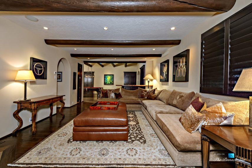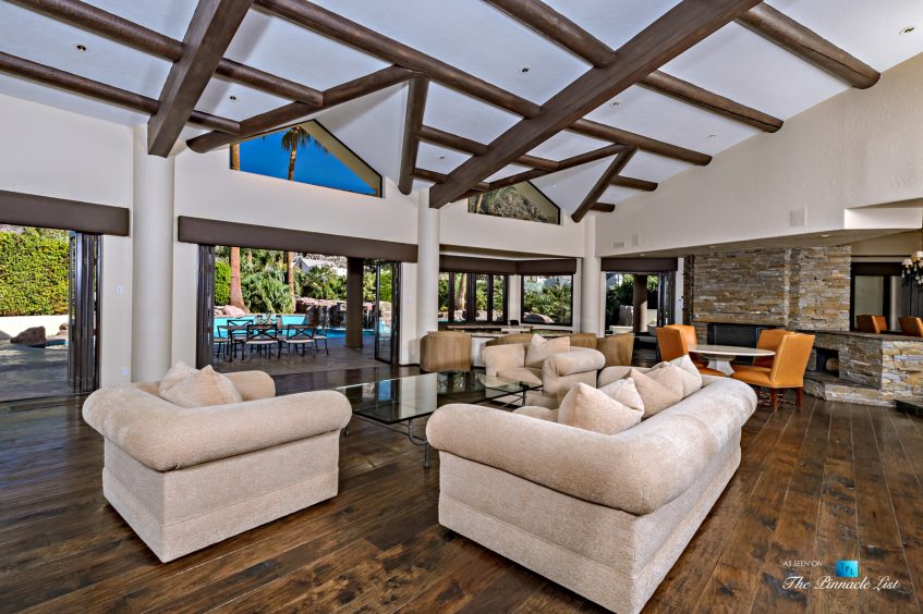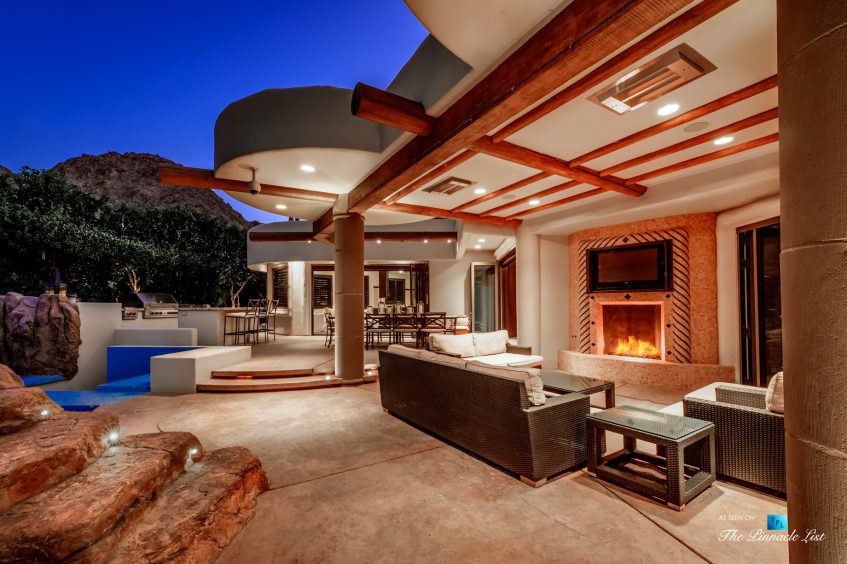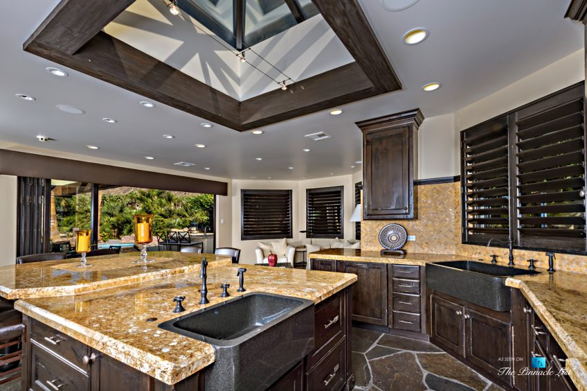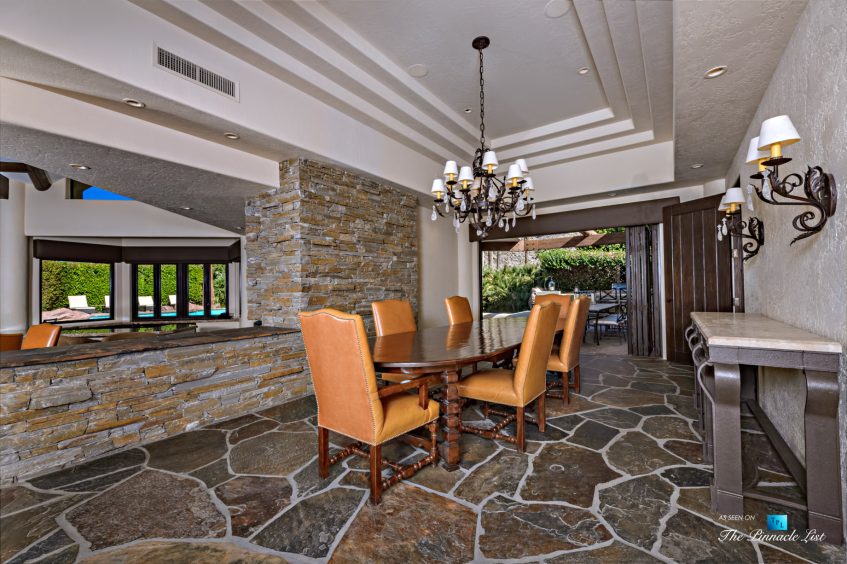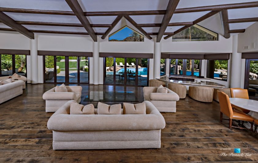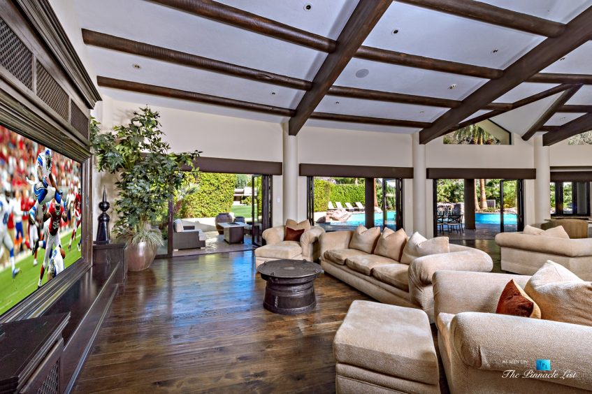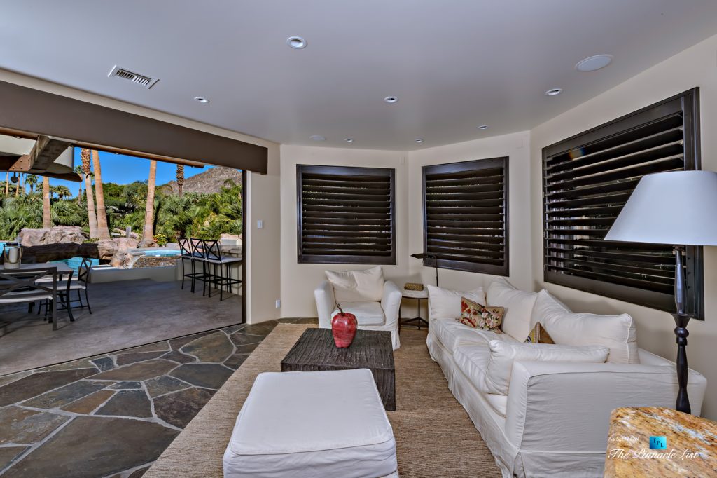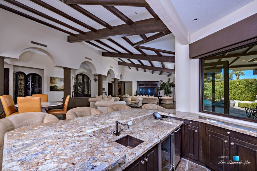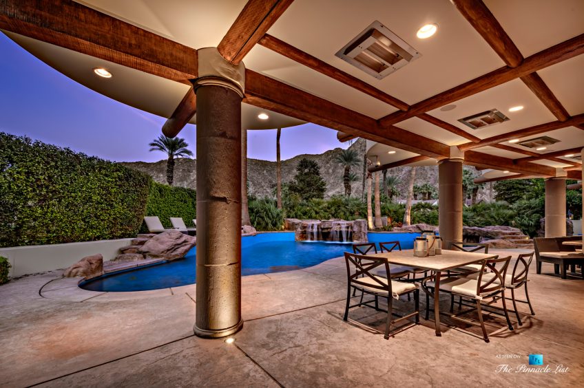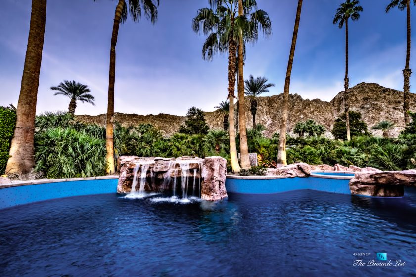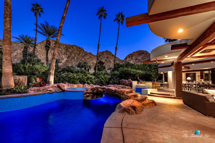 No expense has been spared inside this impressive technologically savvy smart Indian Wells contemporary Mediterranean fusion luxury home. Featuring a great room with fireplace and sit-down bar, formal dining room, wine cellar, and gourmet kitchen with morning room, beautiful lounge with billiard room, sports bar and family room. Relax at your own 5-star luxury pool with waterfalls, a grotto, swim up bar, separate spa, and top of the line outdoor barbeque. Extensive exterior patios include multiple dining areas, fireplace, and media. Featured in the residence are two separate master suites with private jacuzzi tubs and saunas. Three additional bedrooms include private baths. Marble and stone throughout with recessed lighting and incredible fixtures with a stunning Moroccan themed family room adjacent to cozy media room and billiards area. Enjoy an exercise room with equipment and a 500-bottle temperature-controlled wine cellar as well as a separate office/study. Furnishings are negotiable.
