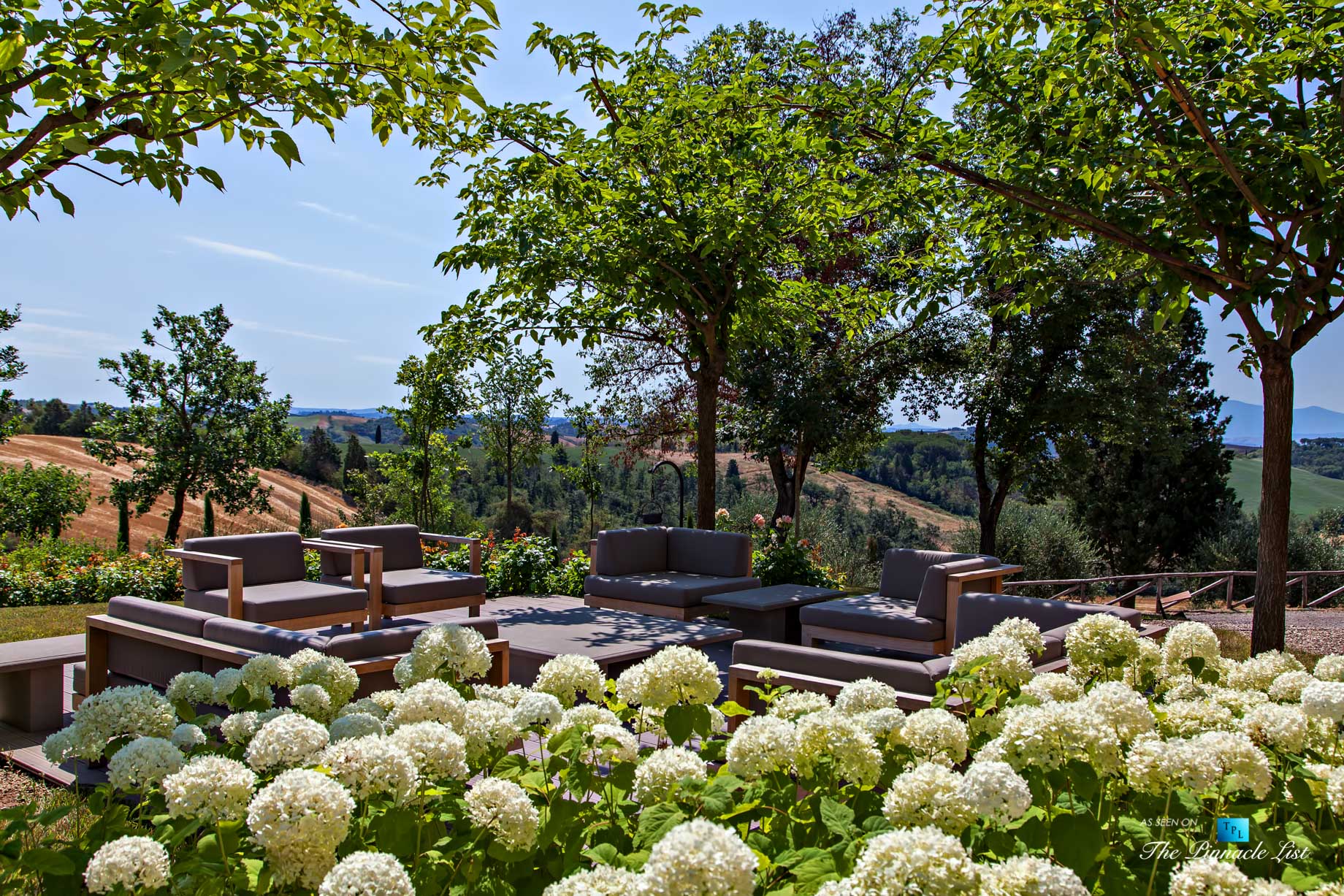 Podere Paníco Estate – Monteroni d’Arbia, Tuscany, Italy – Property Deck with Lounge Chairs – Luxury Real Estate – Tuscan Villa – The Pinnacle List