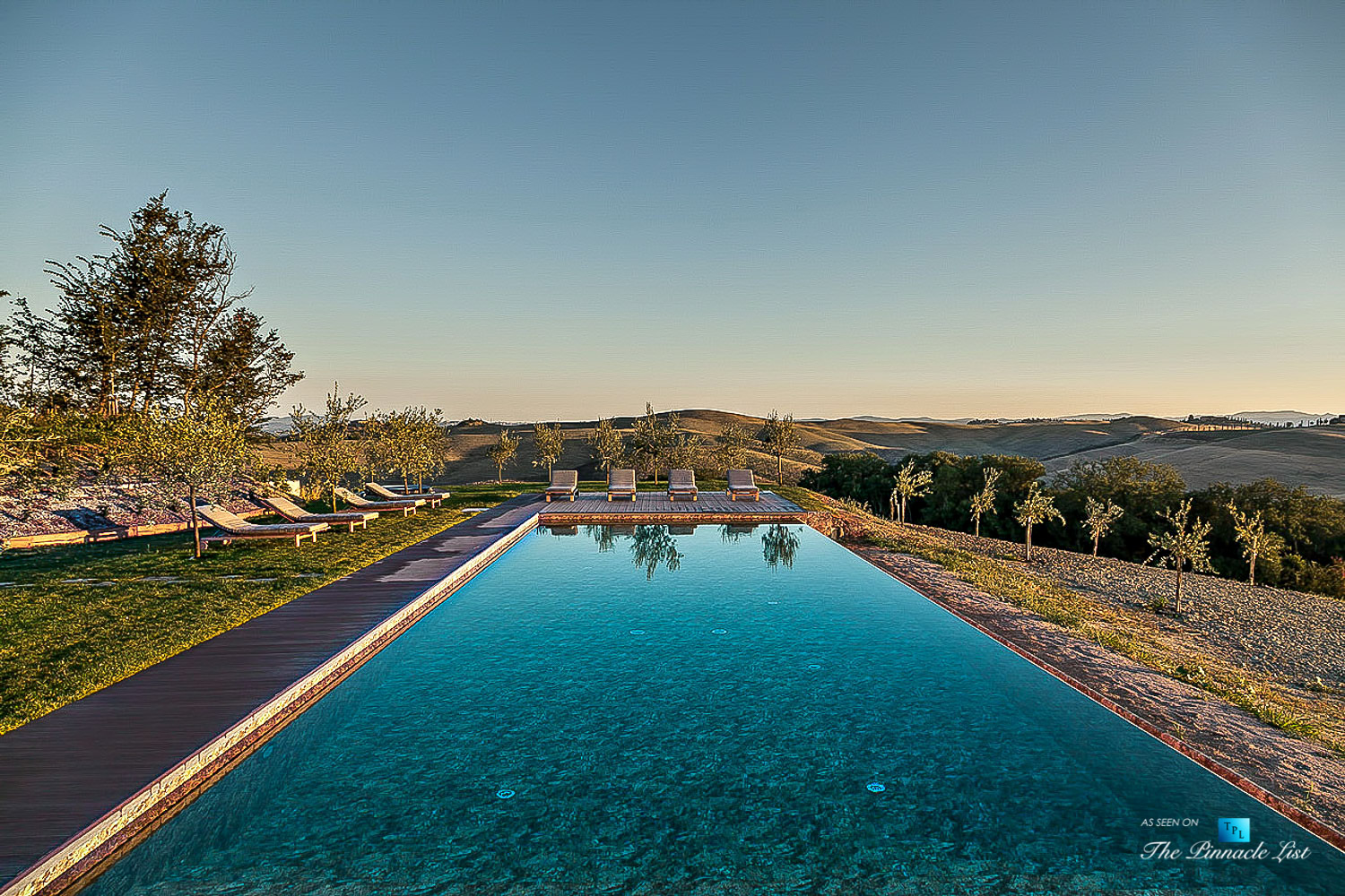 Podere Paníco Estate – Monteroni d’Arbia, Tuscany, Italy – Property Outdoor Pool and Deck View – Luxury Real Estate – Tuscan Villa – The Pinnacle List