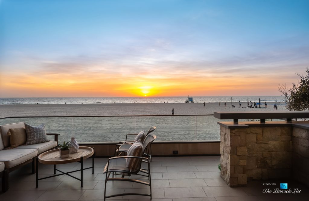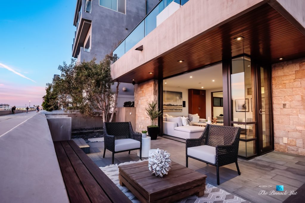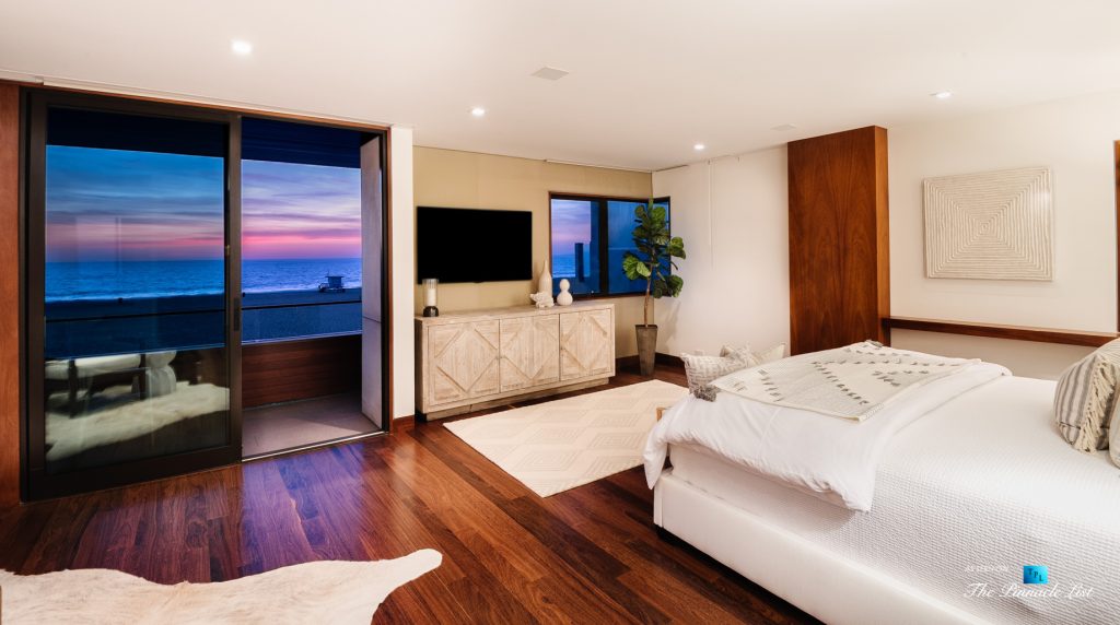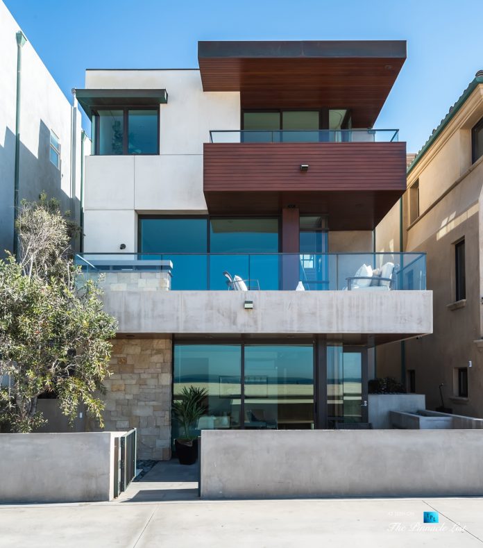 Welcome to the best of oceanfront living in this modern coastal estate just south of the iconic Hermosa Beach Pier, offering three bedrooms and three-and-a-half baths in 3400+ square feet. With three stories of consummate luxury designed by Michael Lee and built by Dave Baldwin, this home leaves nothing to be desired in one of the most beautiful locations on the sand. The grand pivoting teak door ushers you into a contemporary oasis of warm woods, stone, glass and structured concrete, with ocean breezes beckoning from the moment you step inside. Radiant floors, custom built-ins and ambient lighting envelop you in comfort and elegance while walls of glass provide the perfect backdrop for taking in the sweeping ocean views. The ground floor includes an impressive media room that opens onto the oceanfront patio as well as a handsome guest suite. The second floor includes a striking Chefโs kitchen, dining area, living room with fireplace and private balcony with dazzling ocean views. Two rooms serving as an office and den/library as well as a well-appointed powder room complete the second level. Private living quarters on the picturesque top level include the extravagant Master Suite with fireplace, built-ins, ocean view deck and elegant Master bath. A third bedroom and full bath round out the amenities on the secluded top floor. This spectacular home on the Strand provides an unparalleled opportunity to live on the sand in true elegance in magical Hermosa Beach.